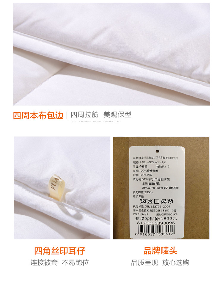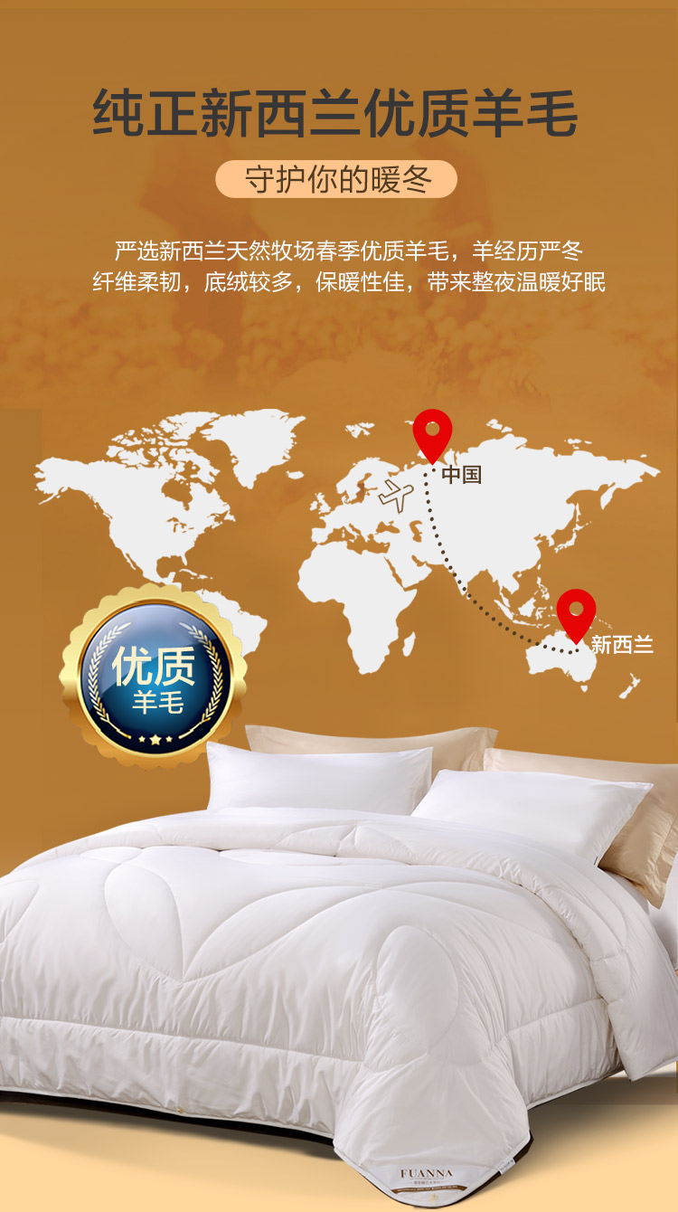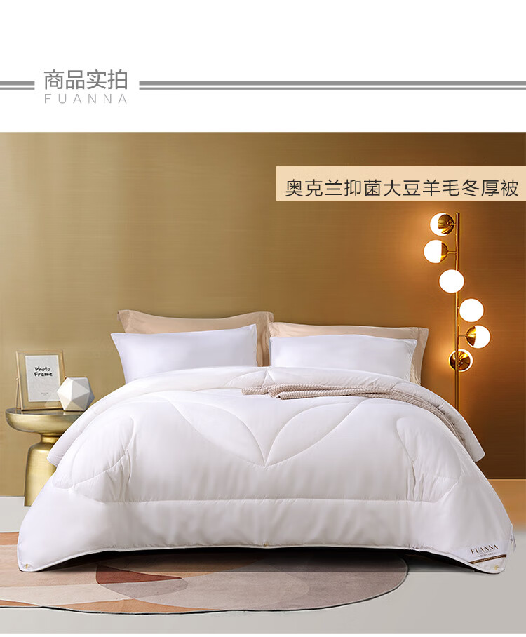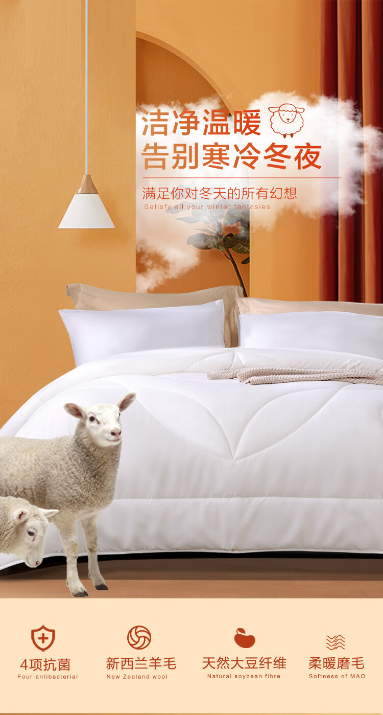 富安娜家纺大豆抗菌被子羊毛被进口冬被芯加厚被小户型床适用单双人被1.5米床(203*229cm)