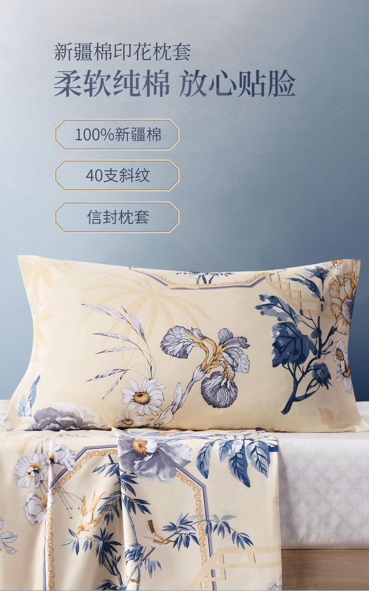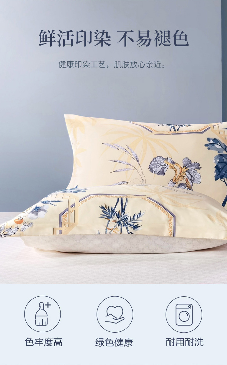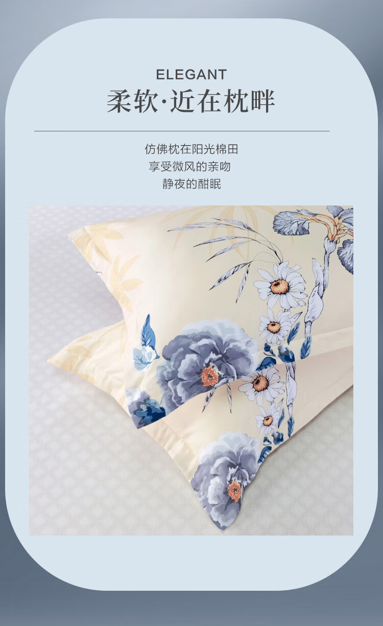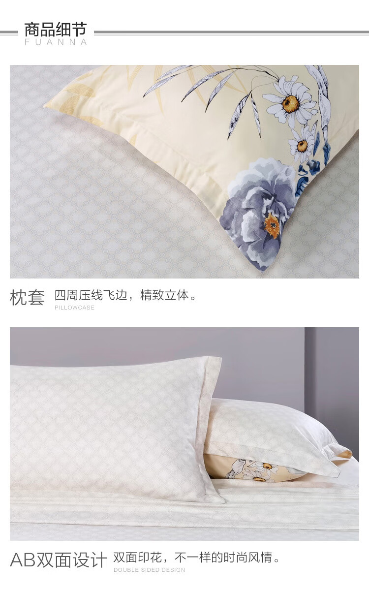 富安娜家纺 枕套纯棉升级抗菌枕头套 全棉枕巾一对装 醉玲珑74*48cm