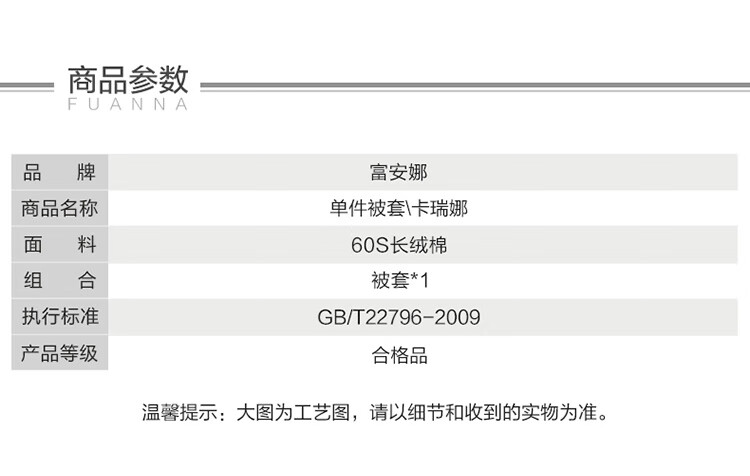 富安娜家纺 纯棉全棉被套单件 60支长绒棉被罩床品 学生单人宿舍卡瑞娜1.2米/1.5米床适用(152*210cm)