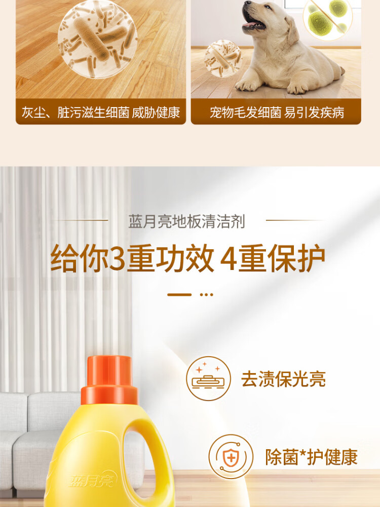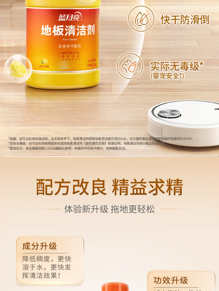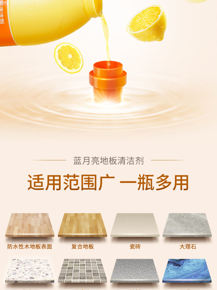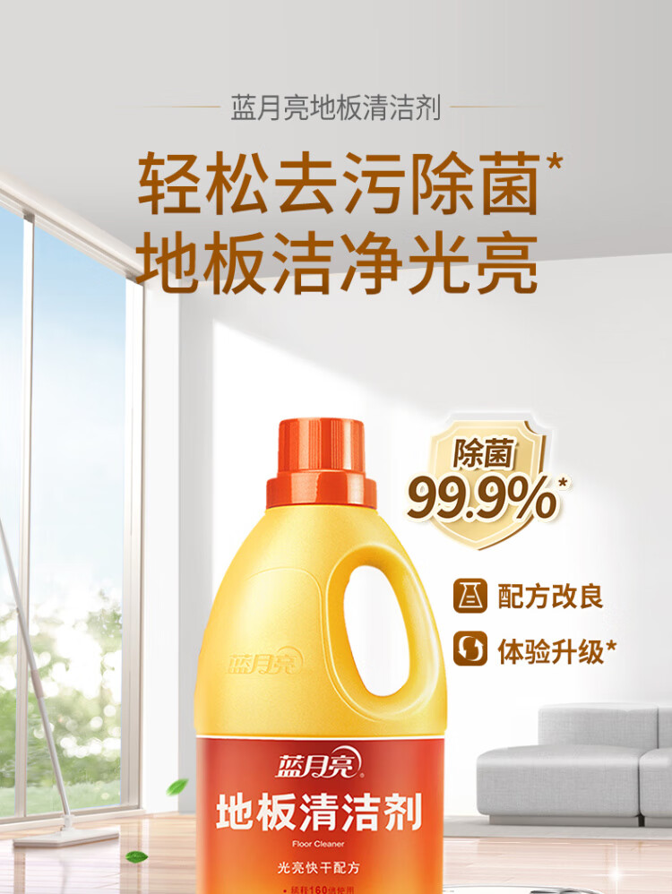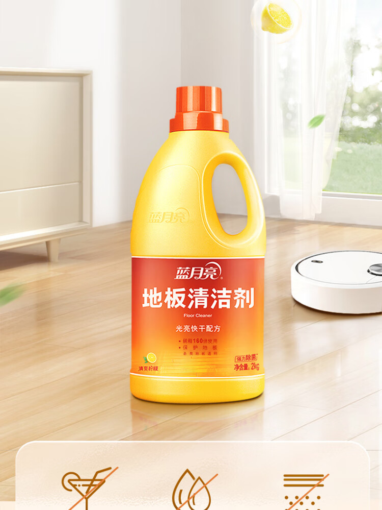 蓝月亮 地板清洁剂 2kg/瓶*2 柠檬香 去污除菌 拖地清洁剂 瓷砖清洁剂