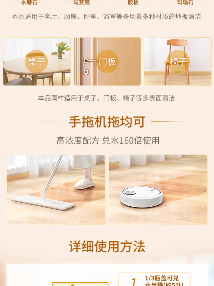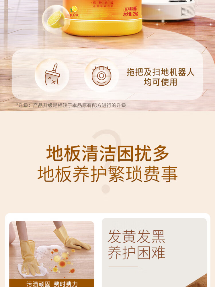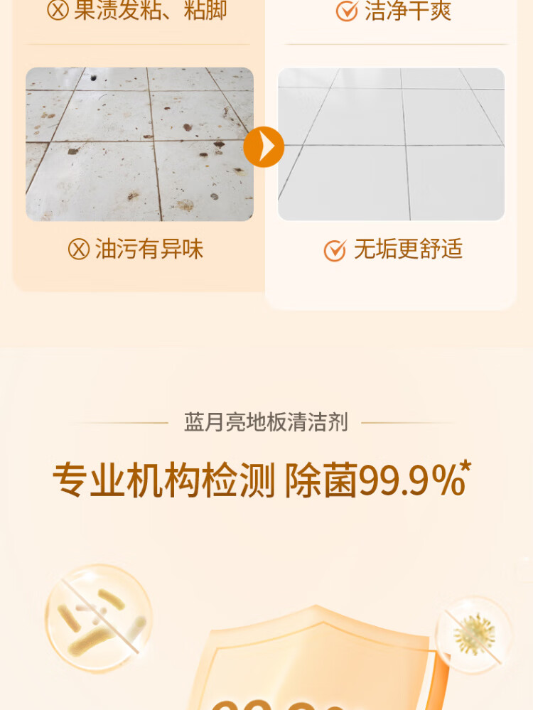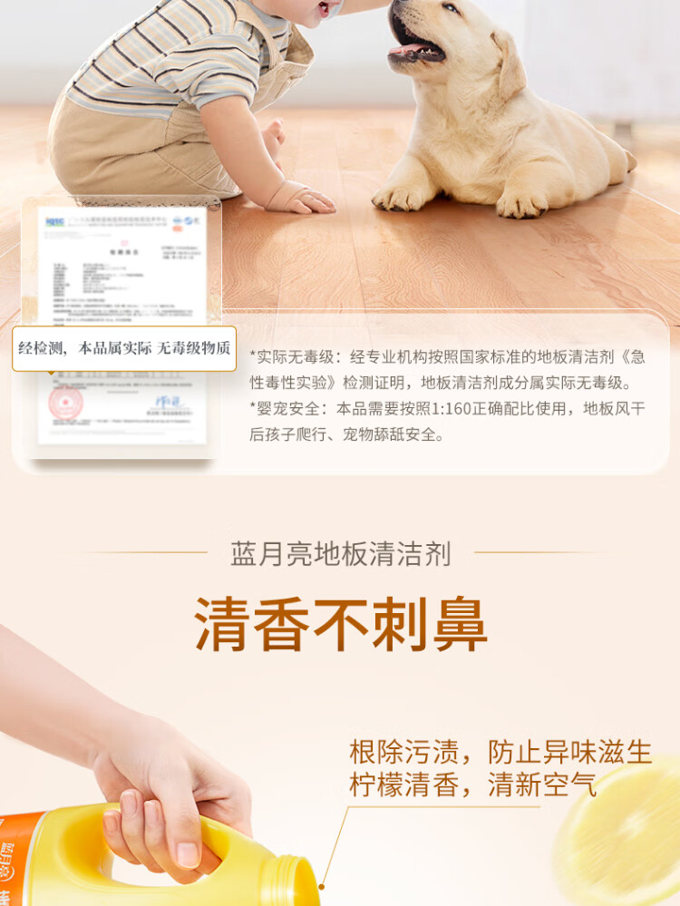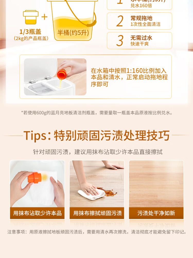蓝月亮 地板清洁剂 2kg/瓶*2 柠檬香 去污除菌 拖地清洁剂 瓷砖清洁剂