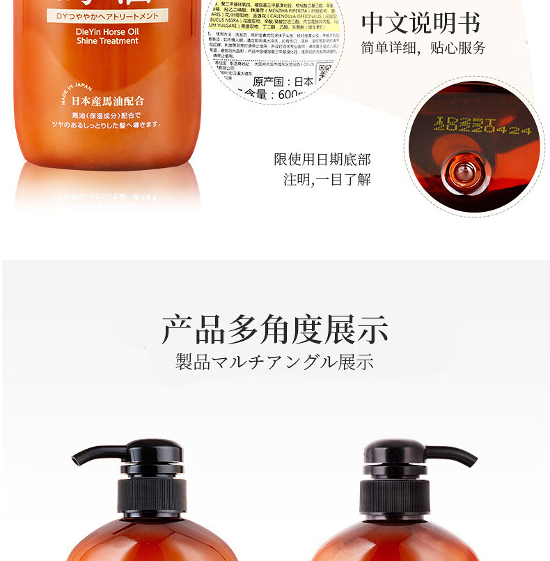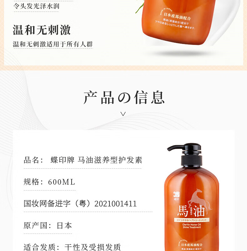 蝶印 北海道马油 滋养型护发素 600ml 改善干枯毛躁 日本原装进口