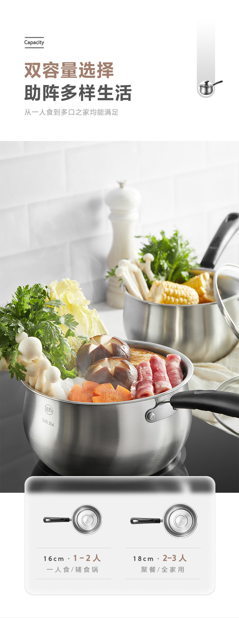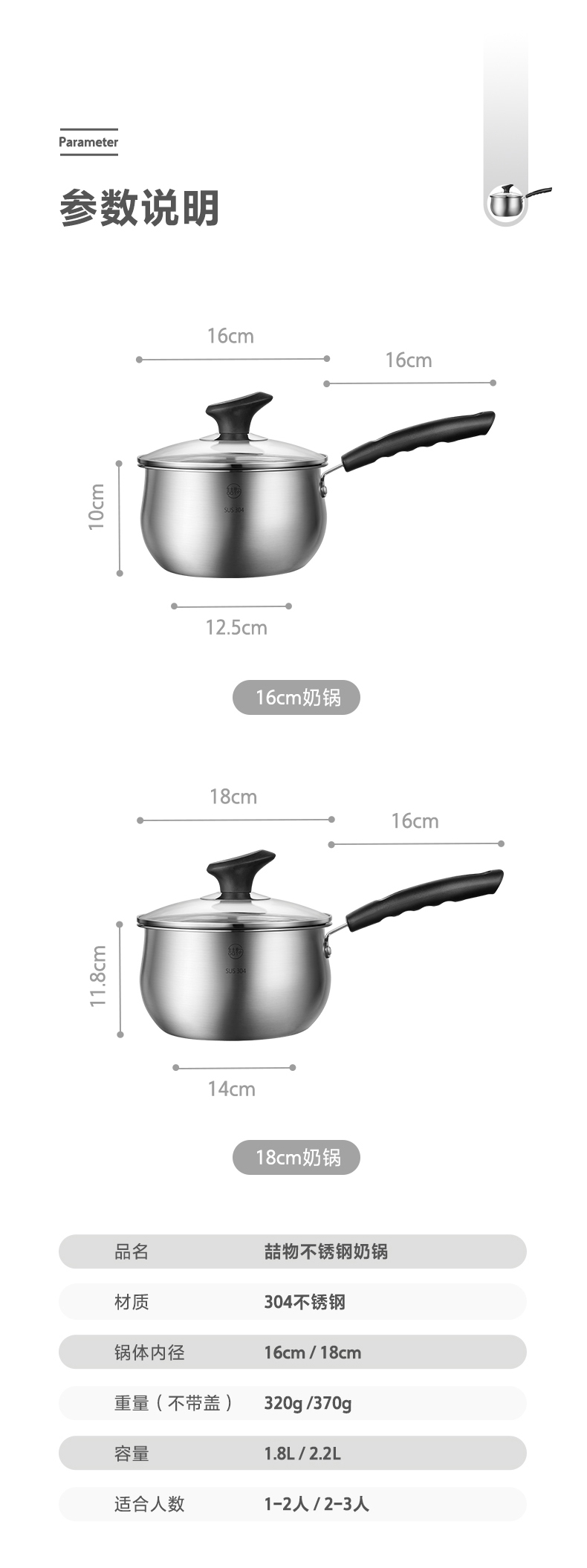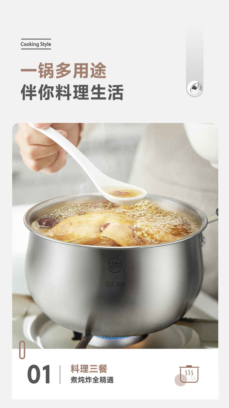 美的喆物小奶锅婴儿辅食锅不粘锅汤锅18CM口径18Z14明火专用