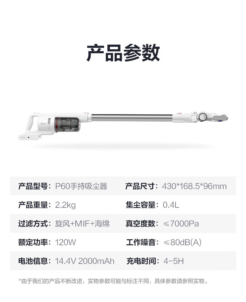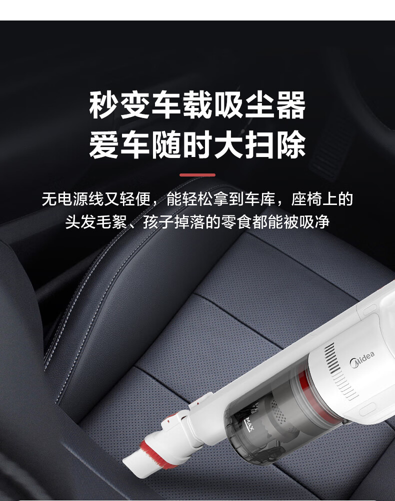 美的(Midea)P60手持大吸力双电机车载轻便家用二合一强力吸尘器 企业采购 支持一件代发