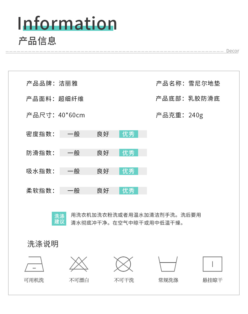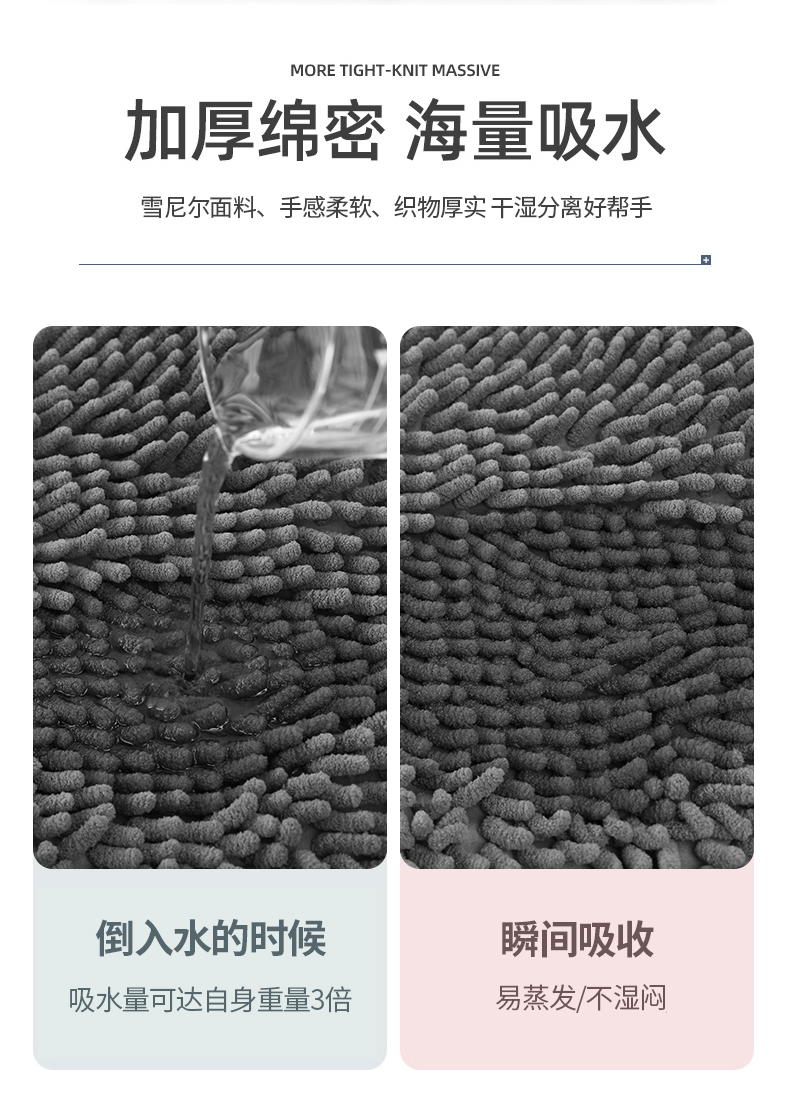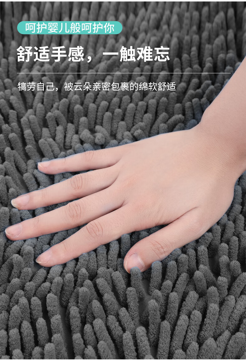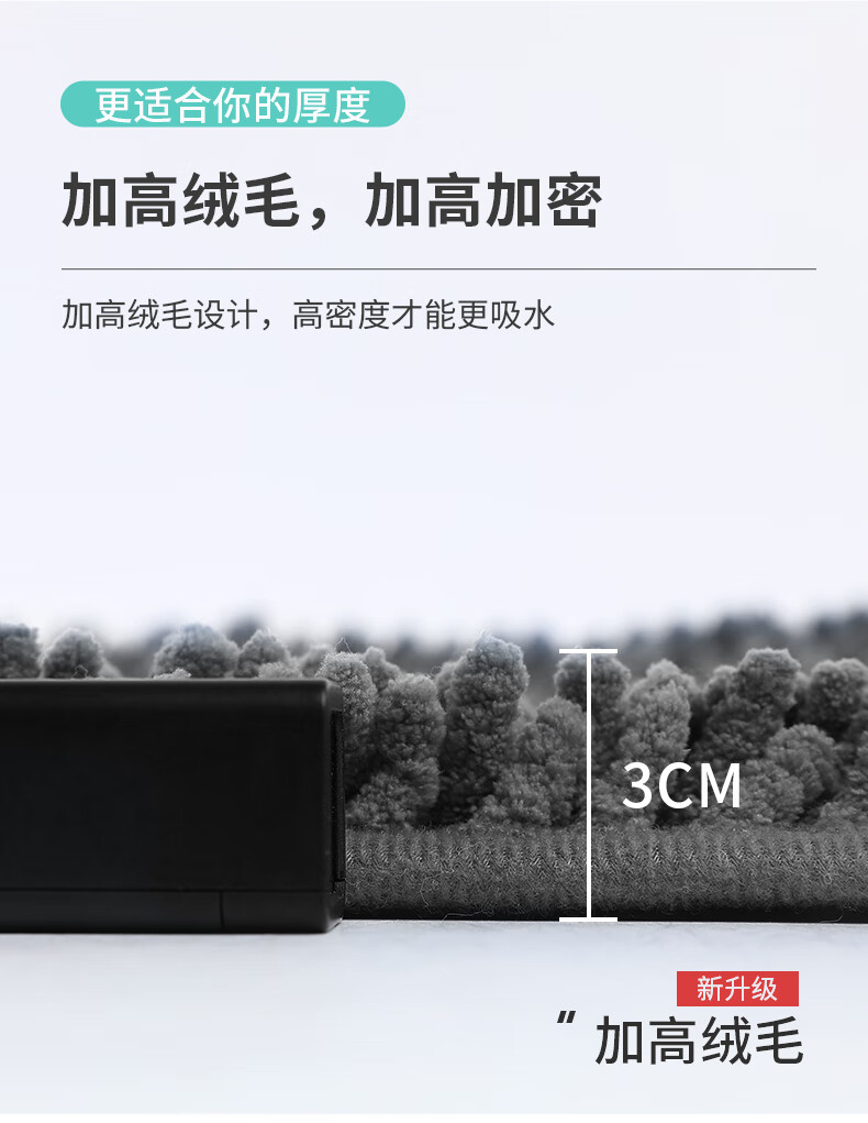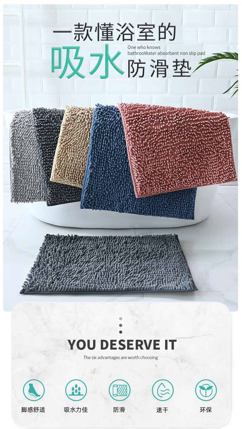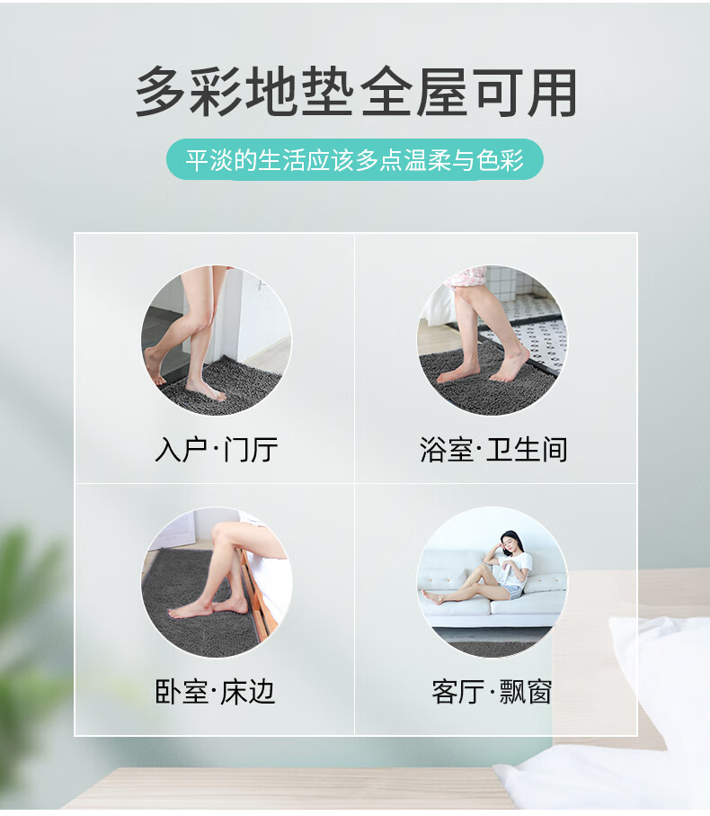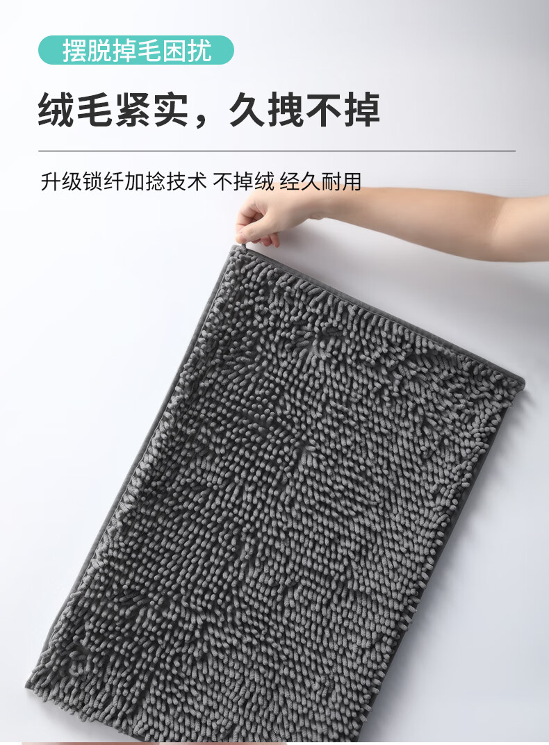 洁丽雅( Grace) 地垫卫生间吸水地垫厨房脚垫进门家用客厅卧室地毯浴室防滑垫子 深灰色 40*60cm 两片装