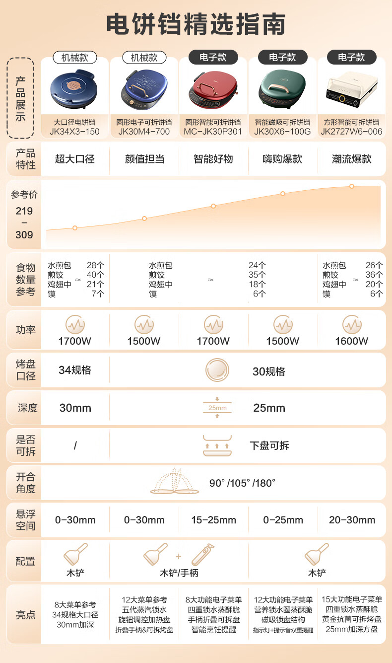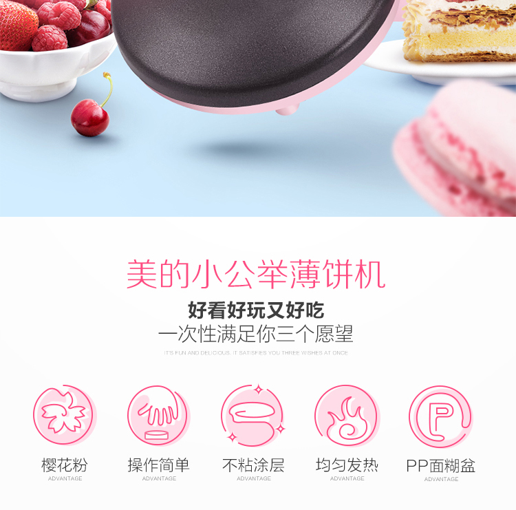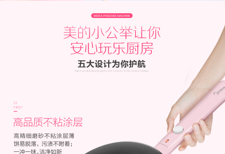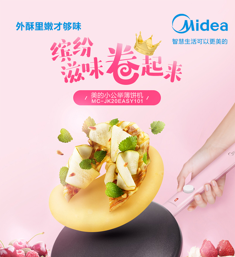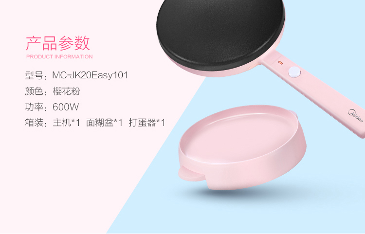 美的(Midea)电饼铛家用薄饼机迷你煎饼机煎烤春饼机煎烤机三明治早餐机博饼机电饼铛自营MC-JK20Easy101