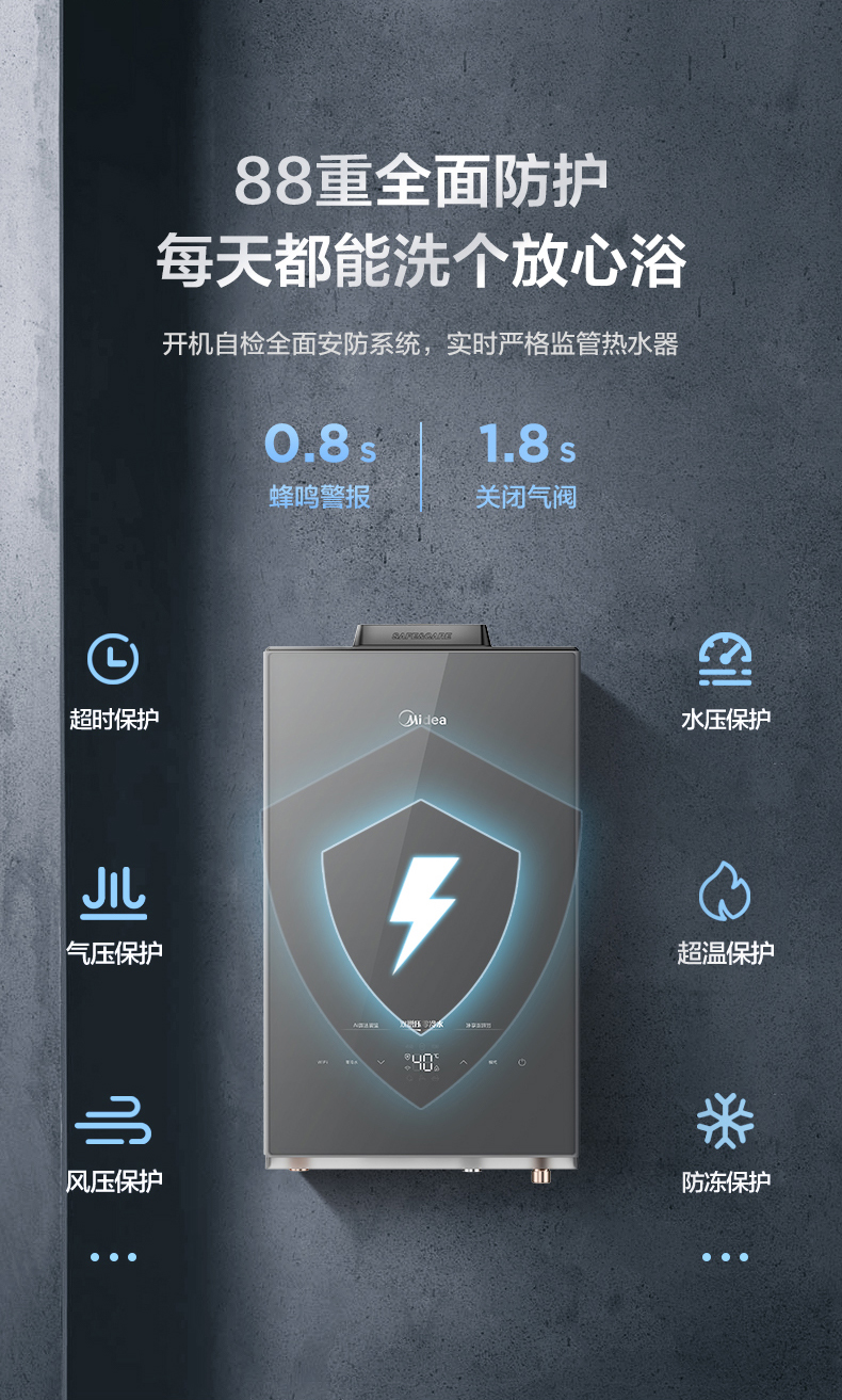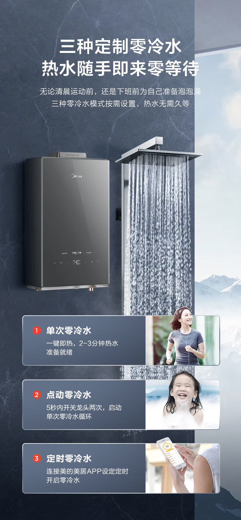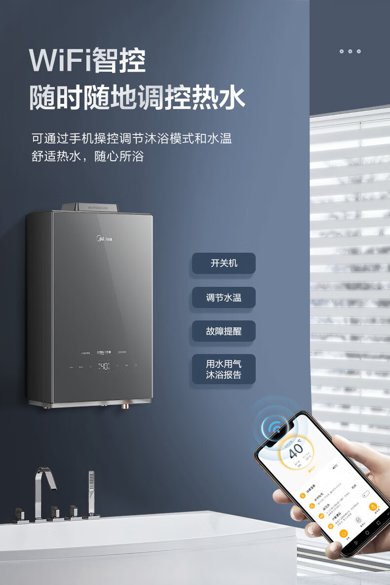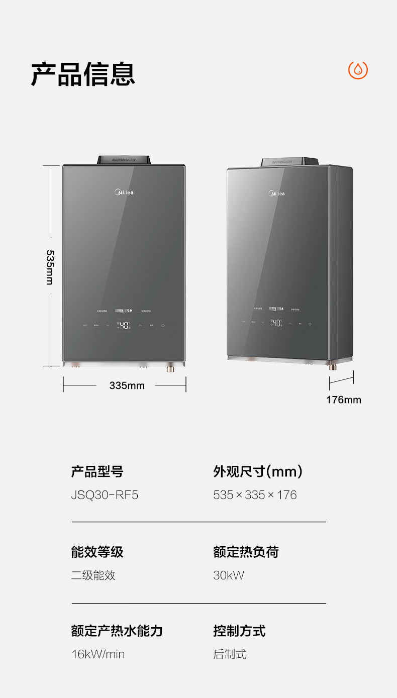 美的(Midea)16升水气双调智能家电恒温式燃气热水器 恒温式燃气热水器 玄武灰电辅加机械防冻JSQ30-RF5*