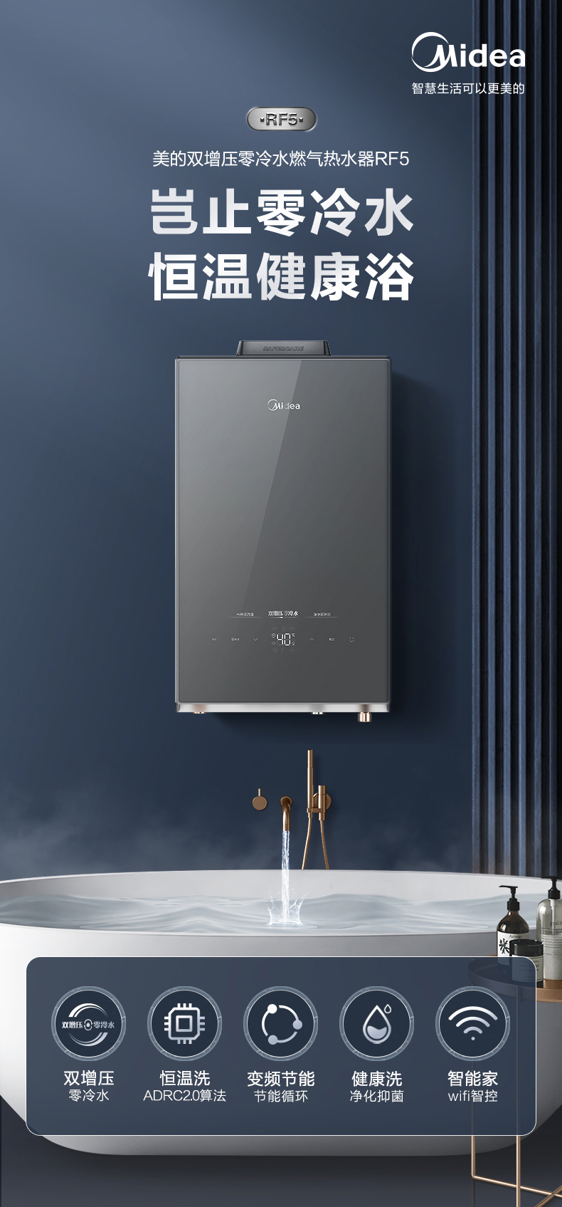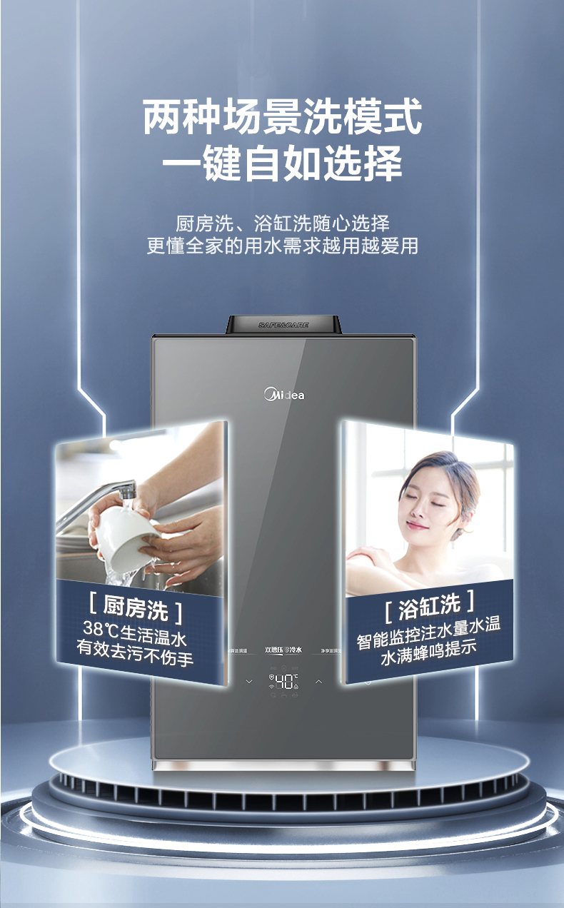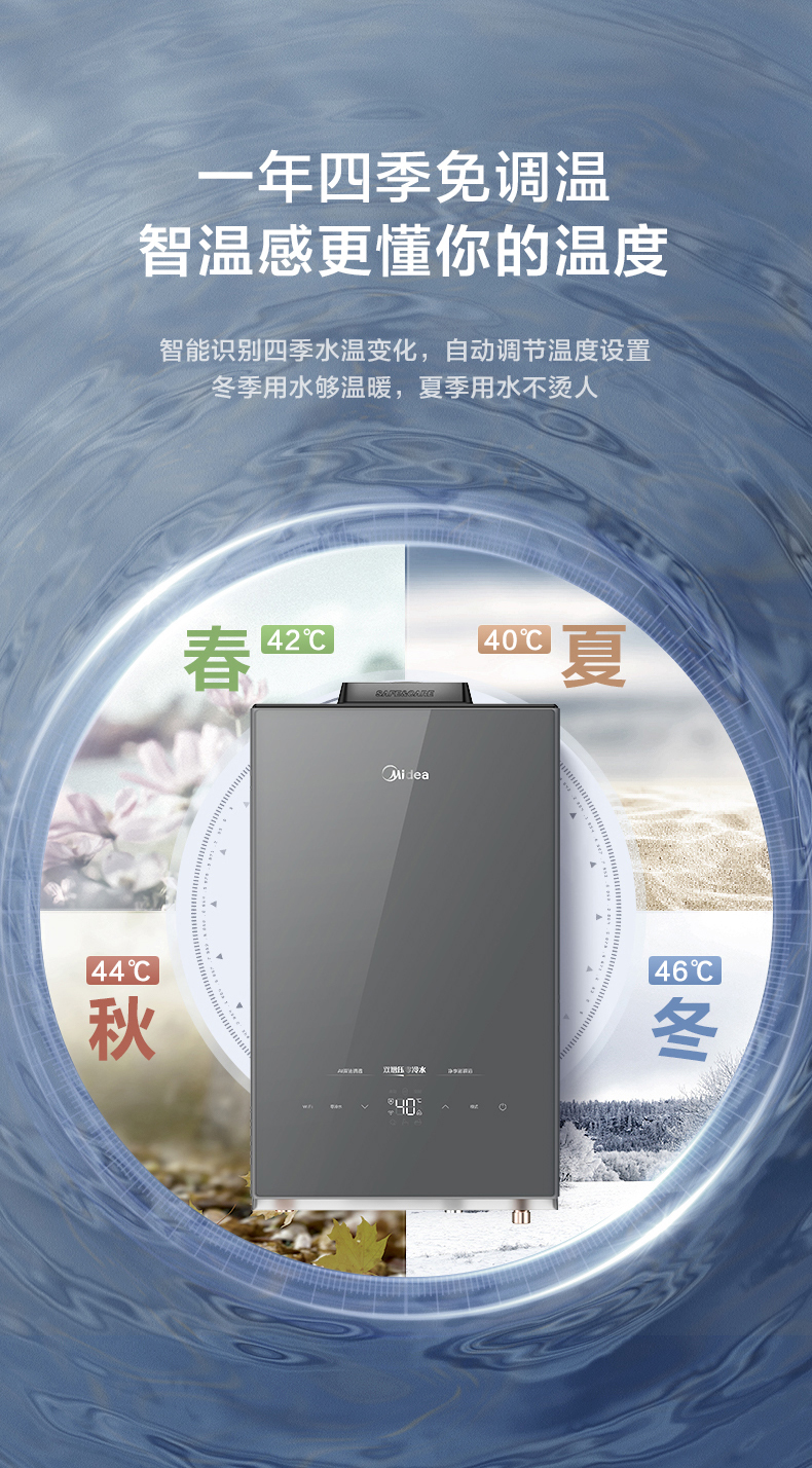美的(Midea)16升水气双调智能家电恒温式燃气热水器 恒温式燃气热水器 玄武灰电辅加机械防冻JSQ30-RF5*
