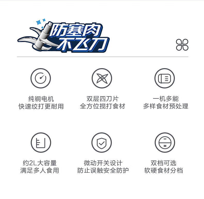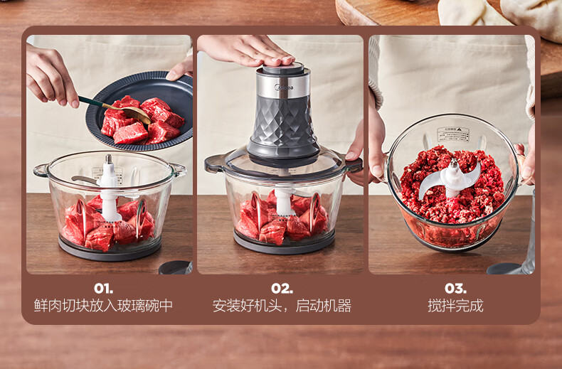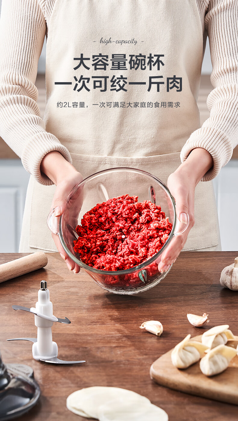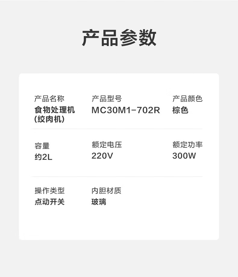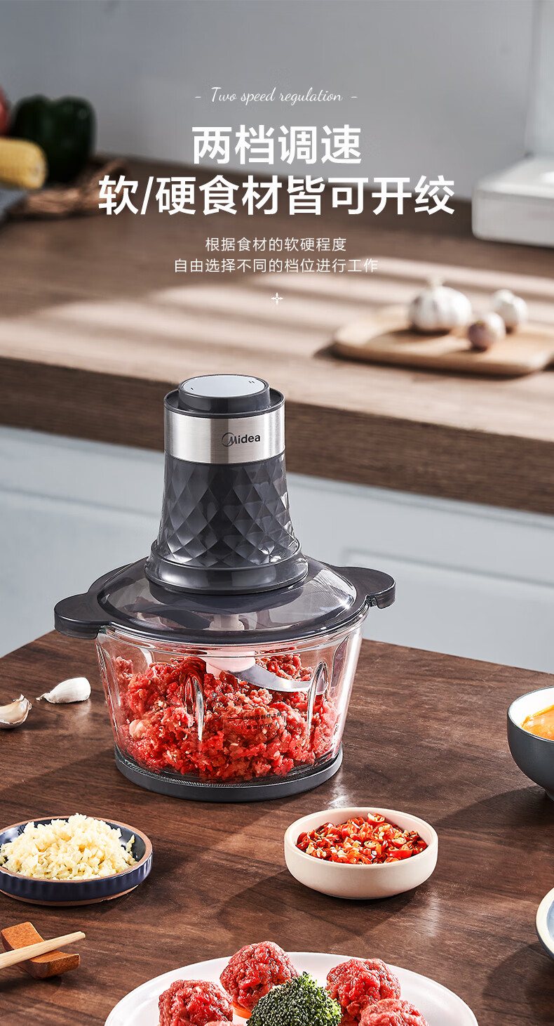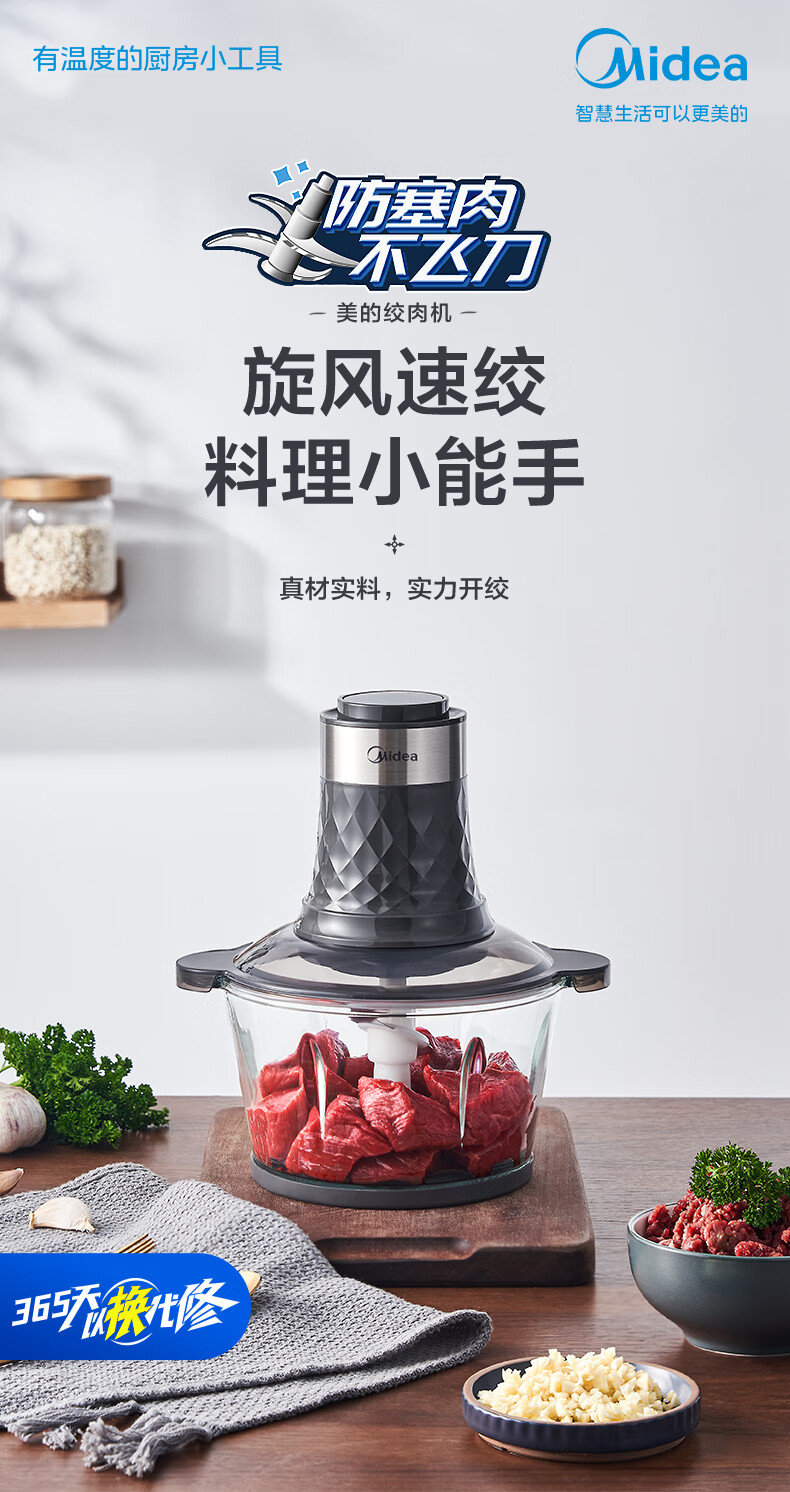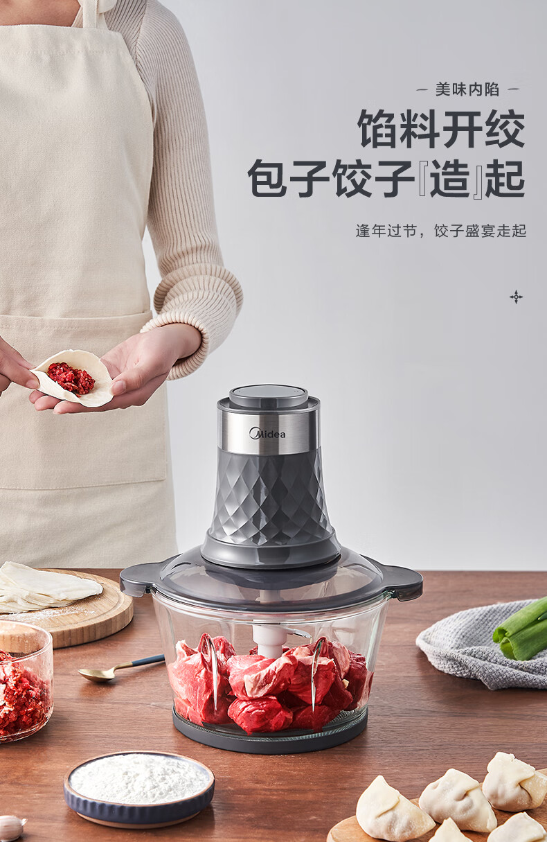 美的(Midea)家用电动多功能料理机绞肉馅机智能断电打肉机搅拌辅食机宝宝婴儿辅食机打肉机MJ-MC30M1-702R1