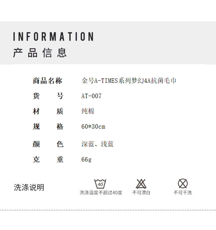 金号A-TIMES系列梦幻4A毛巾 单条毛巾袋装AT-007
