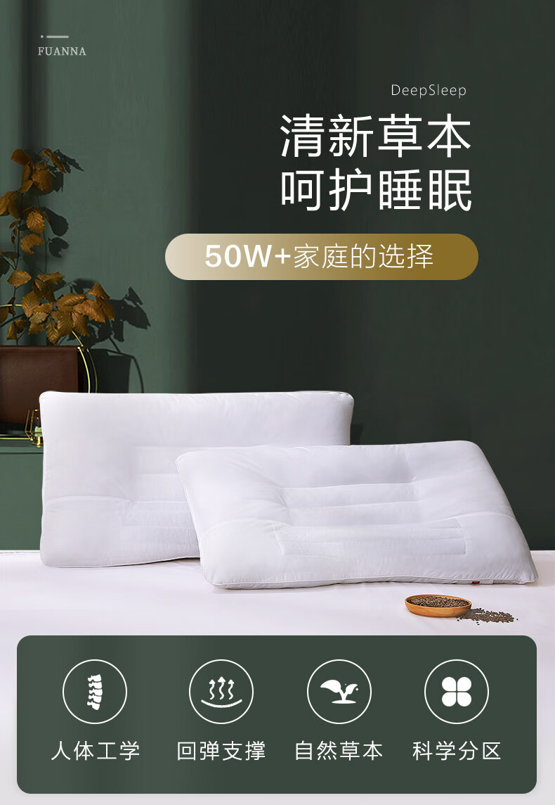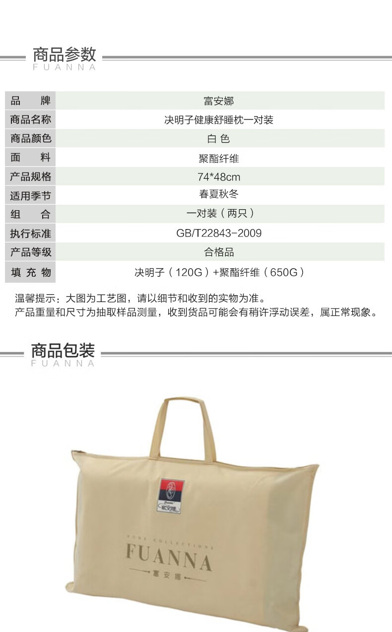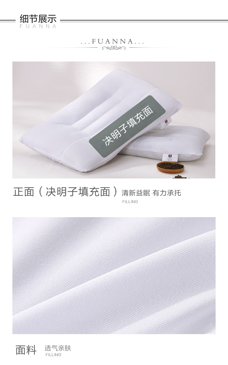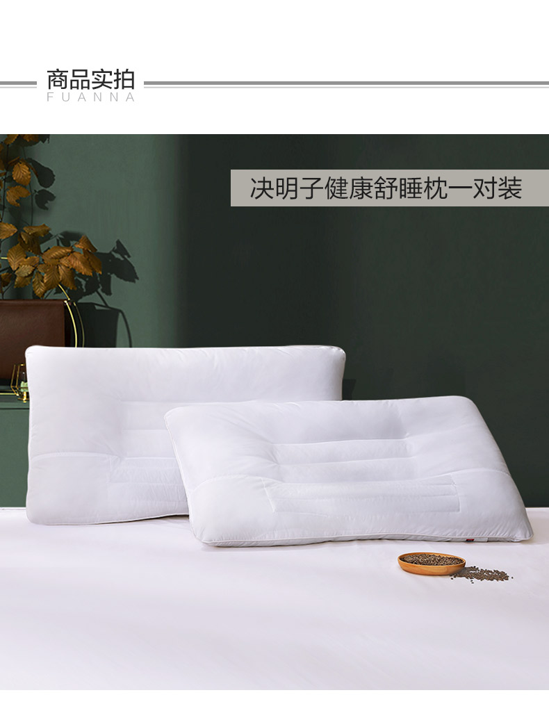 富安娜家纺 枕头芯颈椎枕决明子草本枕芯 单人成人枕头套装 决明子健康舒睡枕芯一对装 74*48cm 白色