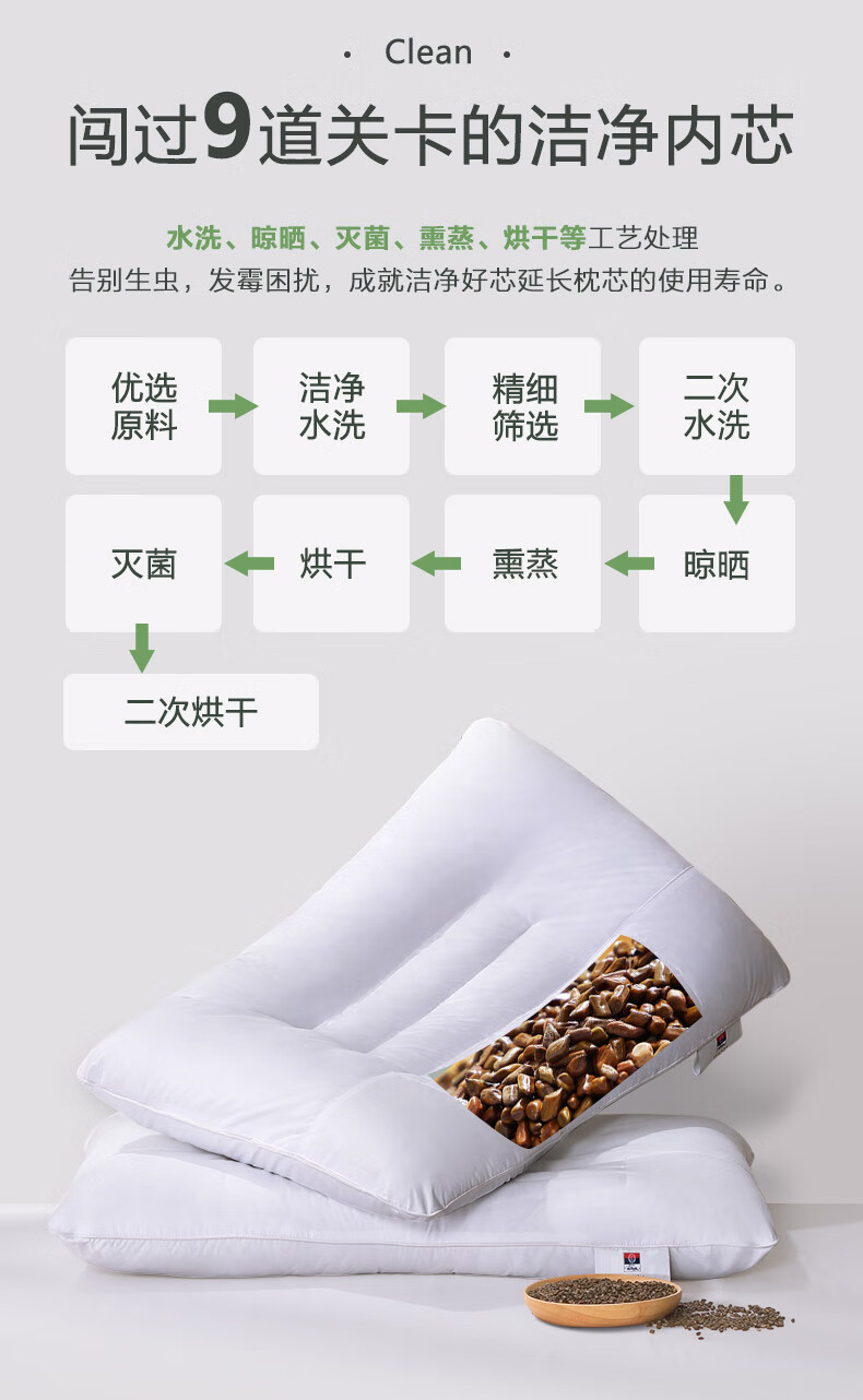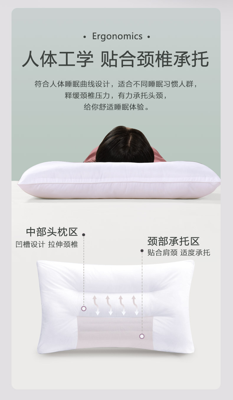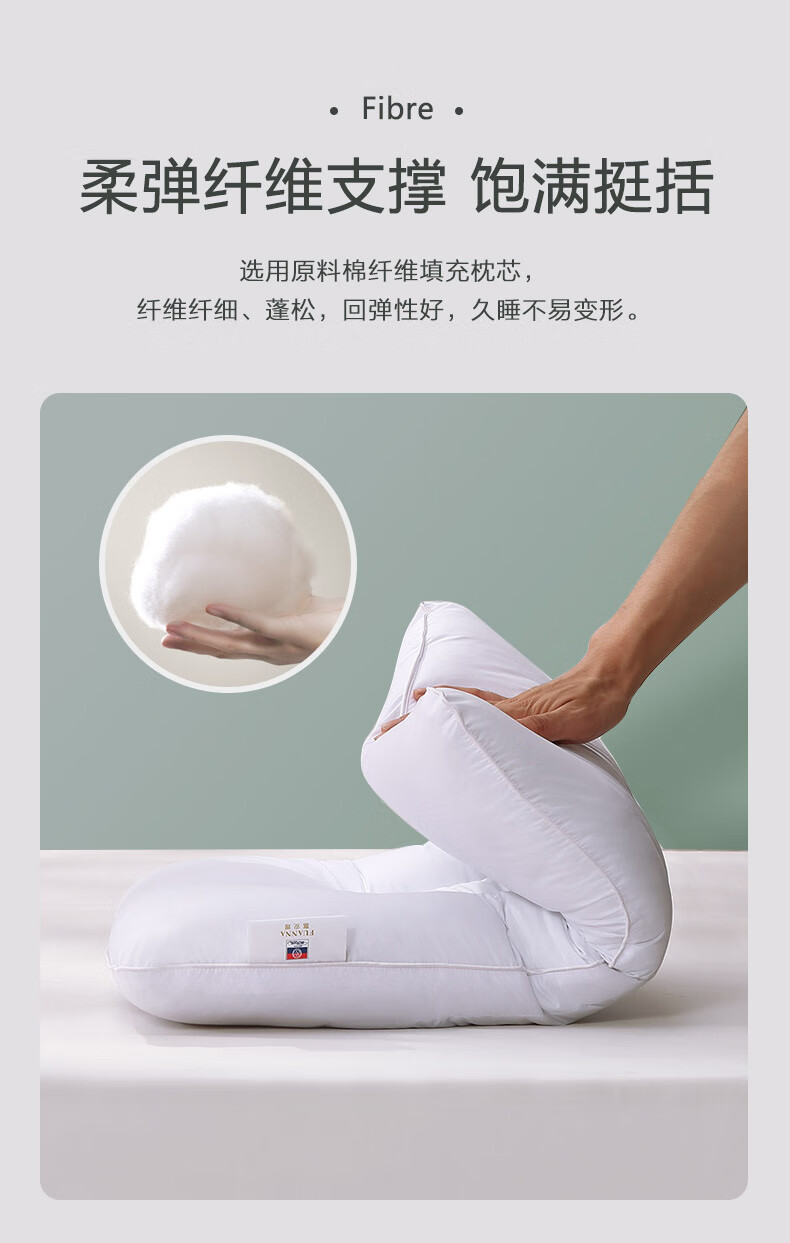 富安娜家纺 枕头芯颈椎枕决明子草本枕芯 单人成人枕头套装 决明子健康舒睡枕芯一对装 74*48cm 白色