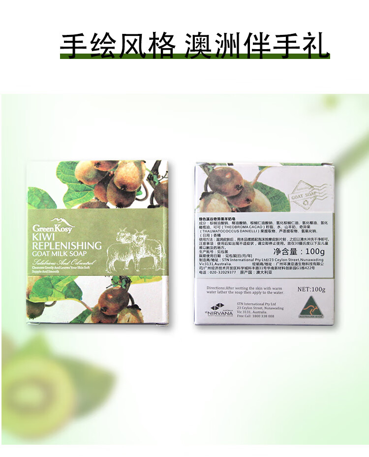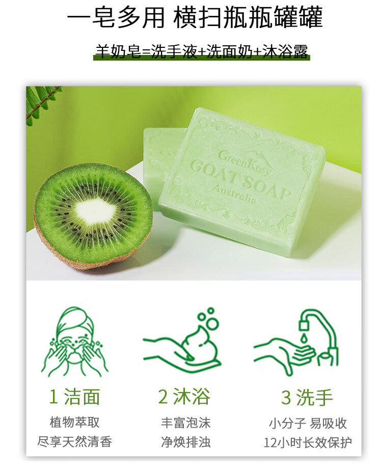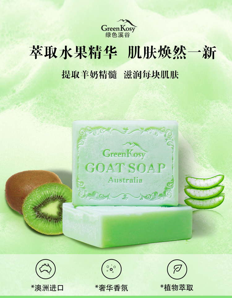 绿色溪谷香皂洗脸洗澡肥皂澳洲进口精油皂奇异果清香羊奶皂100g温和滋润
