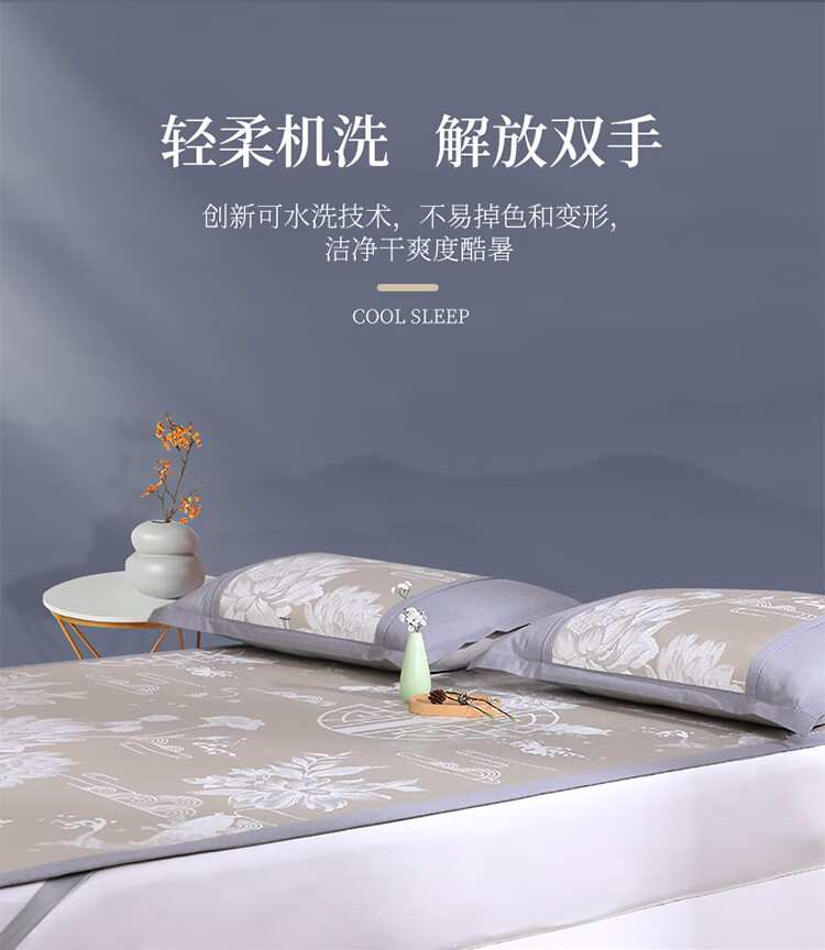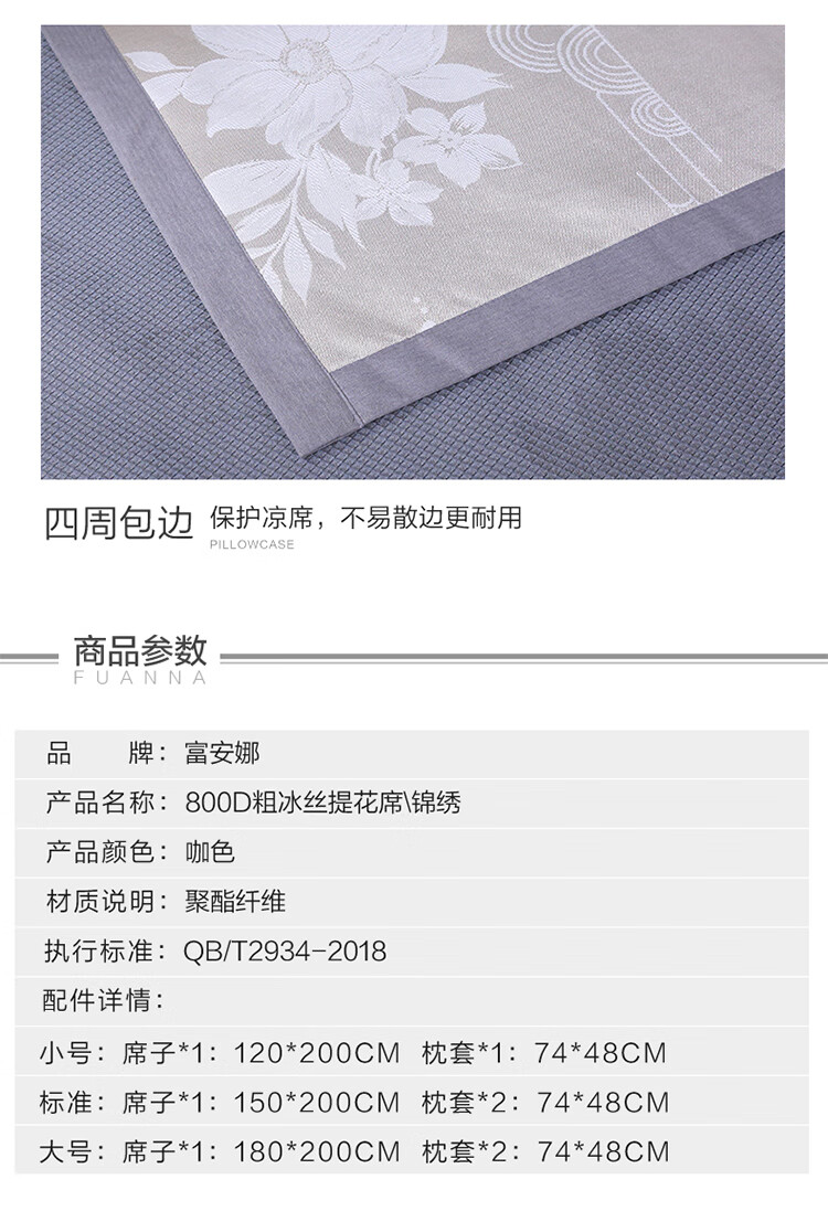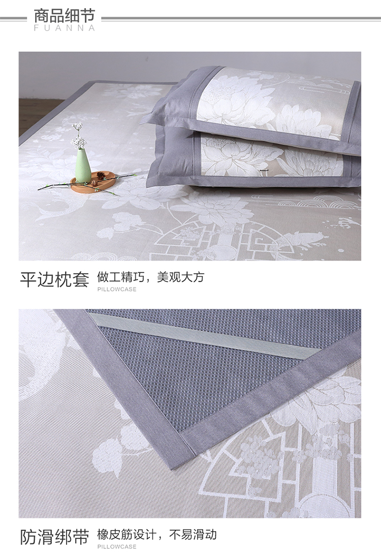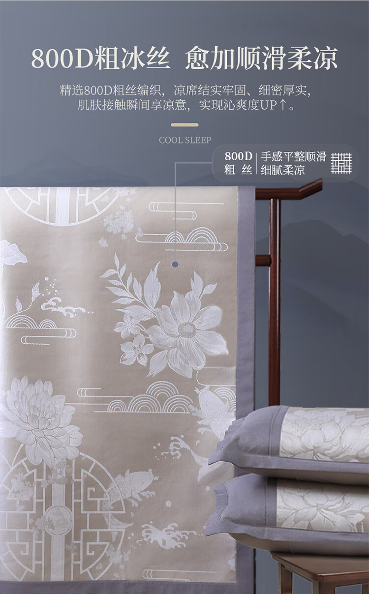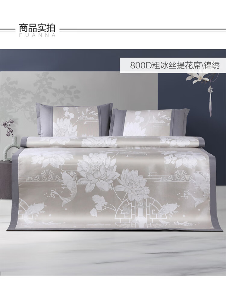 富安娜家纺凉席粗丝加厚凉席夏季空调席可水洗提花冰丝席三件套 1.5米床