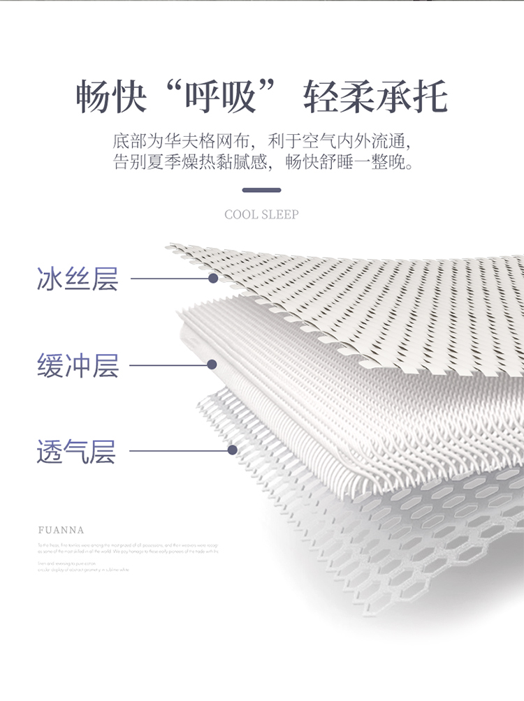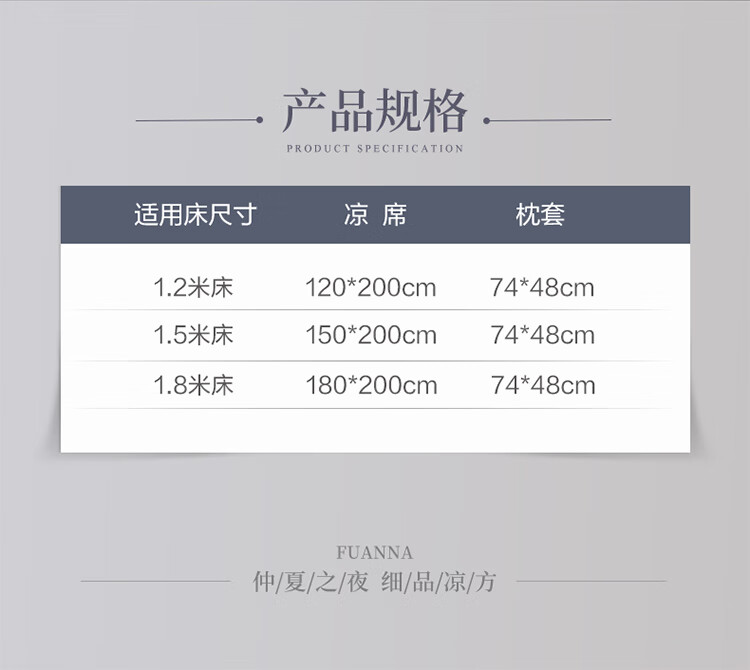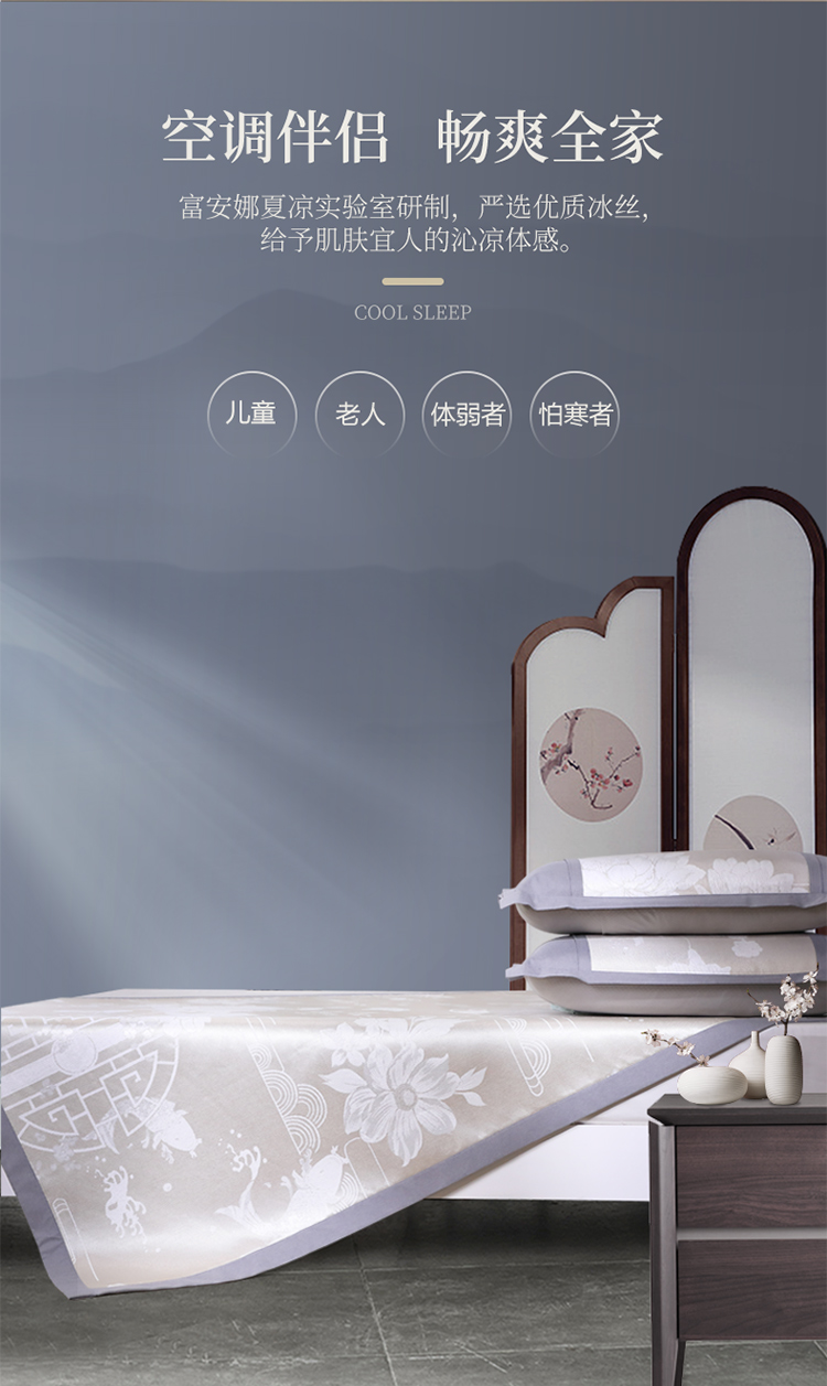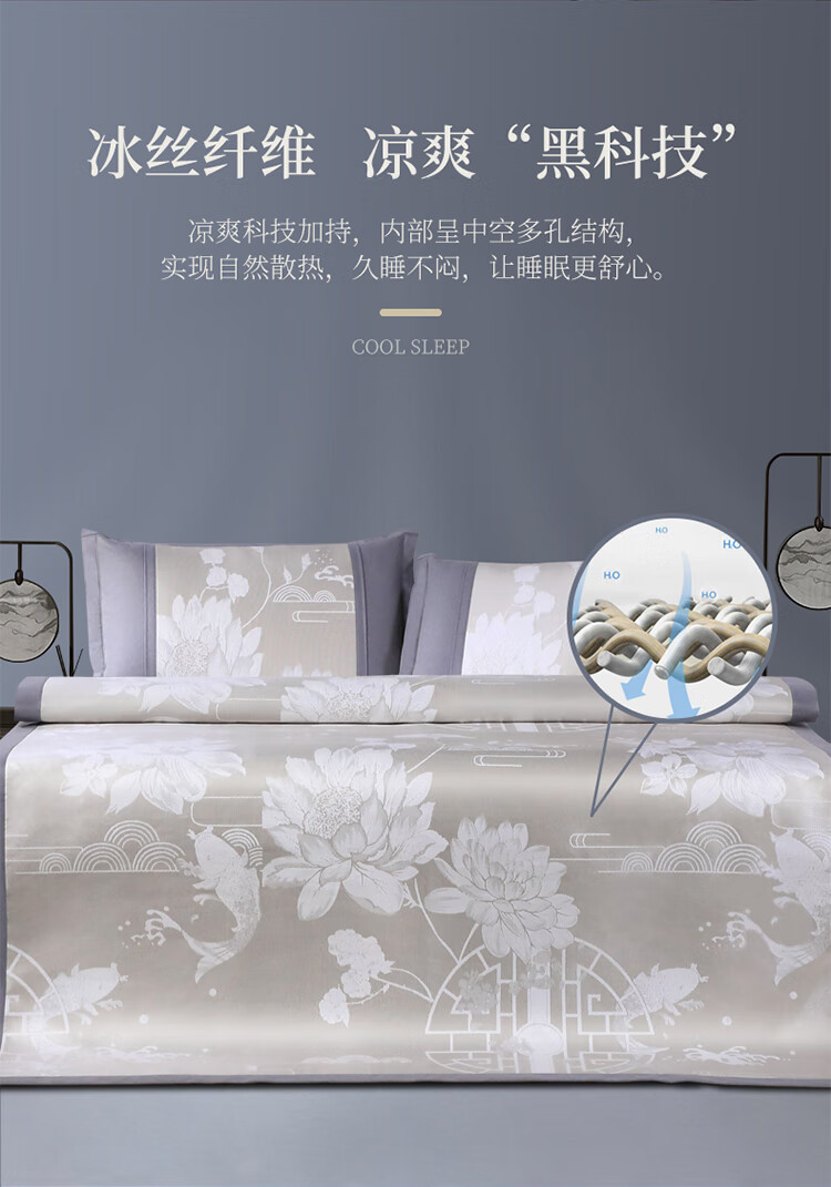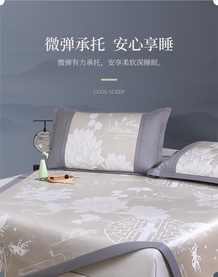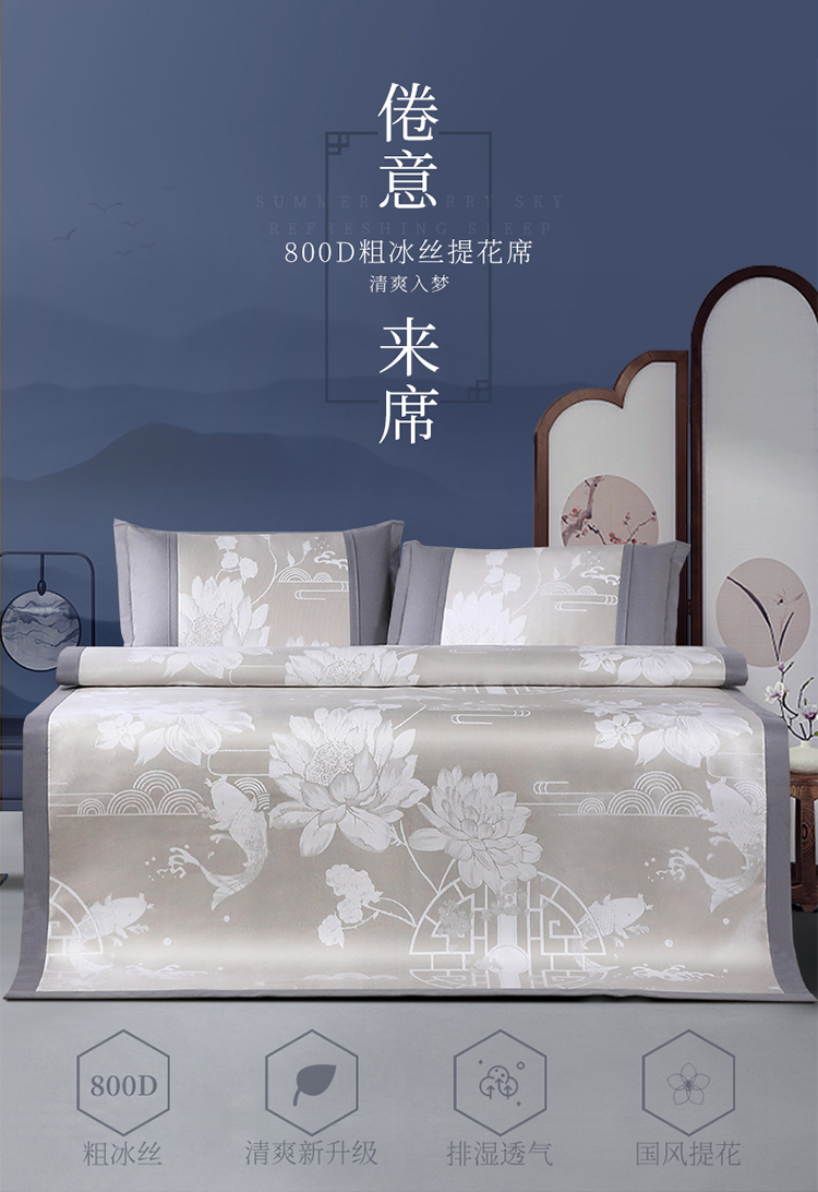 富安娜家纺凉席粗丝加厚凉席夏季空调席可水洗提花冰丝席三件套 1.5米床