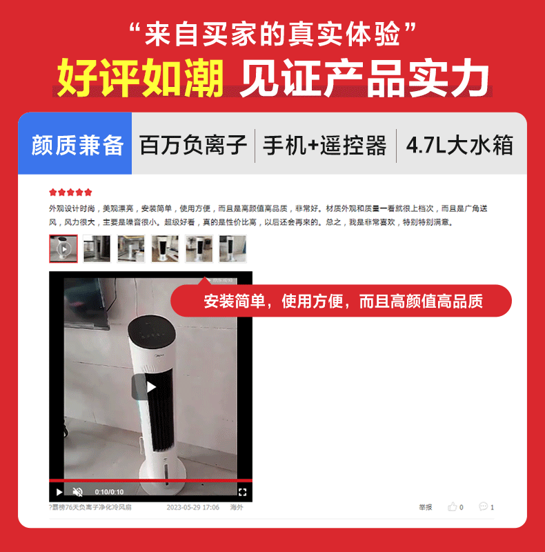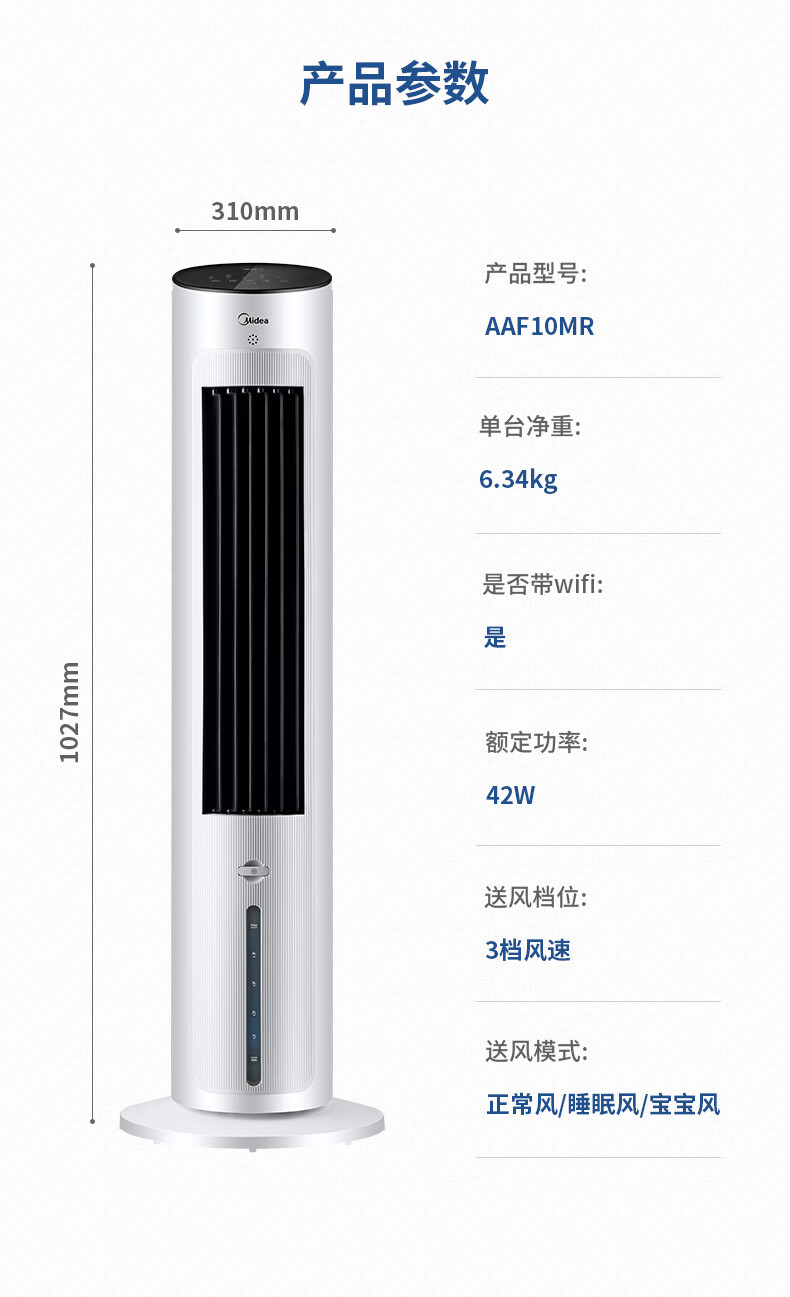 美的(Midea)【强劲制冷】APP操控家用冷风扇负离子净化加湿落地空调扇冷风机水冷无叶塔扇制冷小空调AAF10MR