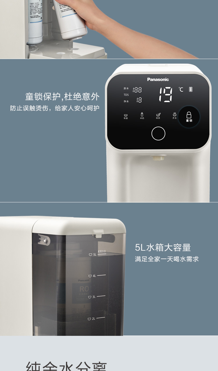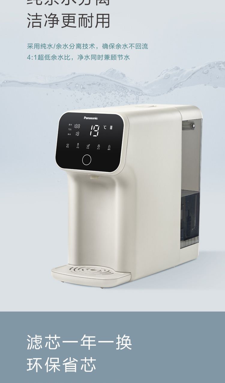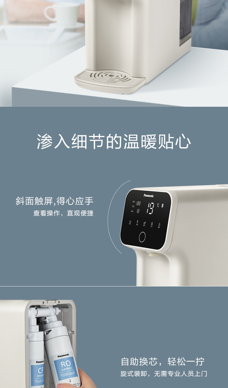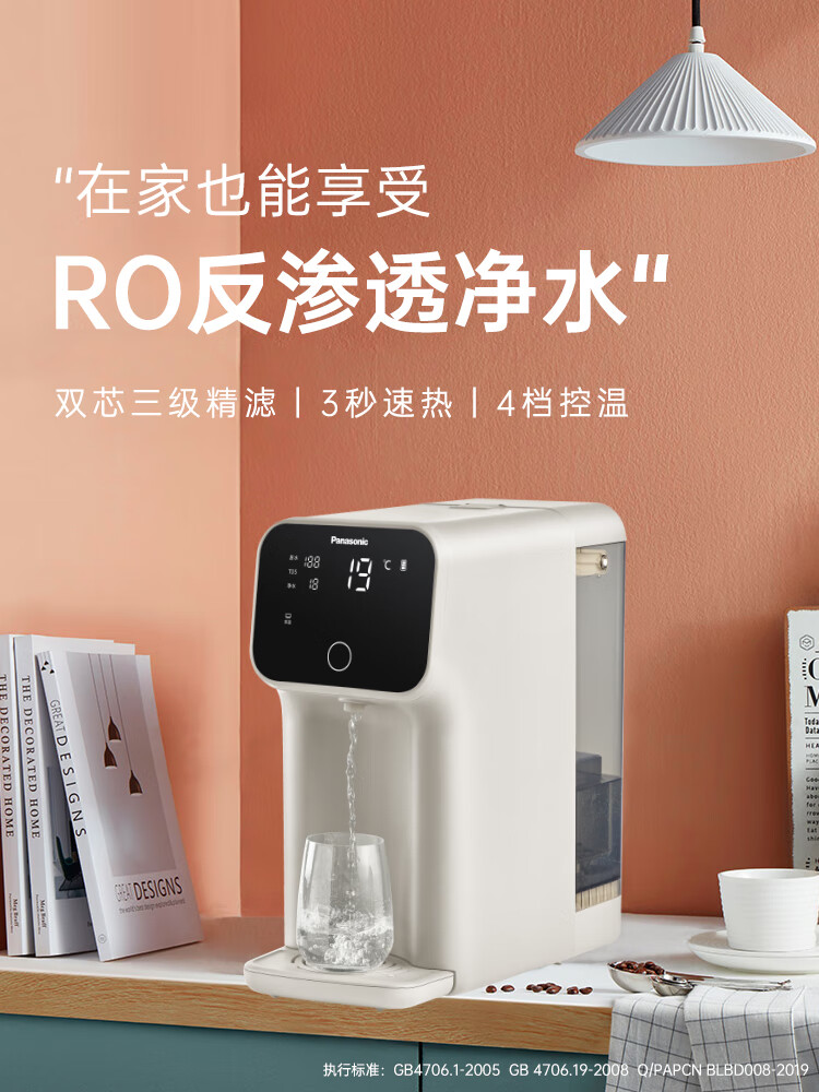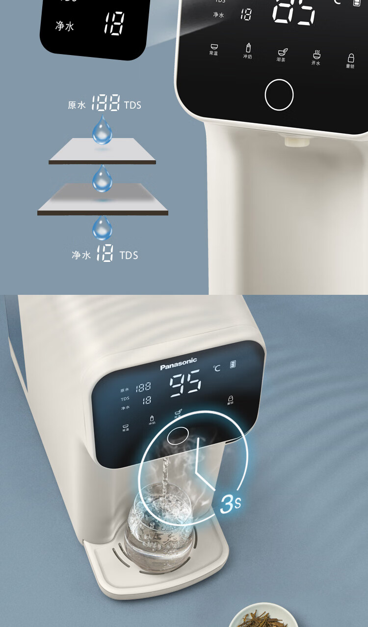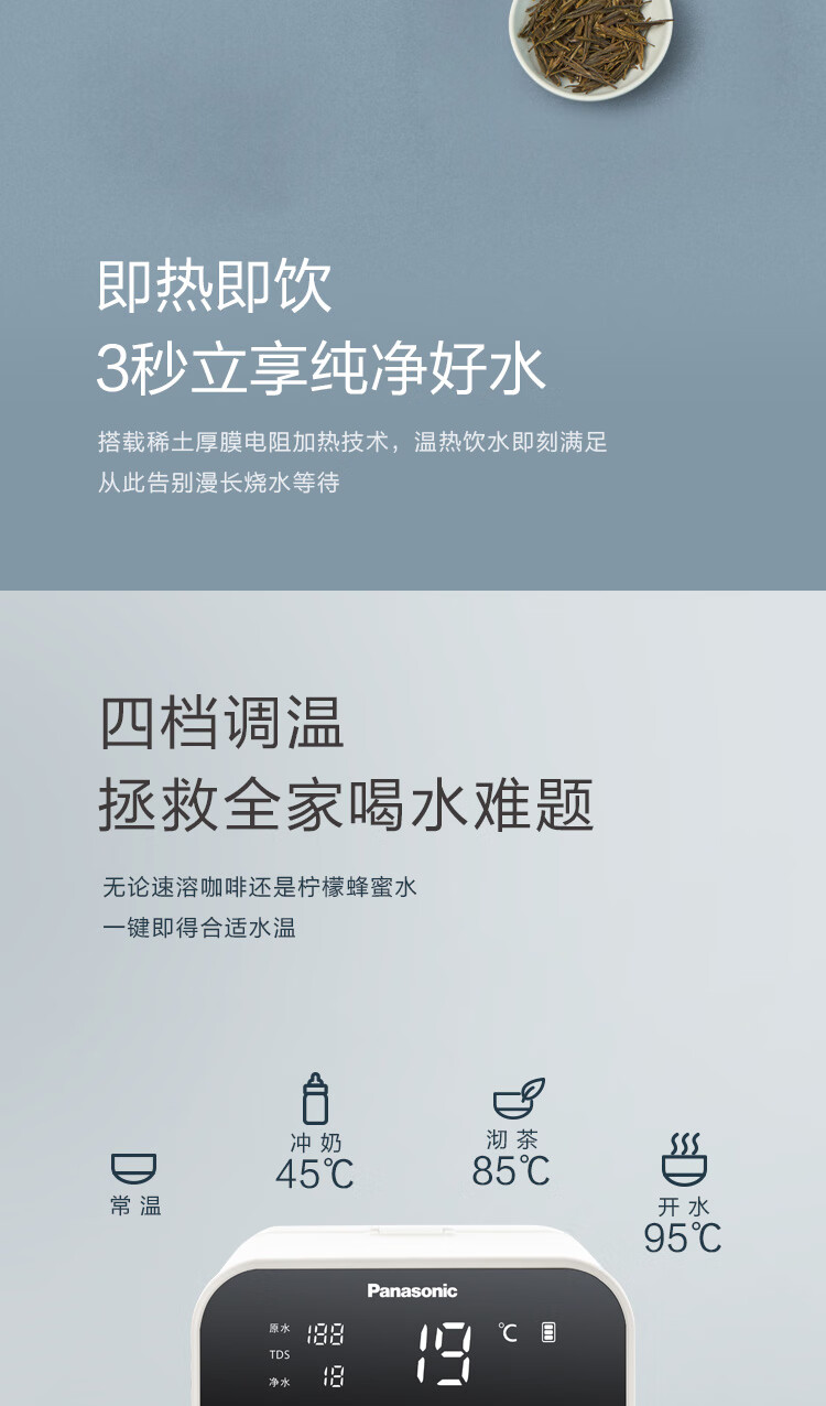 松下 Panasonic 加热净水器净饮一体机家用直饮机台式即热式RO反渗透净水机免安装饮水机AD59C