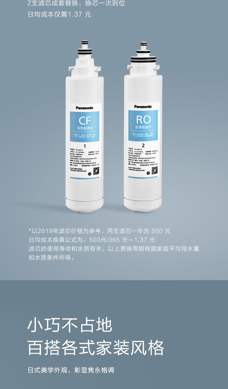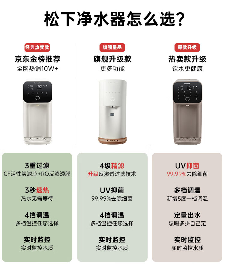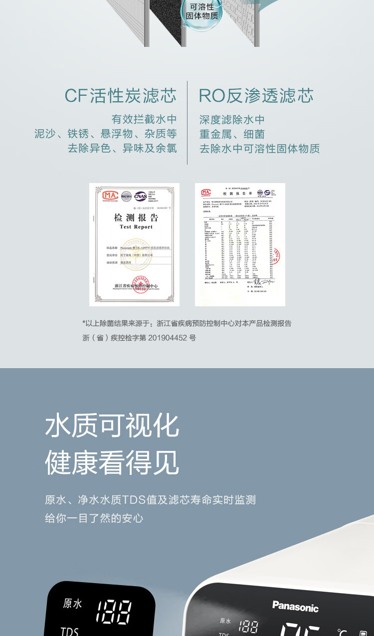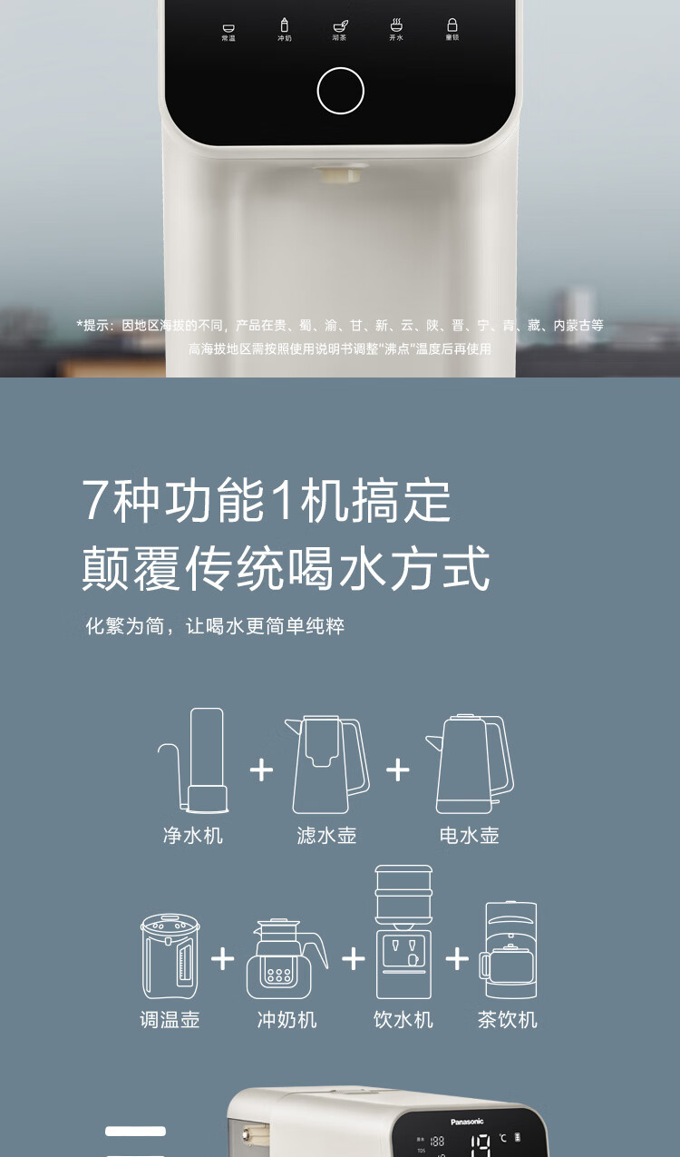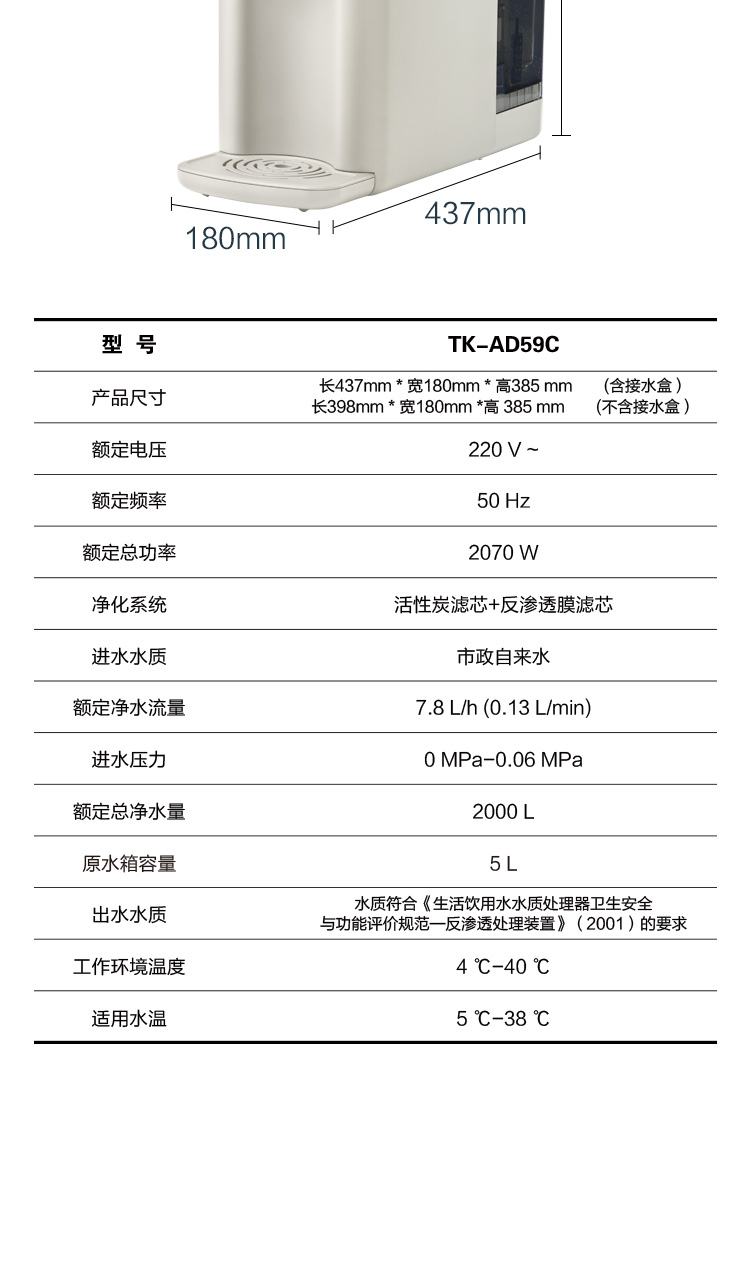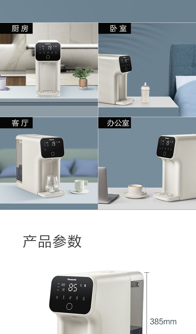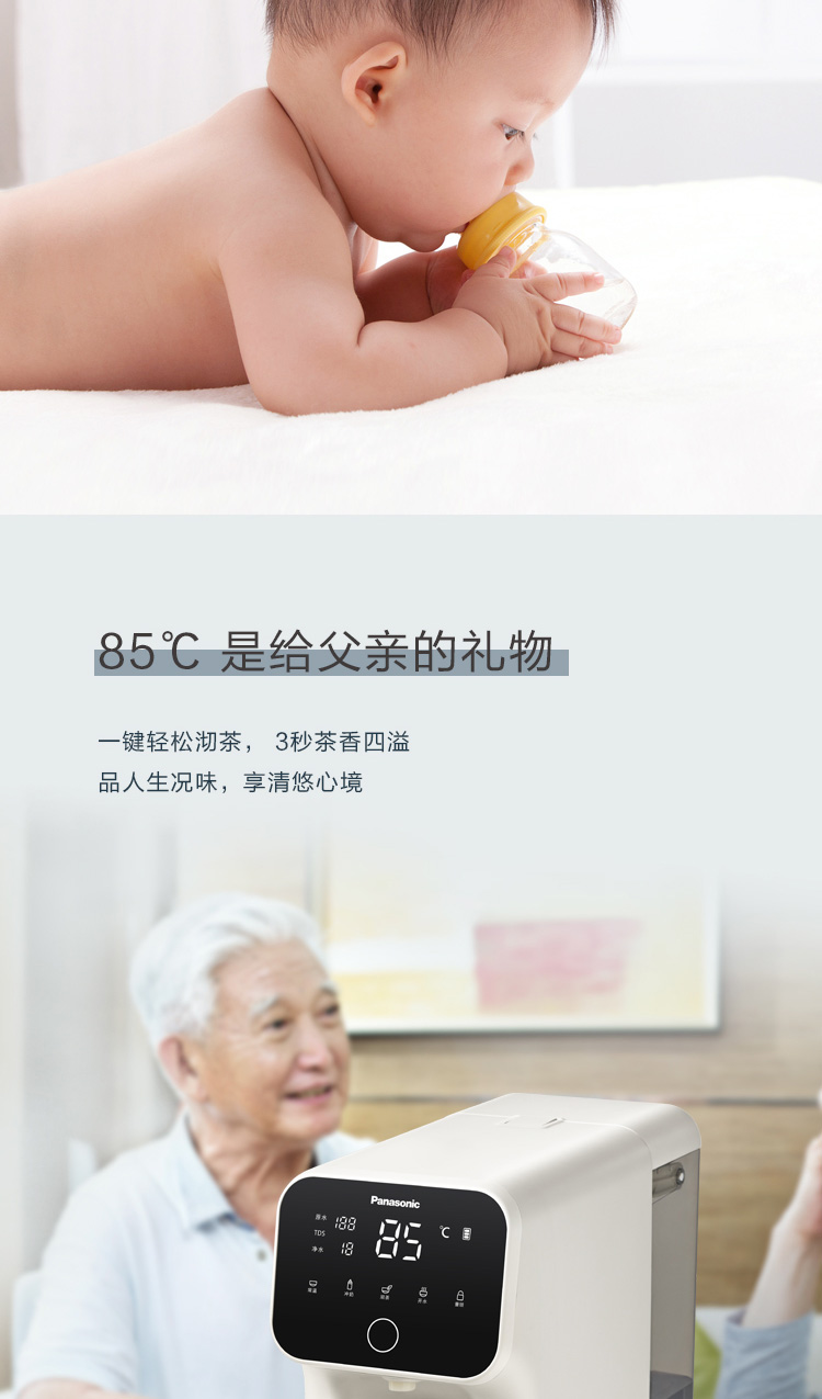 松下 Panasonic 加热净水器净饮一体机家用直饮机台式即热式RO反渗透净水机免安装饮水机AD59C