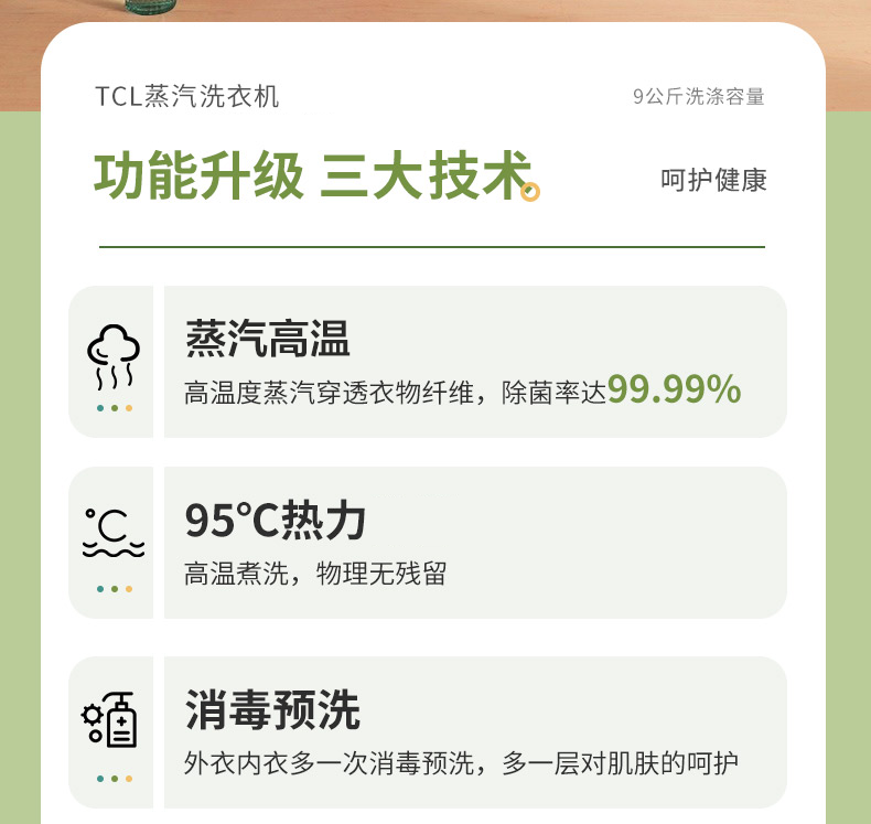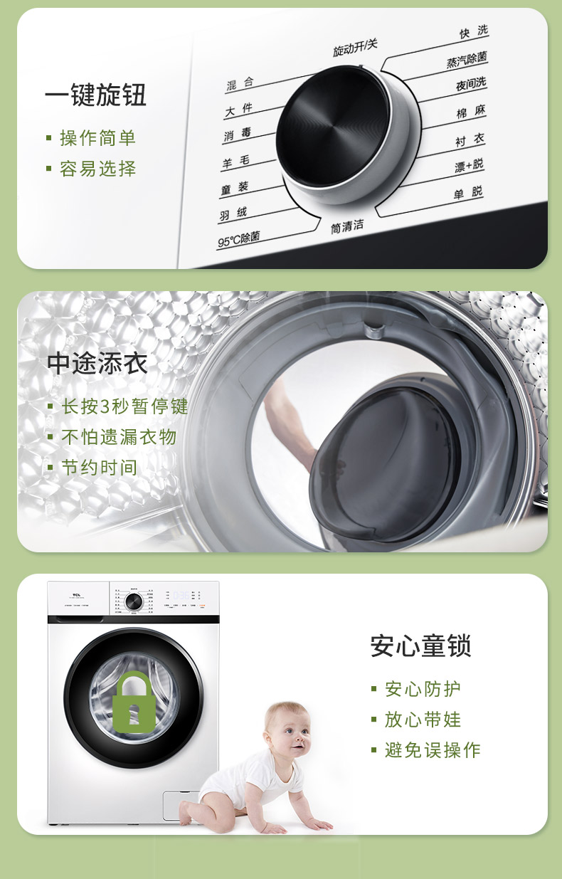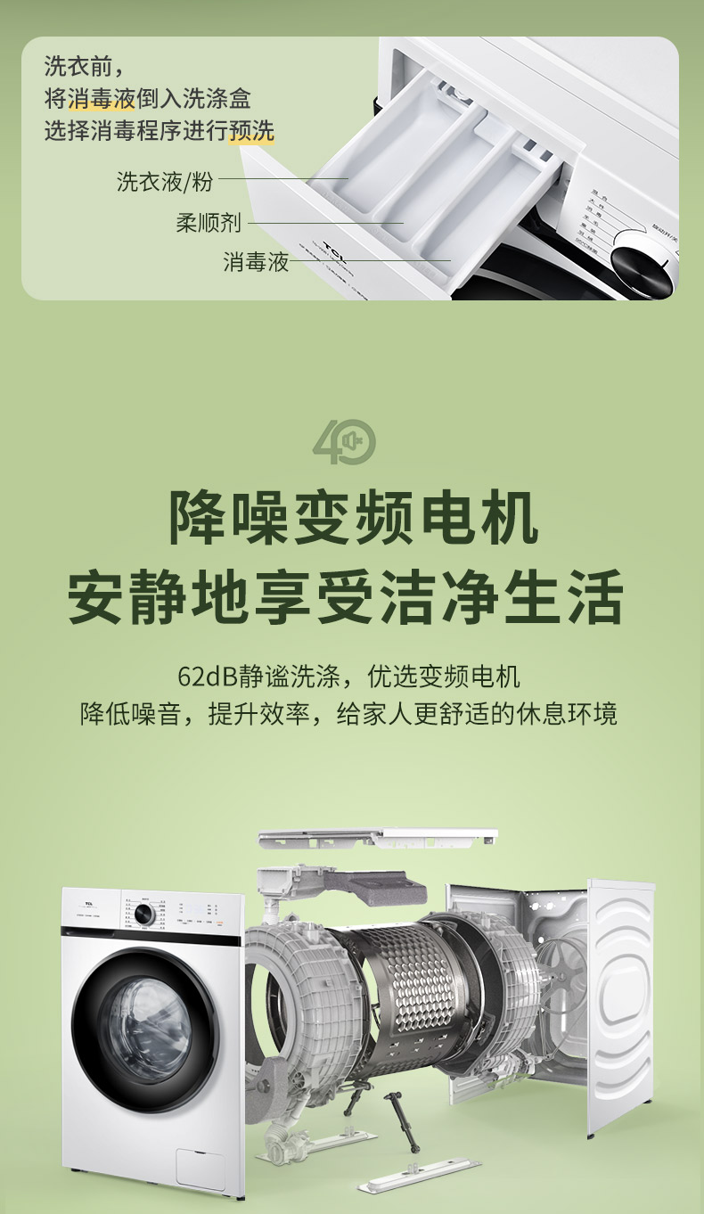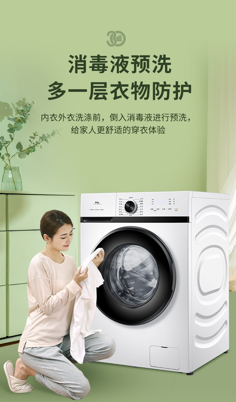 TCL一级能效 变频电机 6sense智慧感知 15种洗涤程序 9公斤全自动滚筒洗衣机 TG-V90B【企业采购】