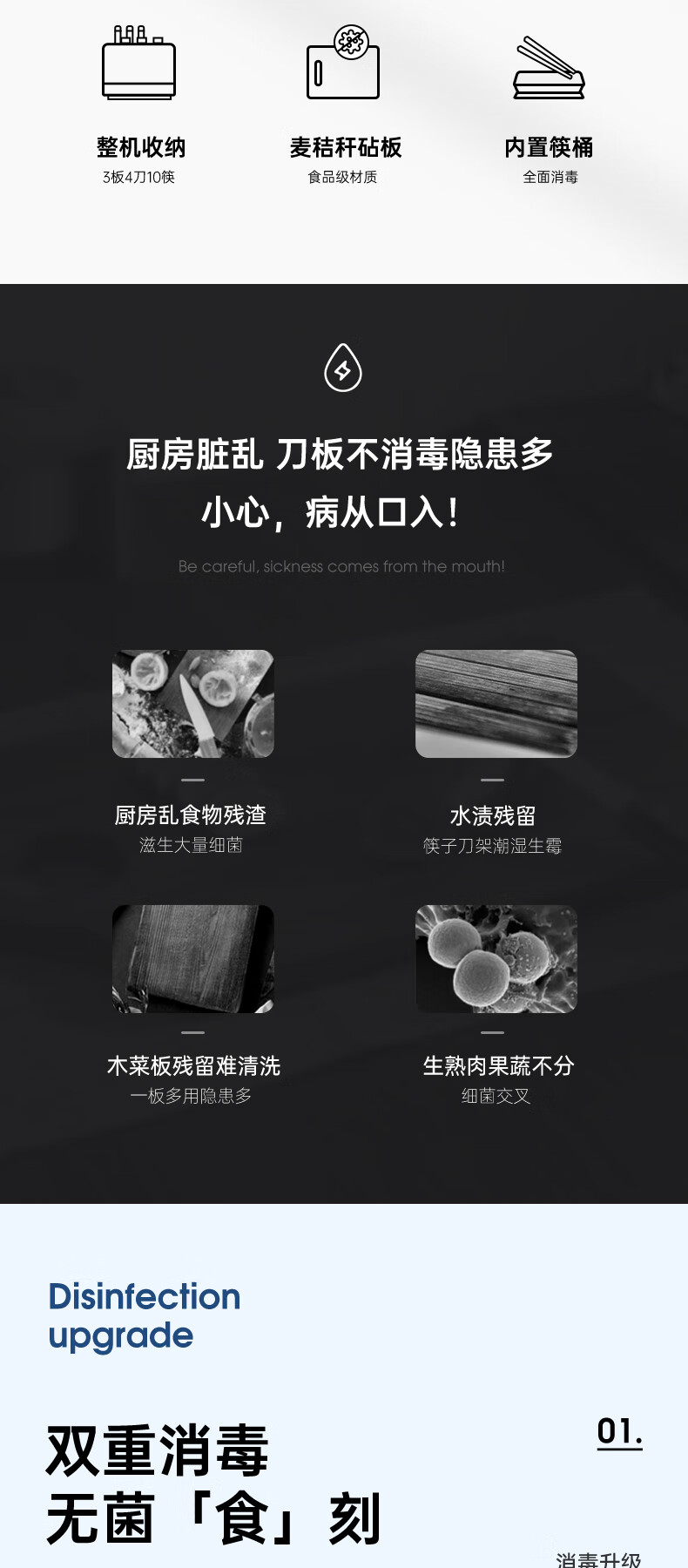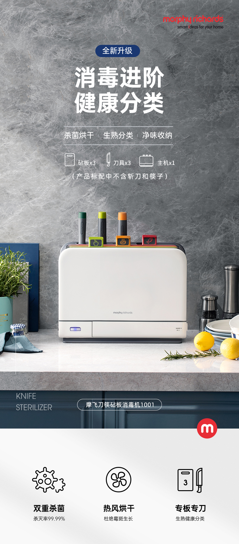 摩飞电器(Morphyrichards)消毒刀架砧板刀具消毒机家用小型筷子筒紫外线消毒机烘干器 菜板分类厨具MR1001