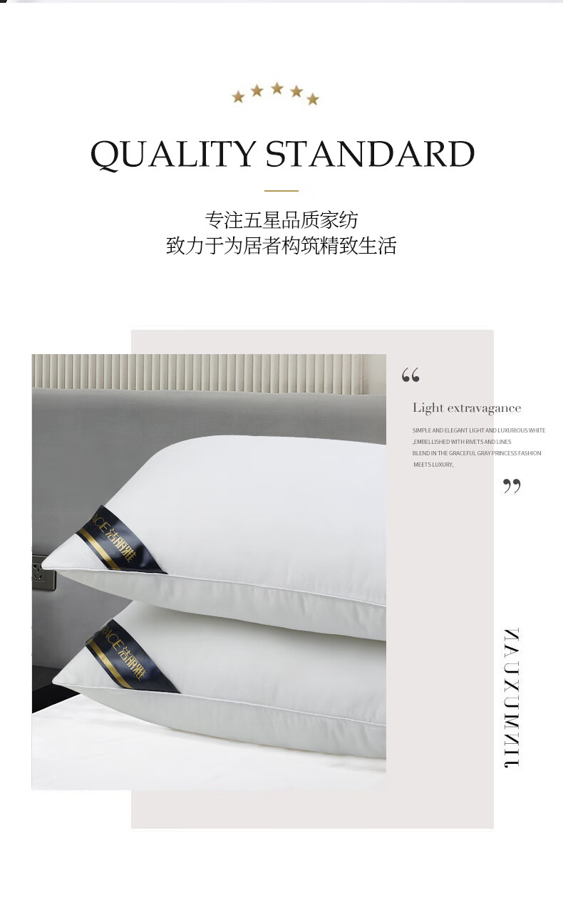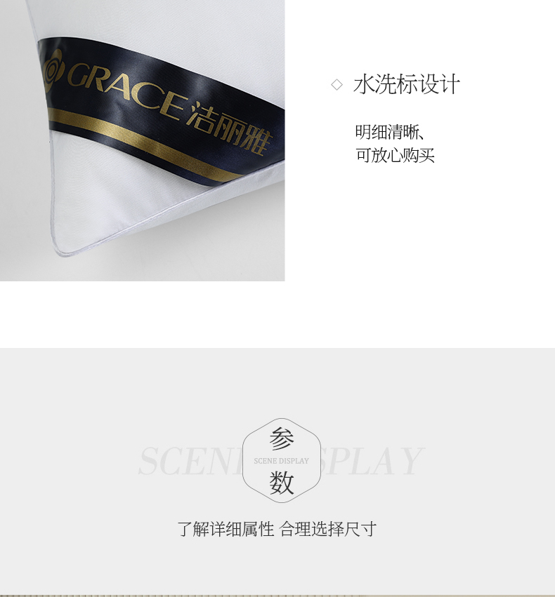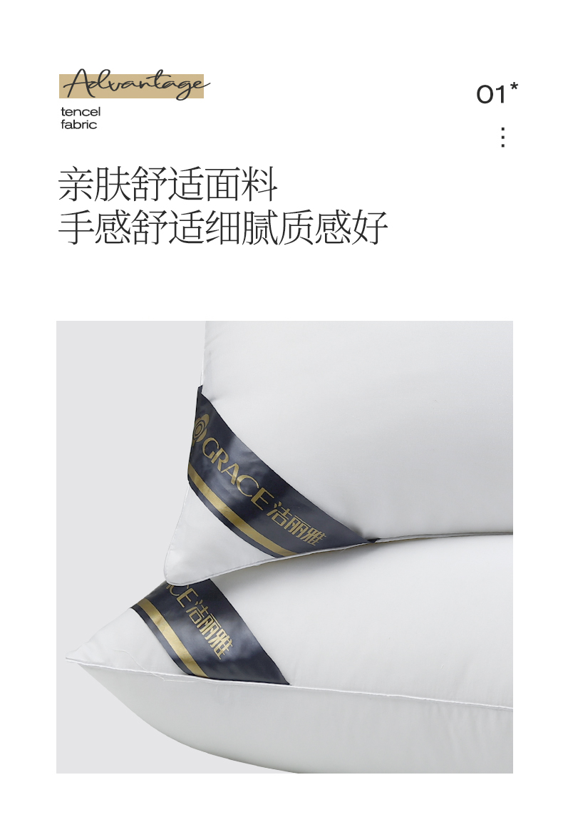 洁丽雅 Grace 枕头枕芯星级酒店枕羽丝绒枕芯 纤维软枕芯 单只装