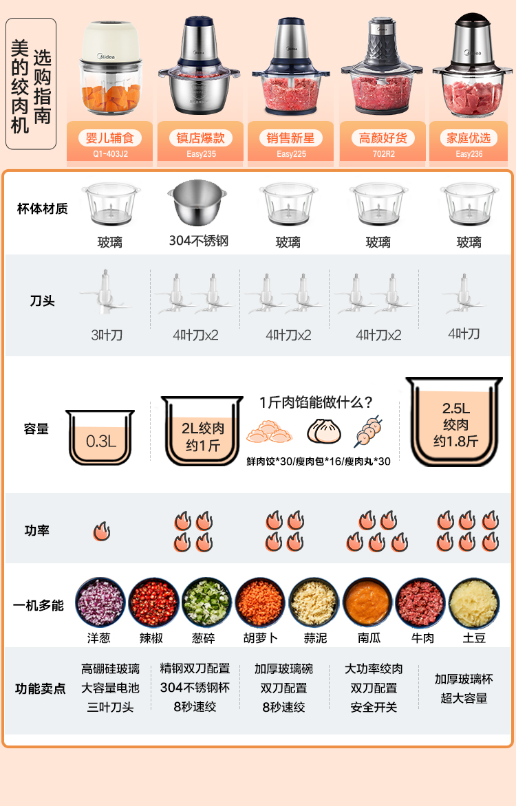 美的多功能绞肉机家用绞肉机辅食机MC30M1-702R3