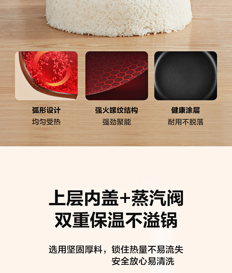 美的 Midea FS4073A电饭煲煲汤煮粥柴火饭智能预约饭锅不粘4L大容量排水槽底盘加热黄晶蜂窝内胆(线下同款)