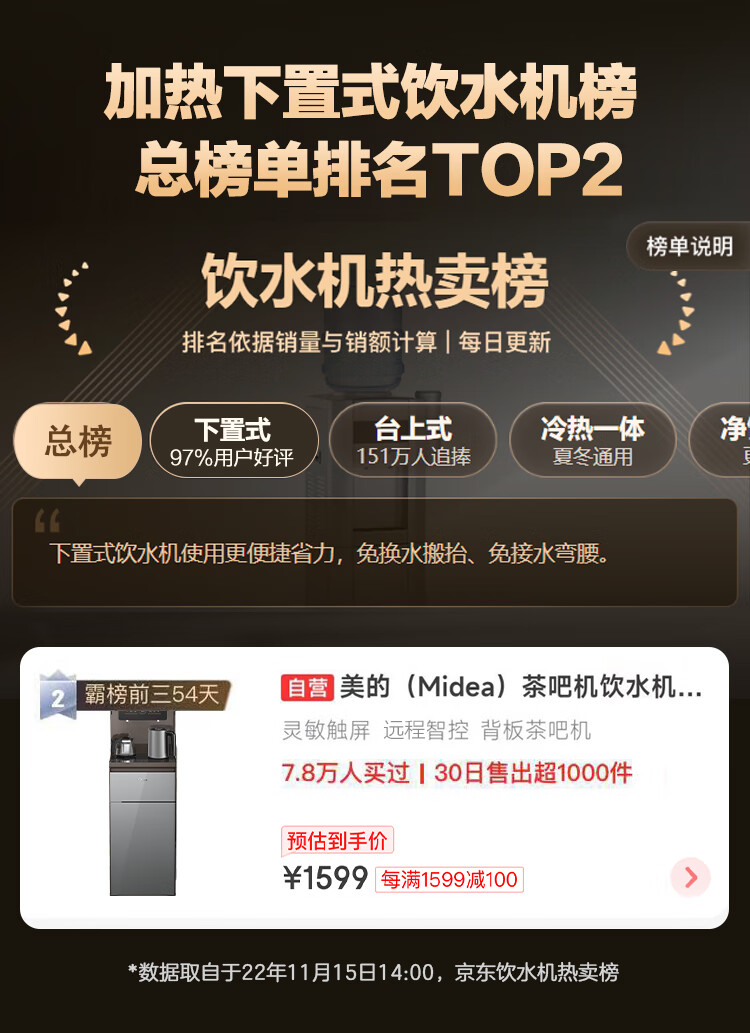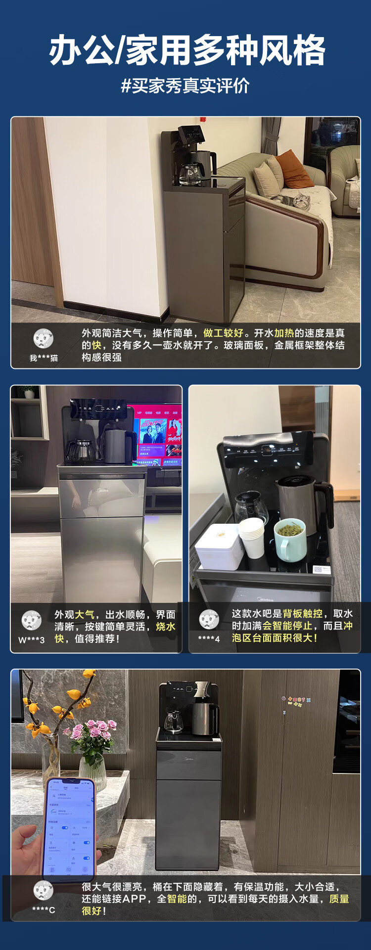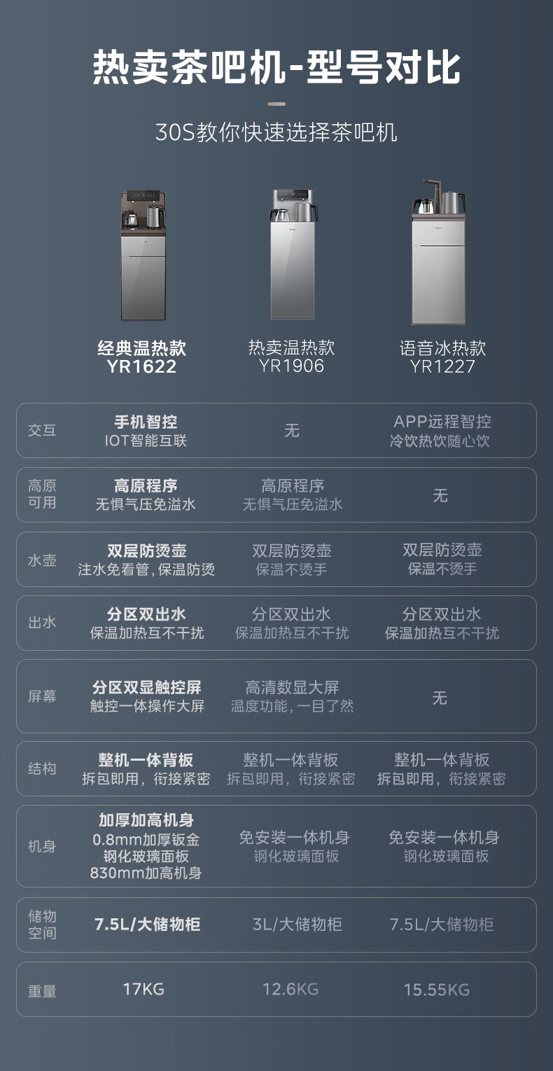 美的(Midea)茶吧机饮水机家用办公室京东小家智能背板下置式桶装水多功能触控大屏立式温热型YR1622S-X极光