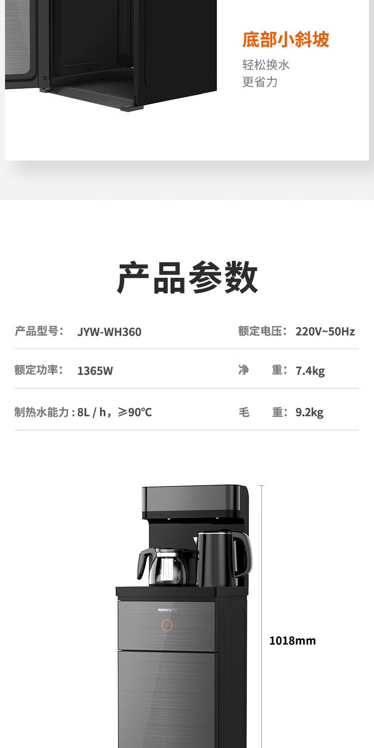 九阳(Joyoung)茶吧机 家用全自动下置式净饮一体机 智能触控茶吧机 饮水机家用立式智能茶吧机 JYW-WH360