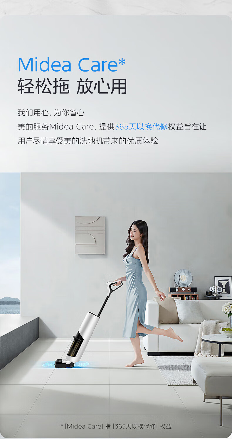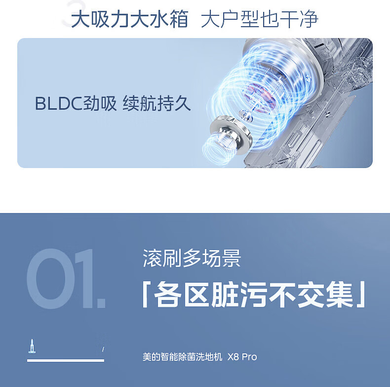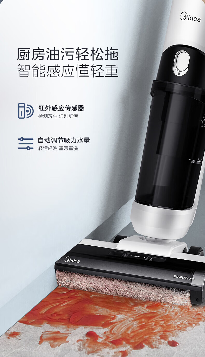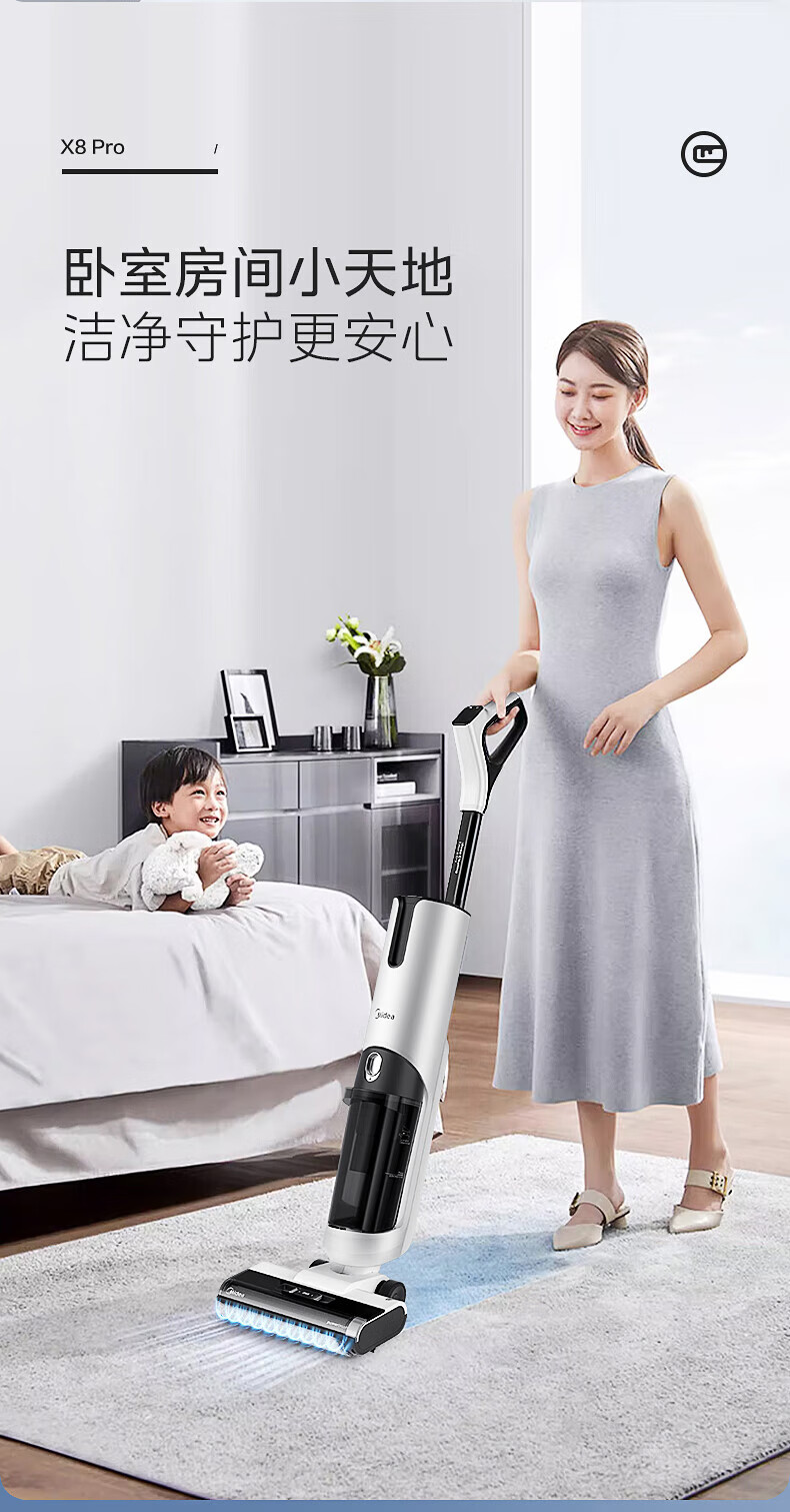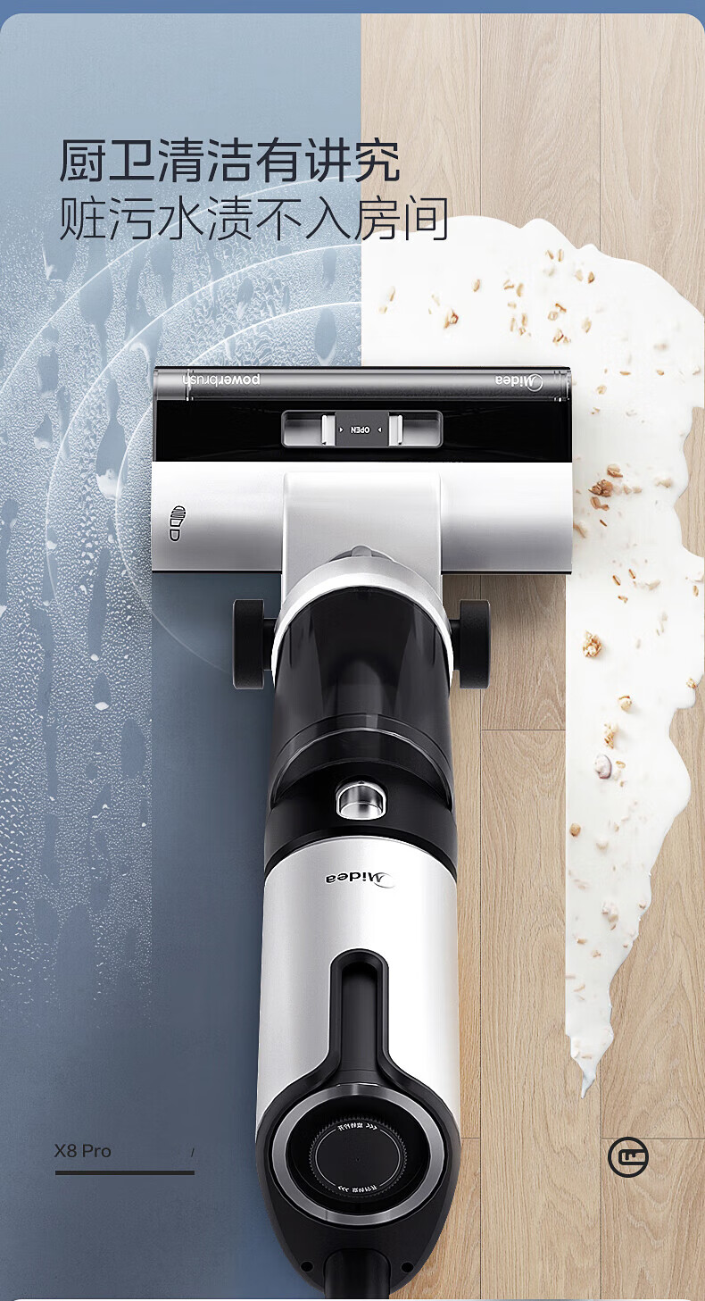 美的(Midea)洗地机 X8无线智能除菌吸尘家用吸拖洗一体手持无线清洁拖地机 活水自清洁 美的无尘感洗地机