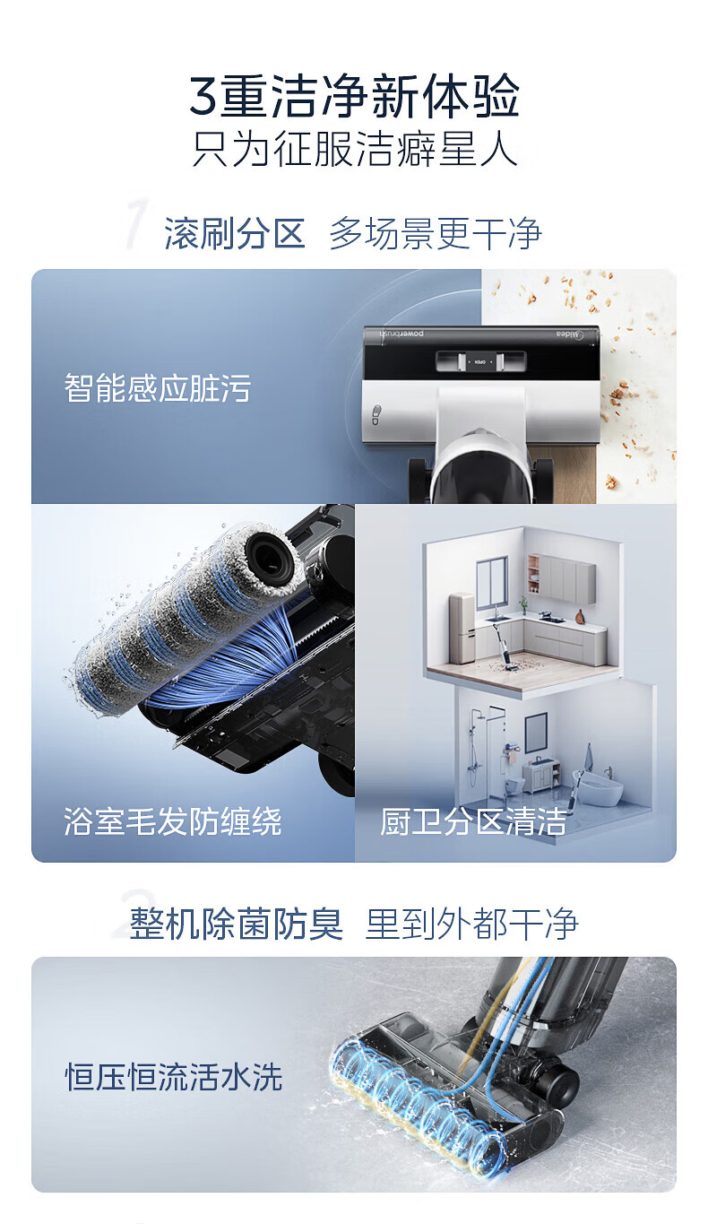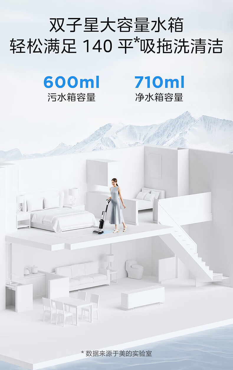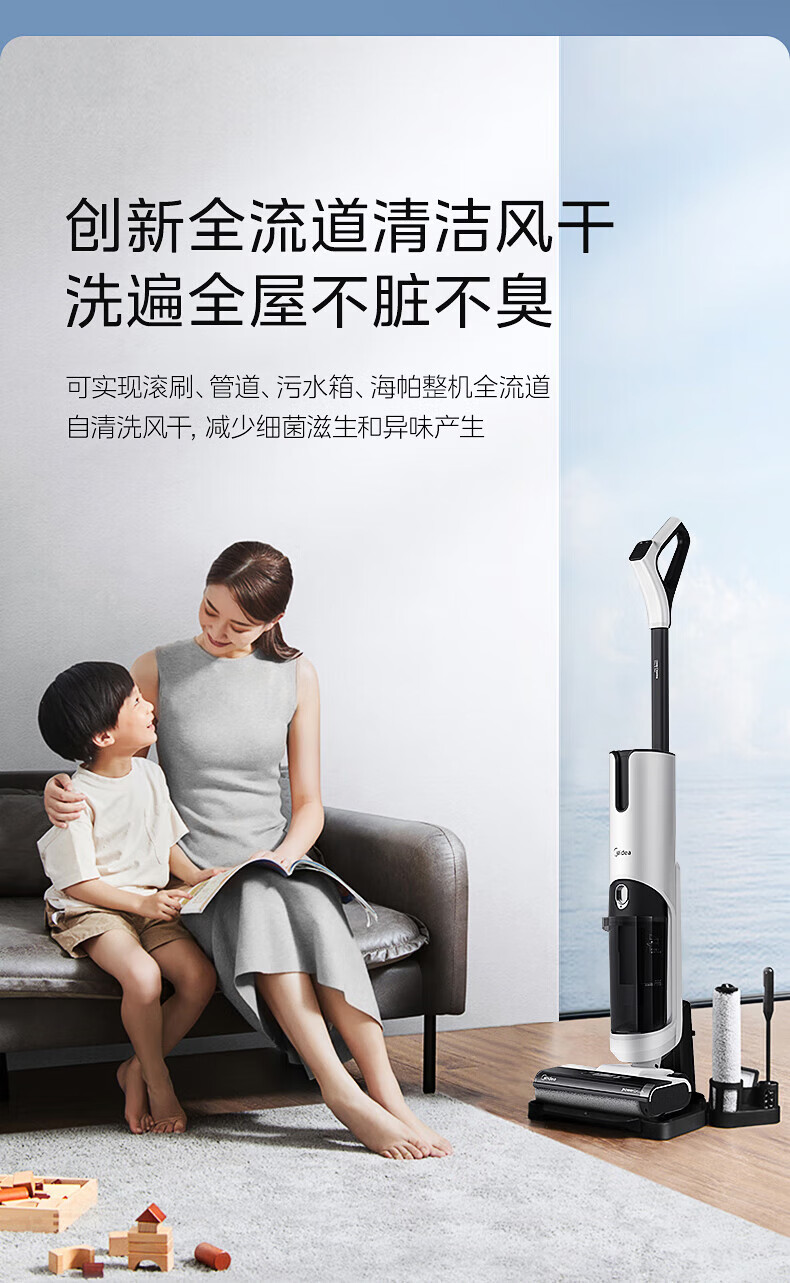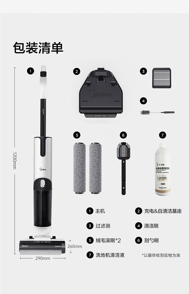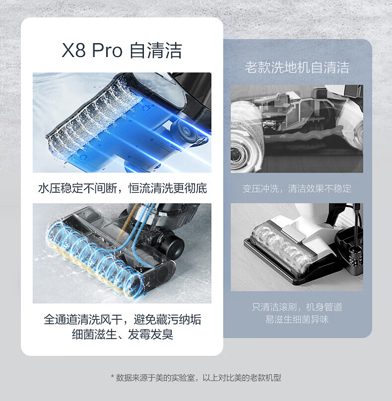 美的(Midea)洗地机 X8无线智能除菌吸尘家用吸拖洗一体手持无线清洁拖地机 活水自清洁 美的无尘感洗地机