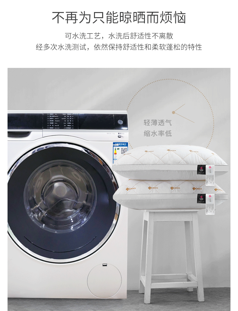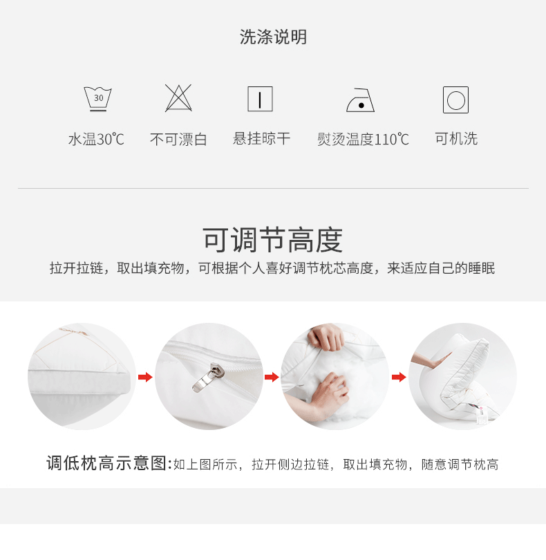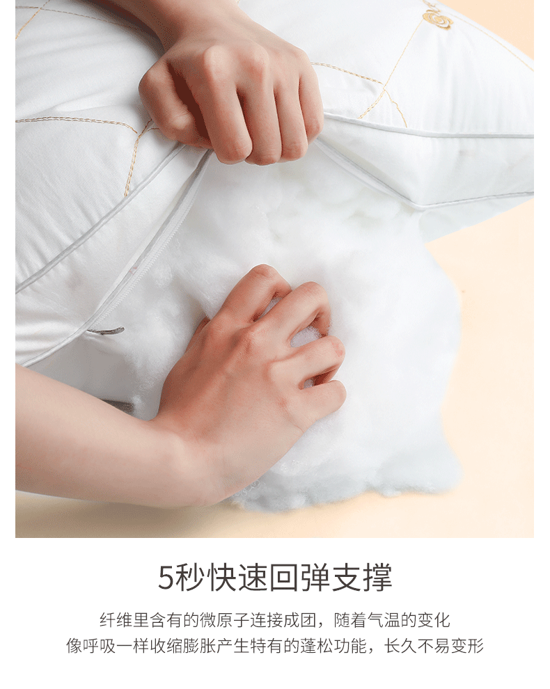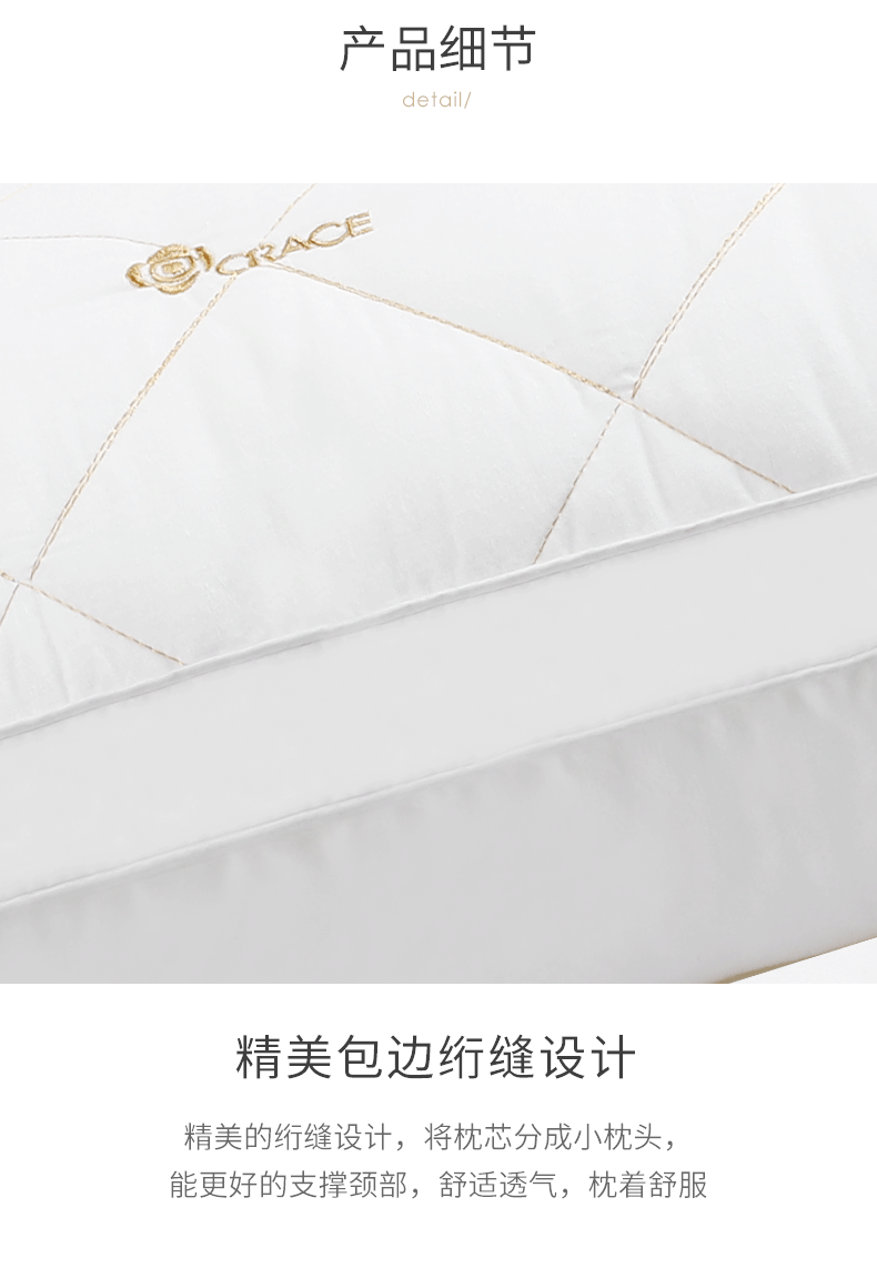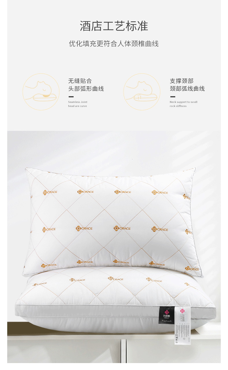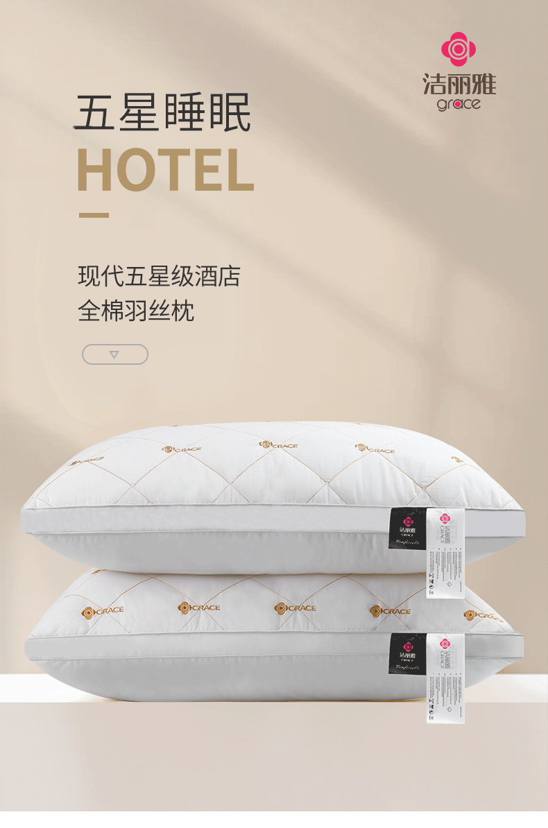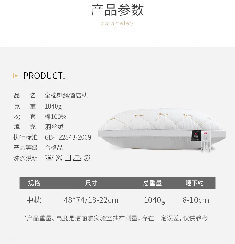 洁丽雅酒店枕头成人全棉面料枕头芯纤维软枕芯 恬心枕 74*48cm单只装
