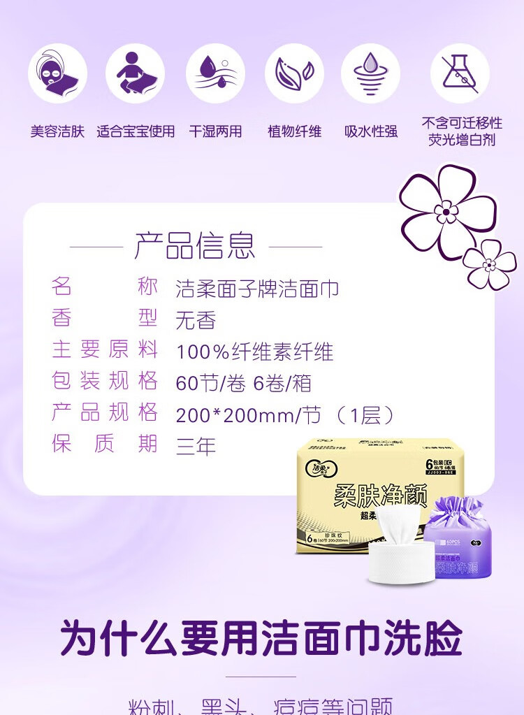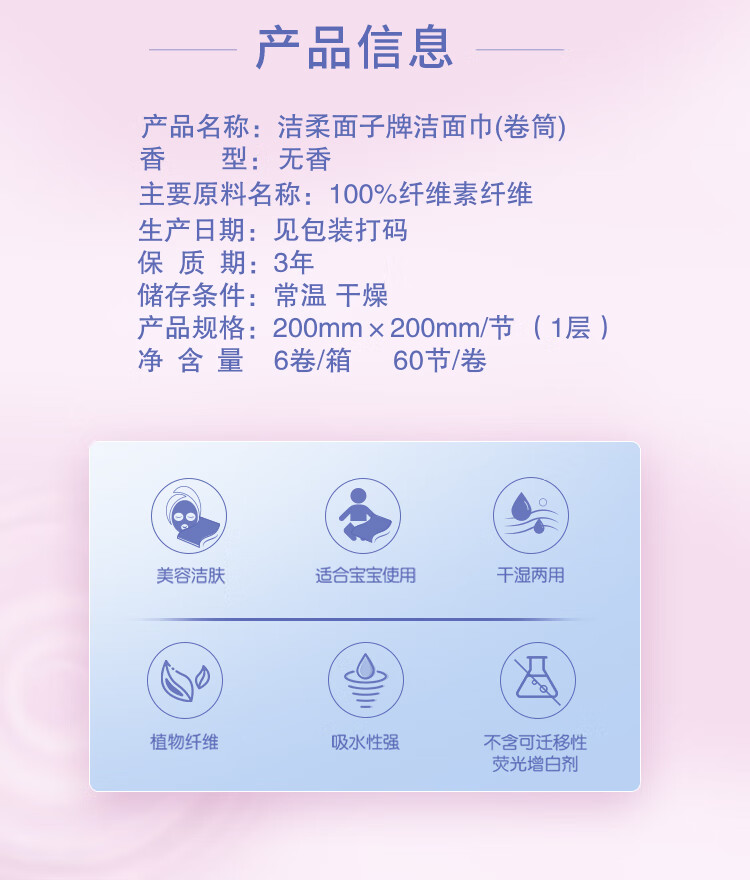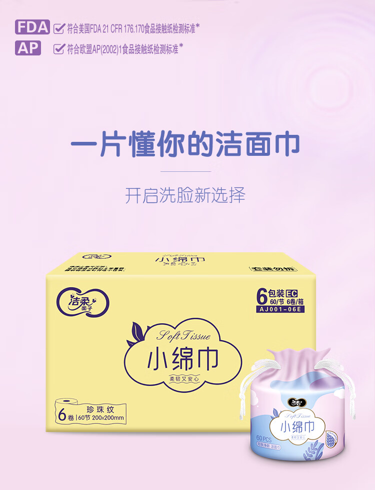 洁柔洁面巾*6卷 一次性洗脸巾...