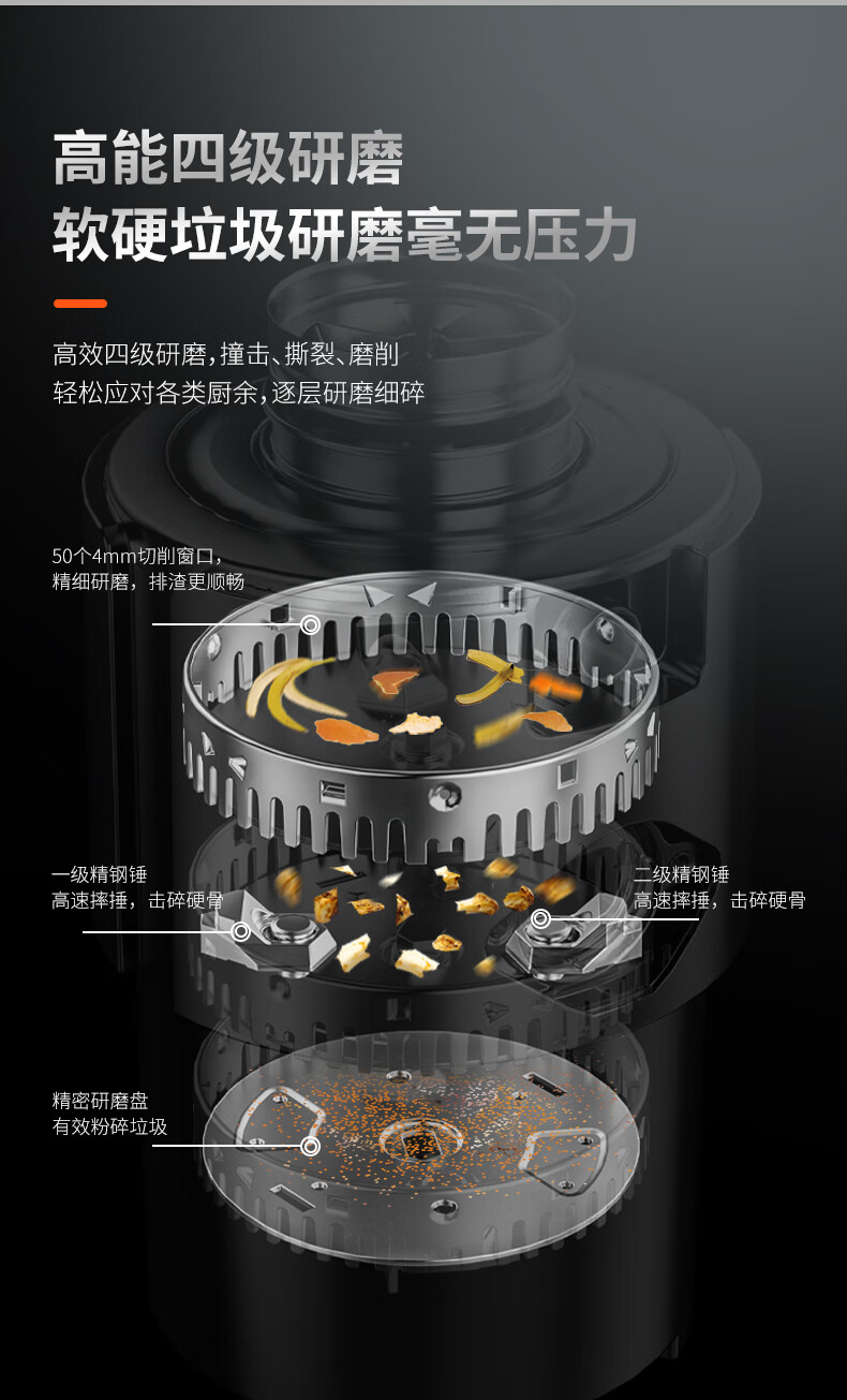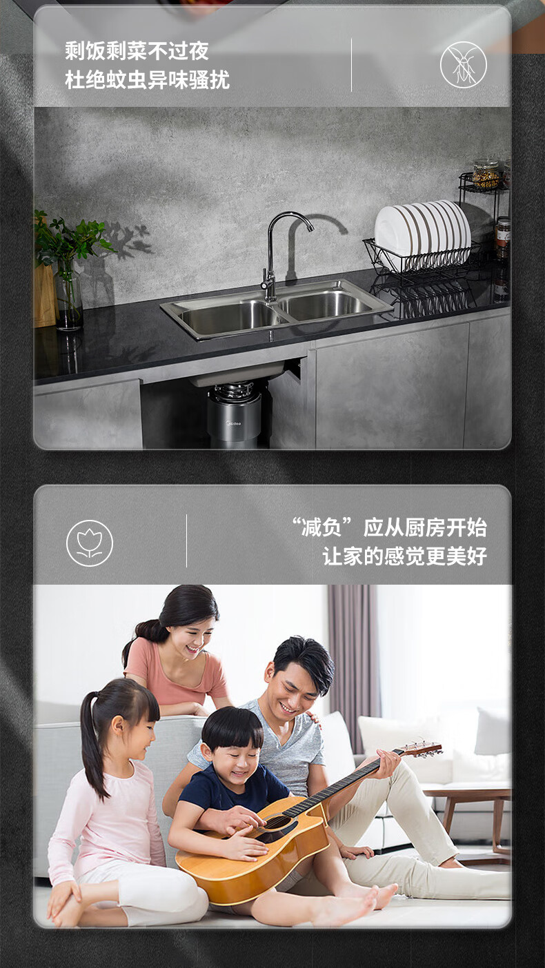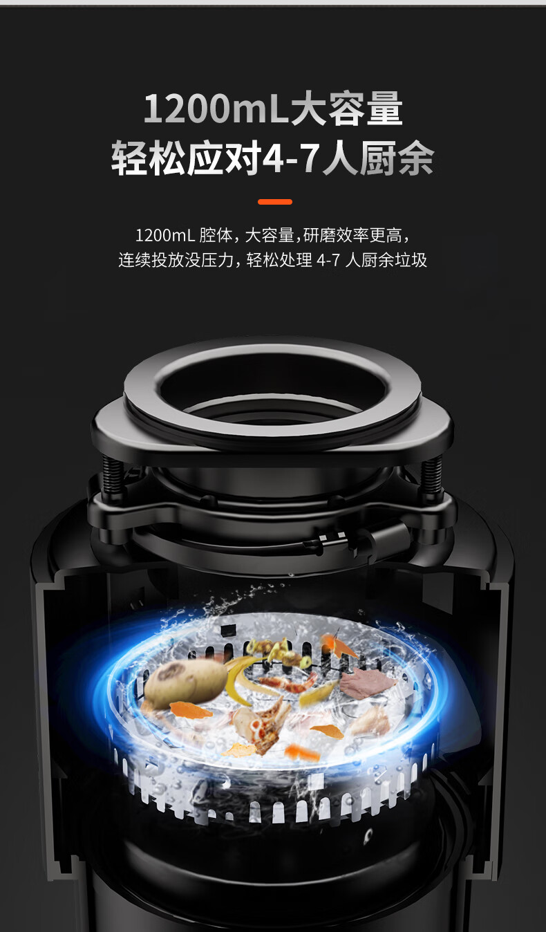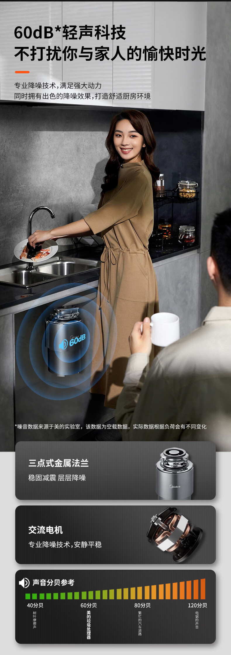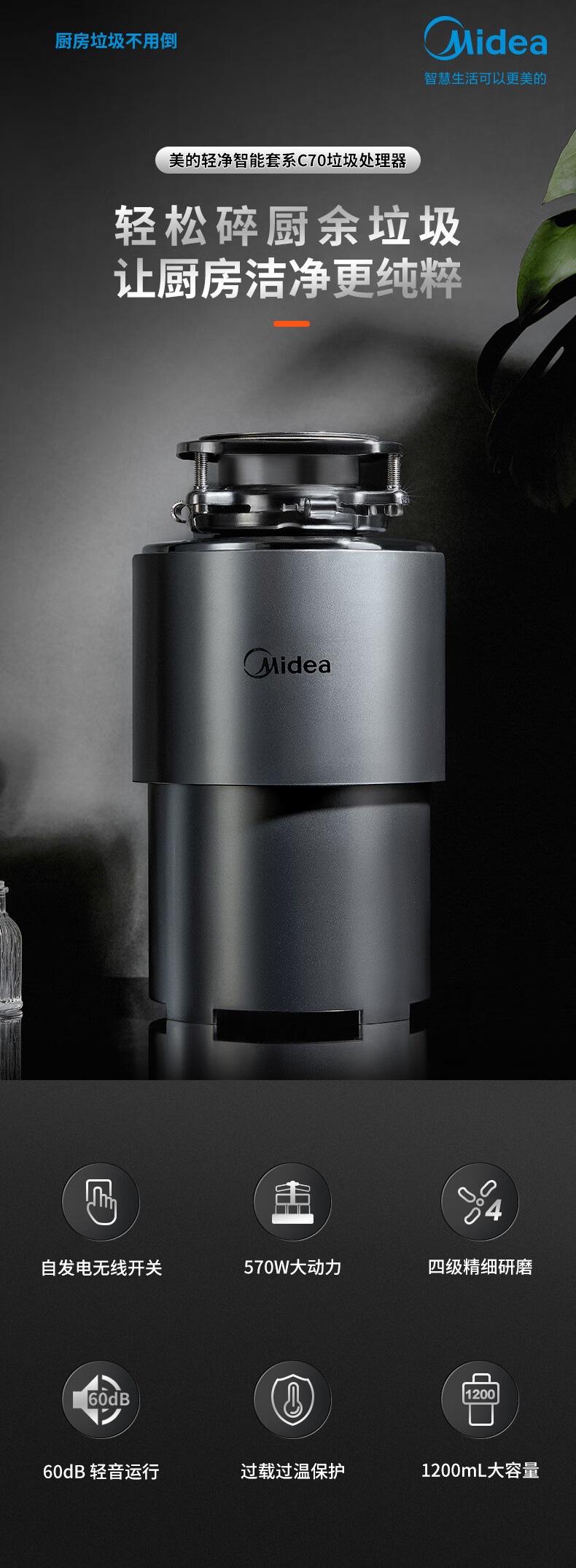美的(midea)厨房垃圾处理器家用大功率隔音降噪厨余食物粉碎机C70