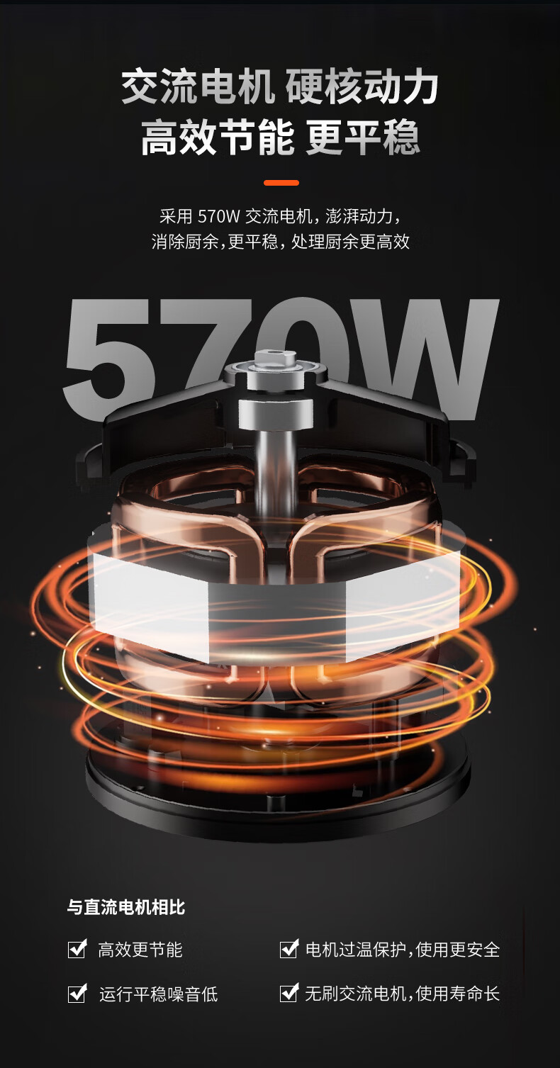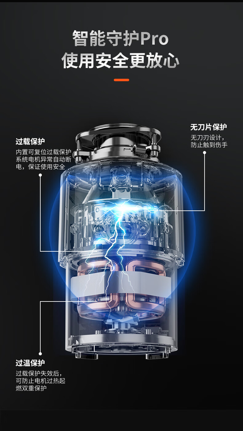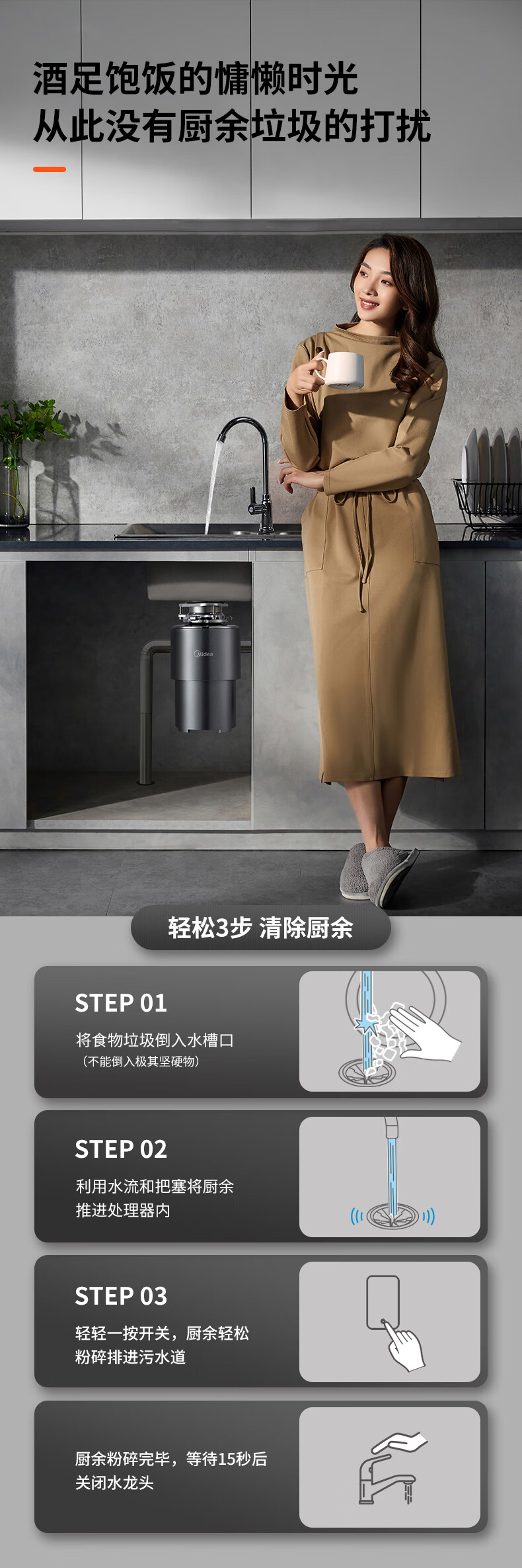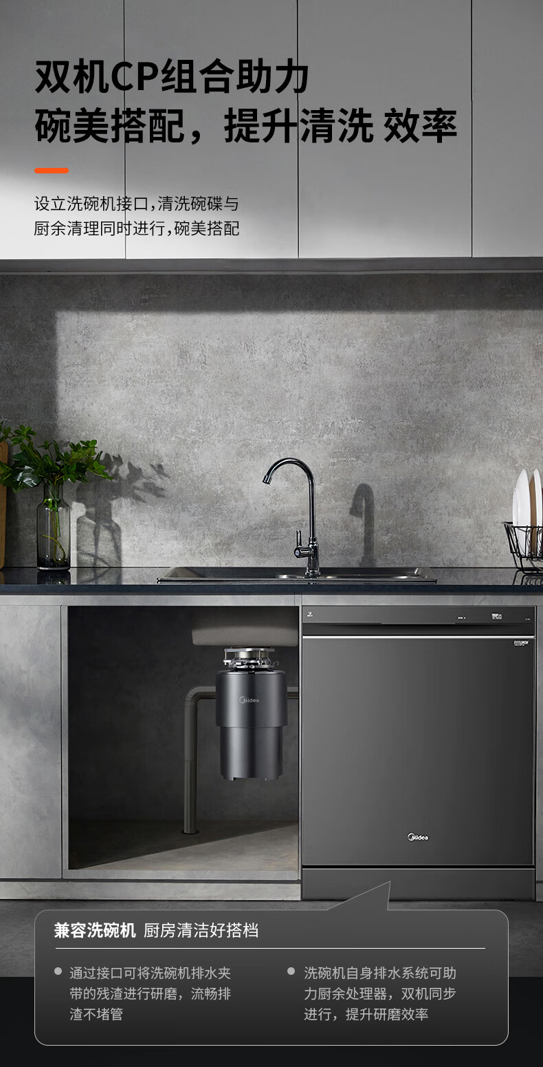 美的(midea)厨房垃圾处理器家用大功率隔音降噪厨余食物粉碎机C70