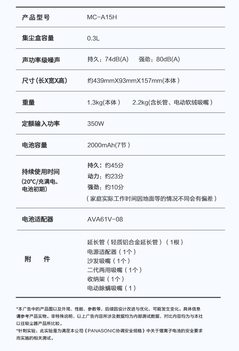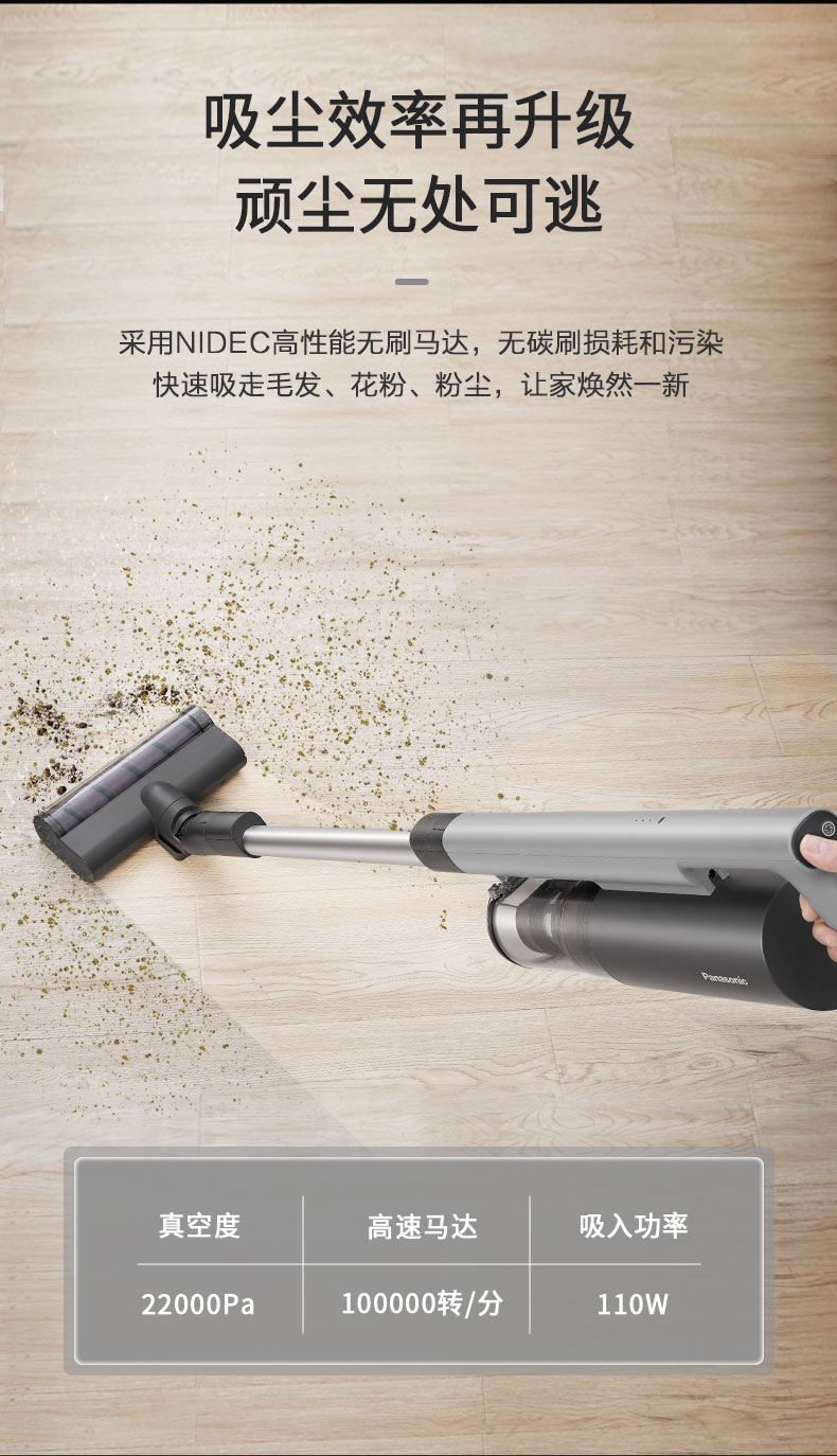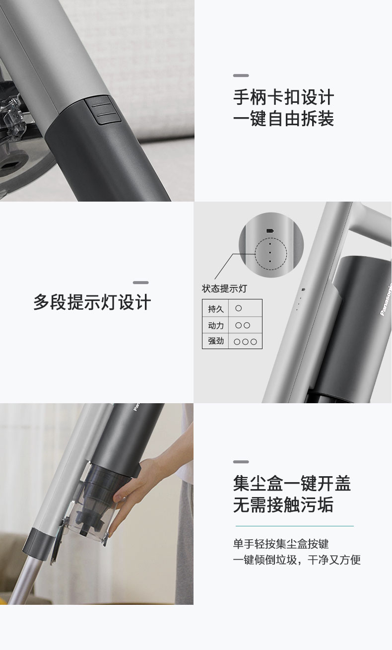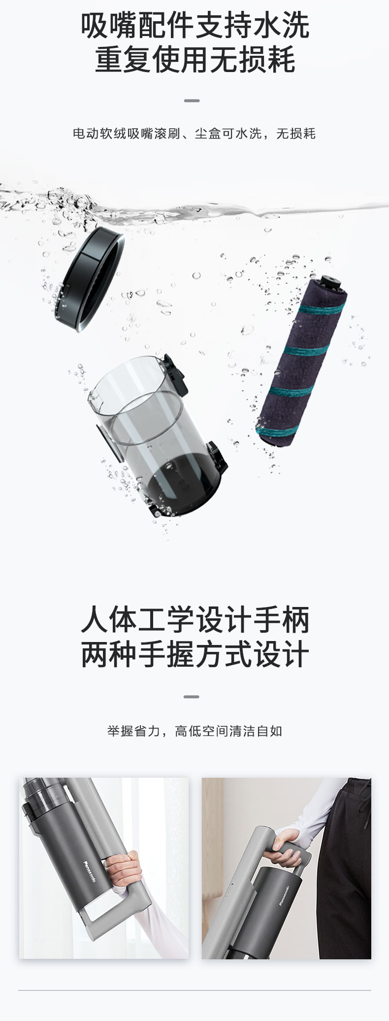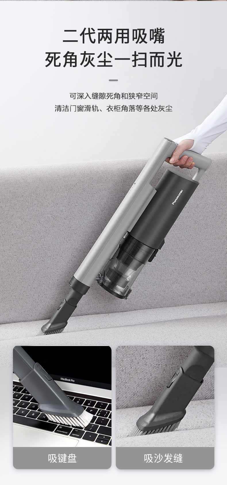 松下(Panasonic) MC-A15H 家用手持吸擦两用无线除螨大吸力充电式吸尘器 熔岩灰