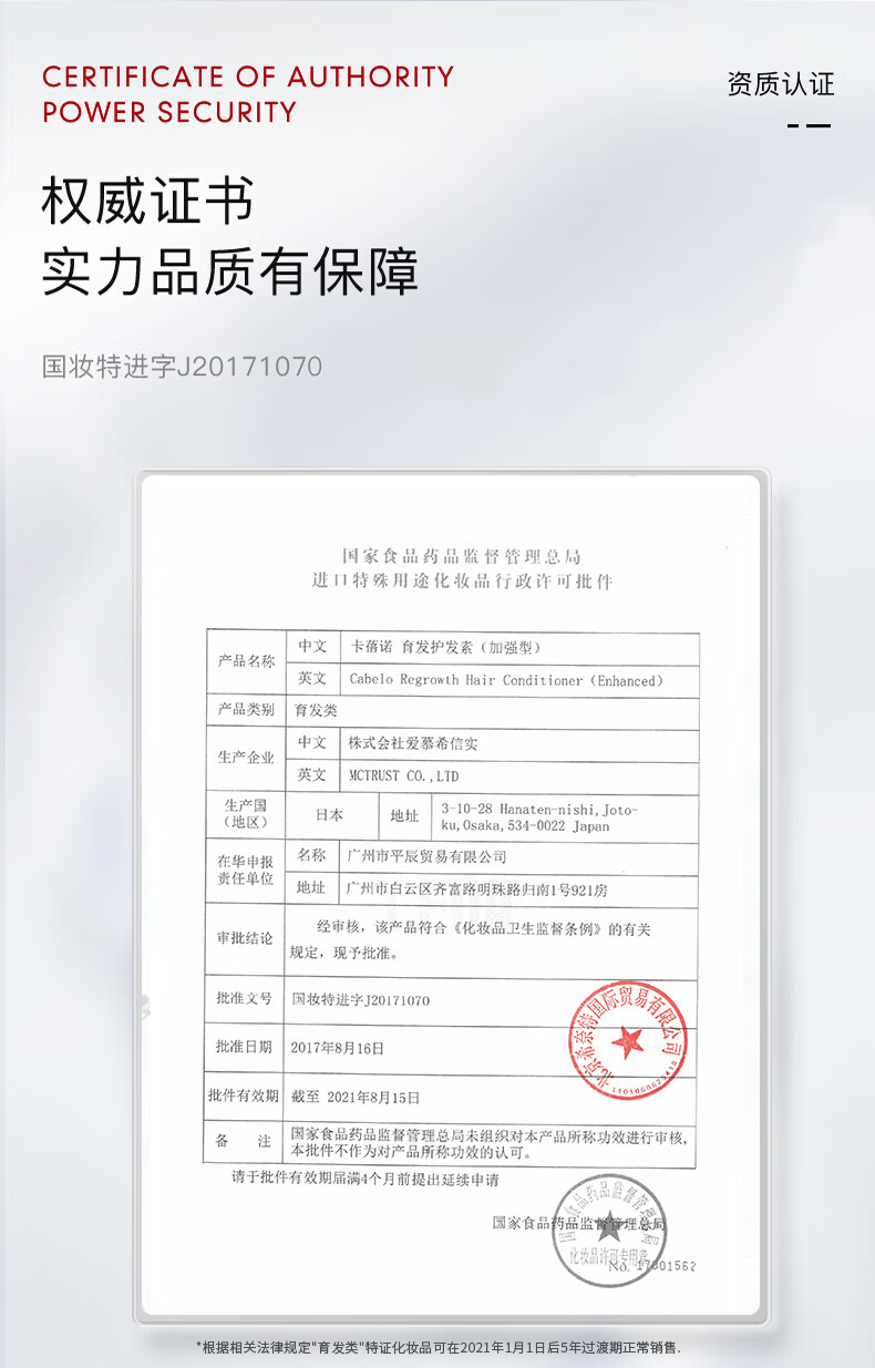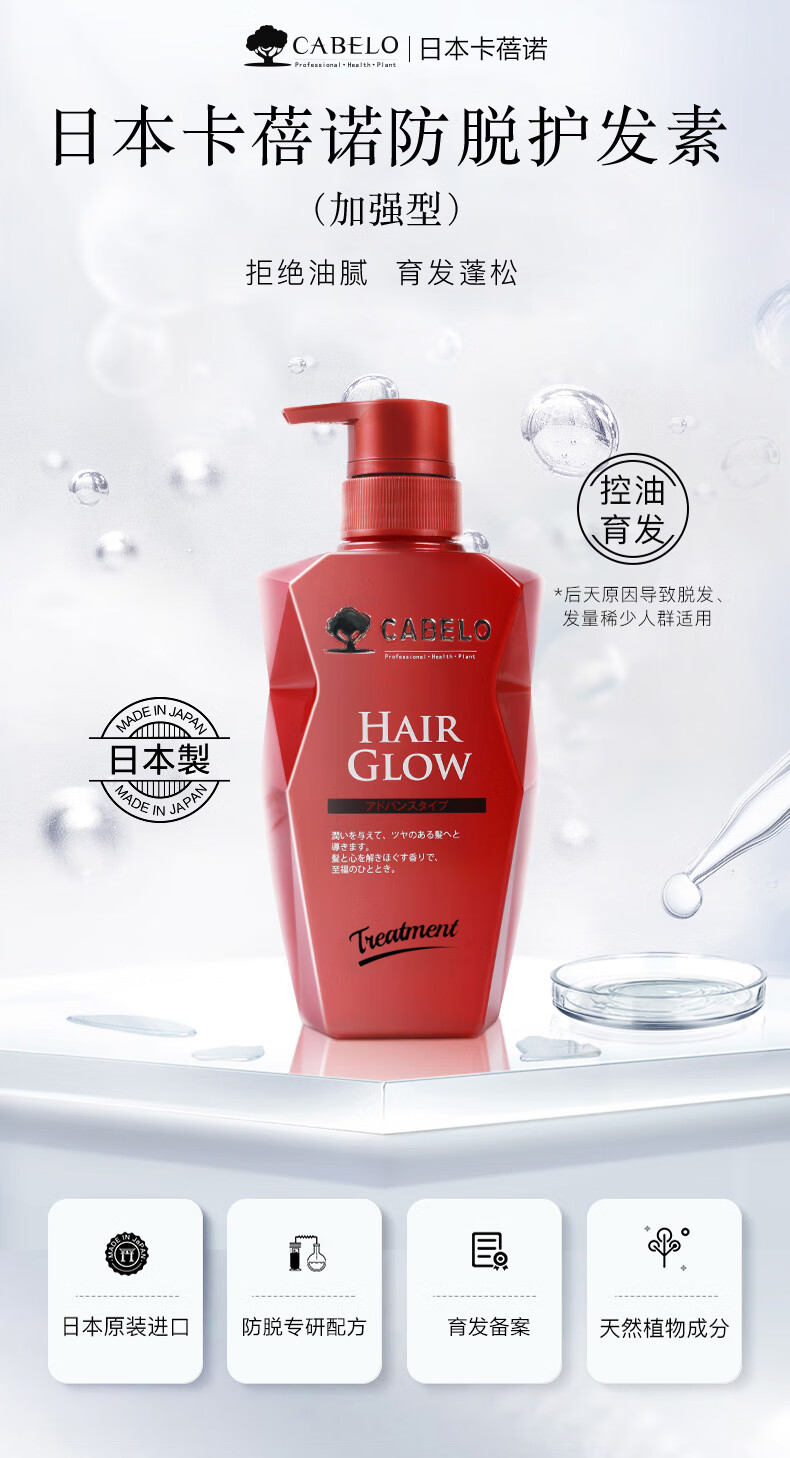 卡蓓诺(CABELO)日本进口防脱发育发护发素加强型350ml固发强韧充盈头皮可用