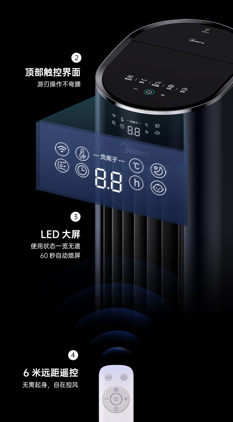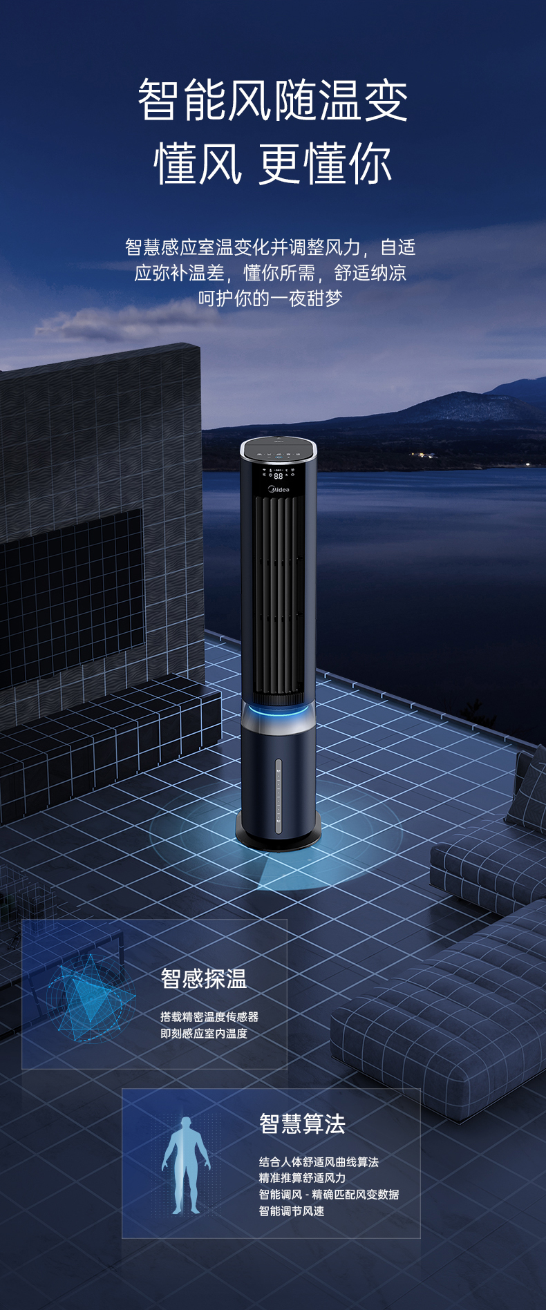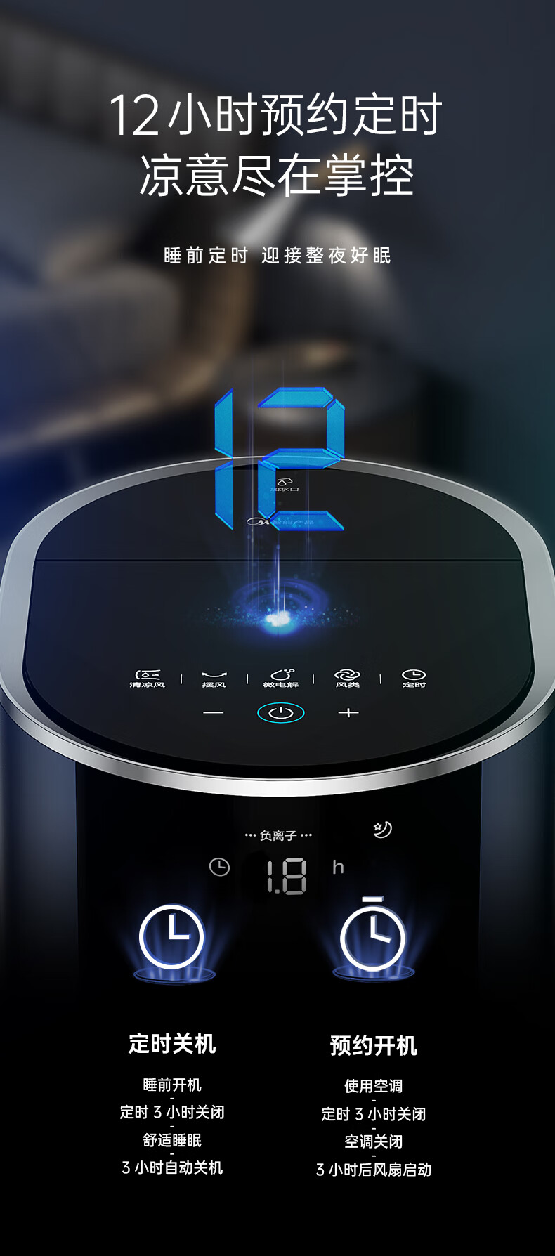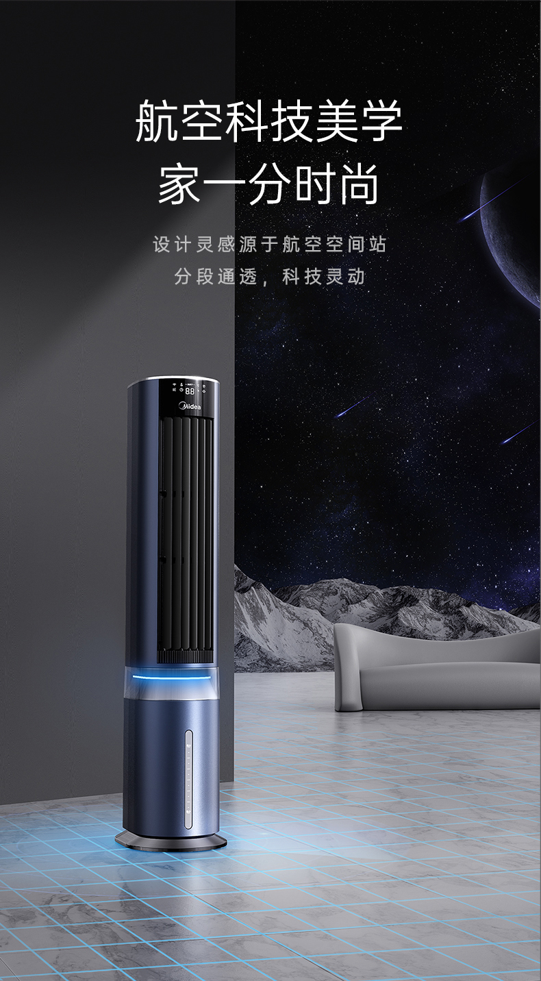 美的(Midea)冷风空调扇风机电解水降温净滤加湿易拆洗大风量遥控轻音双水箱风随温变AAF12PXJ(线下同款)