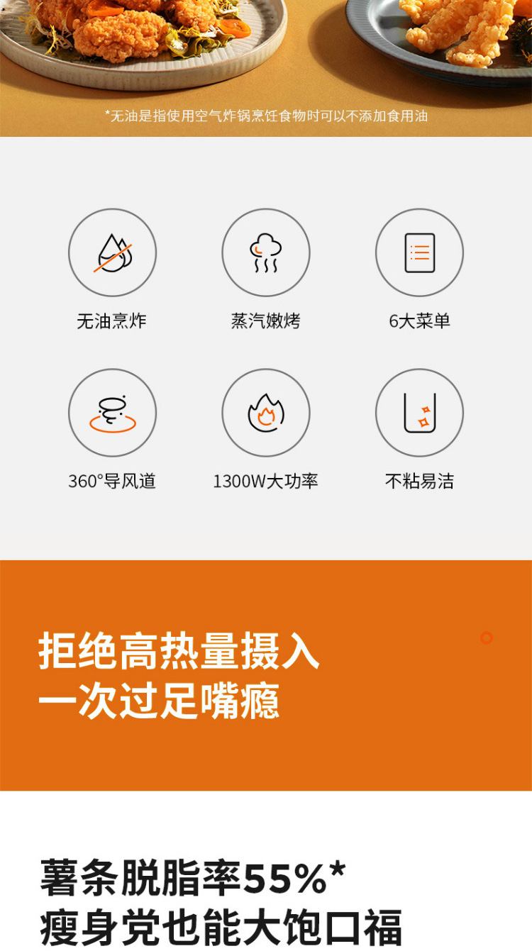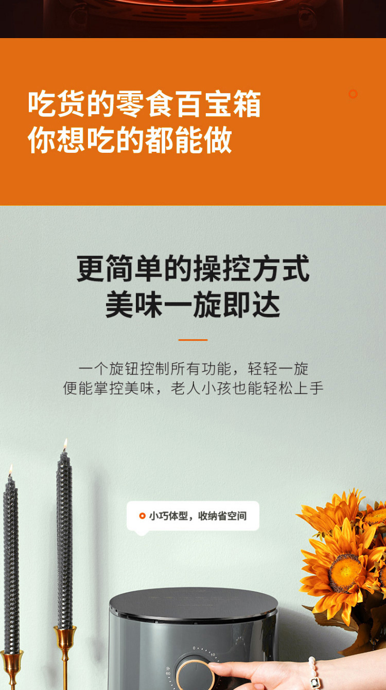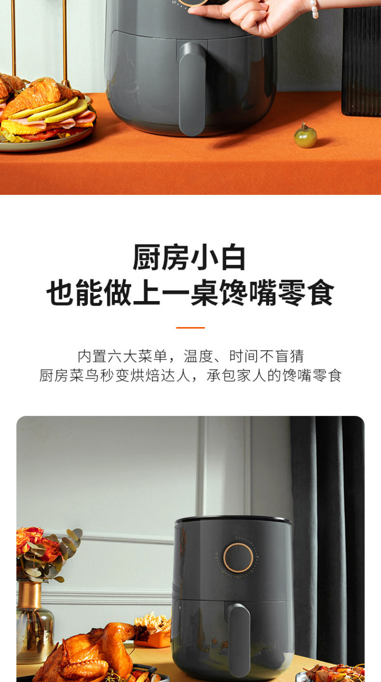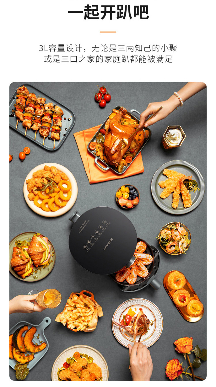 九阳空气炸锅家用多功能3L大容量定时无油空气炸不沾薯条机KL30-VF165【企业采购】【支持一件代发】
