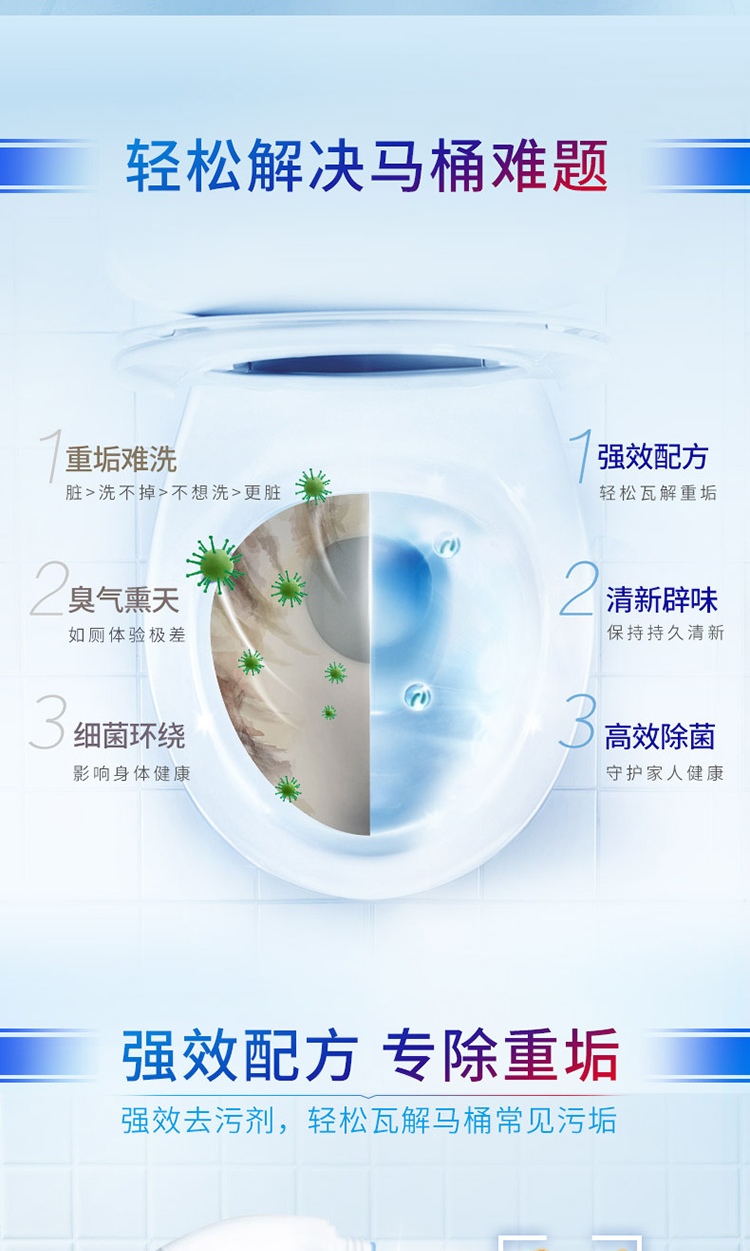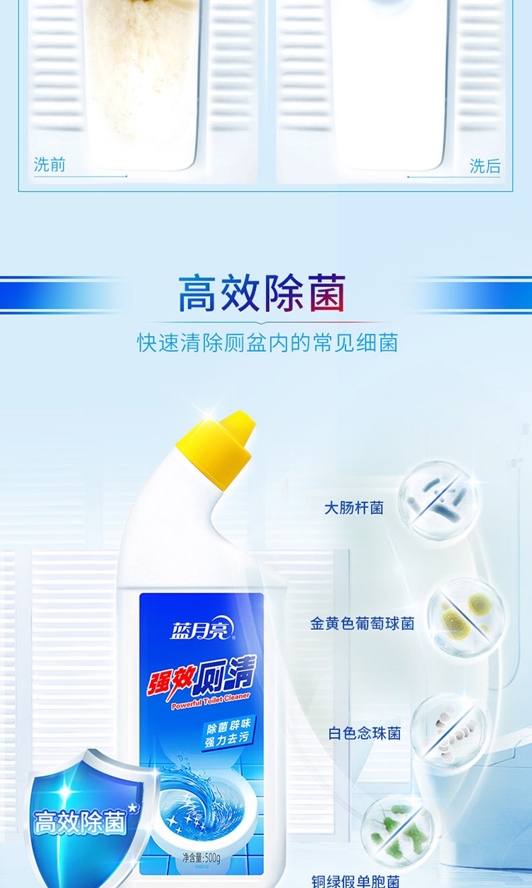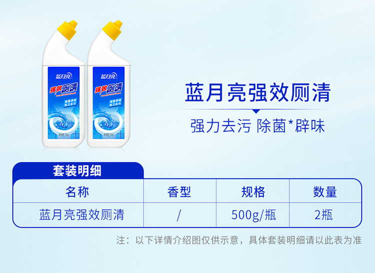 蓝月亮 强效厕清500g*2瓶 洁厕液 洁厕灵 马桶清洁剂 除菌去污