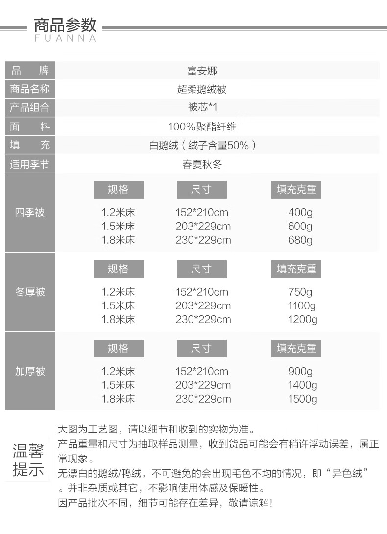 富安娜加厚羽绒被子白鹅绒被芯冬...
