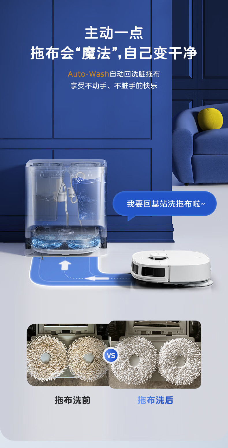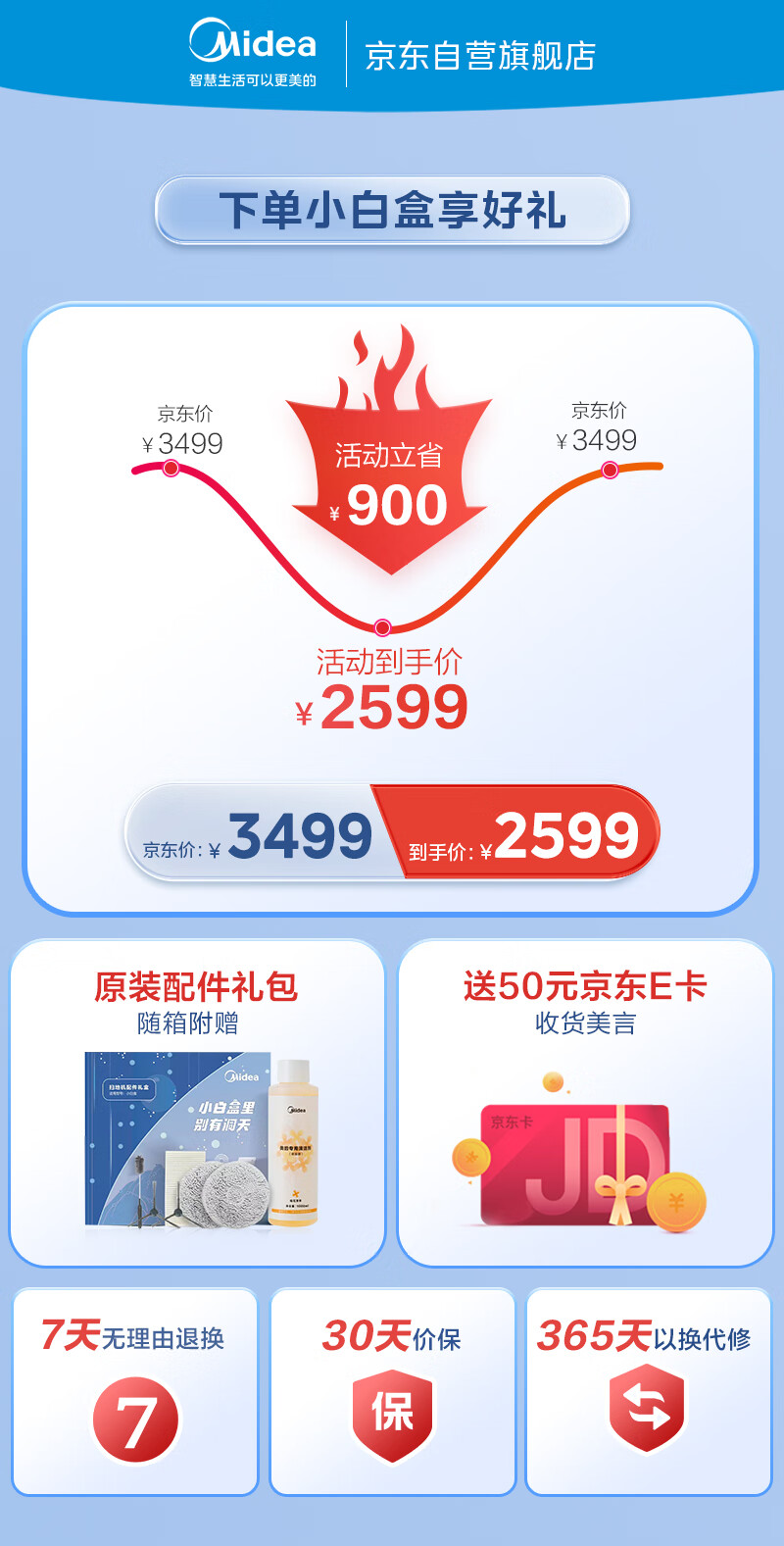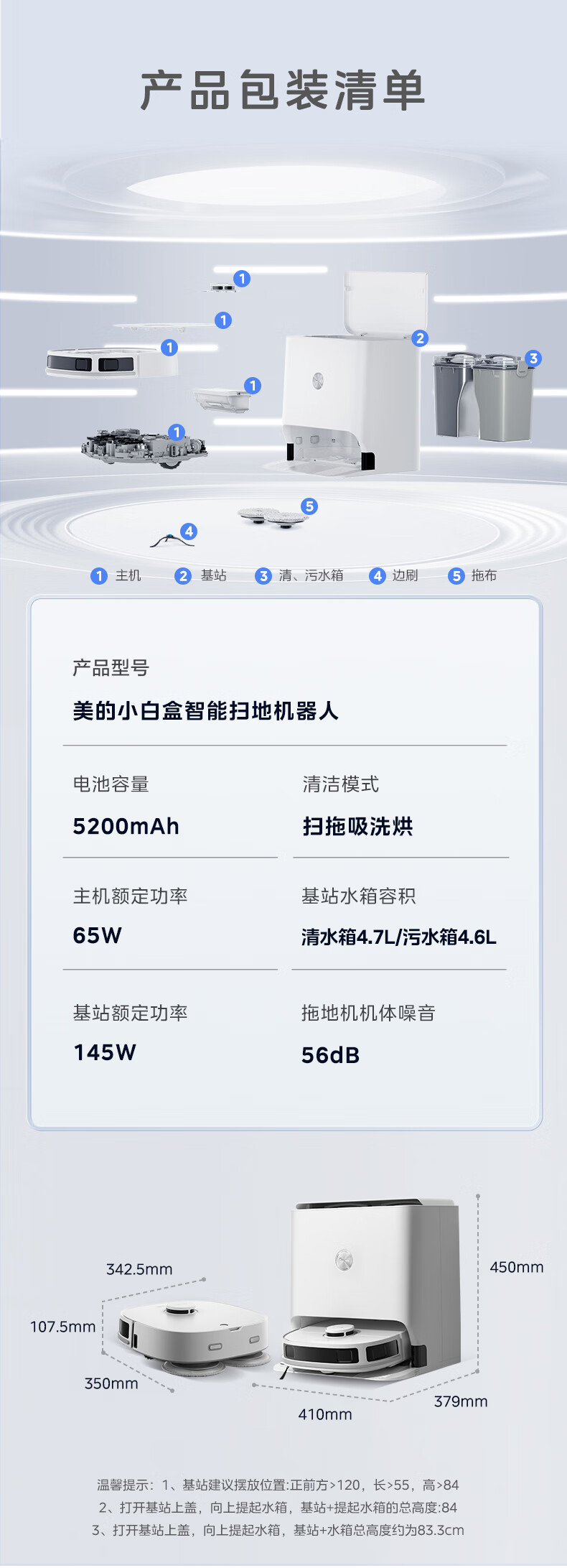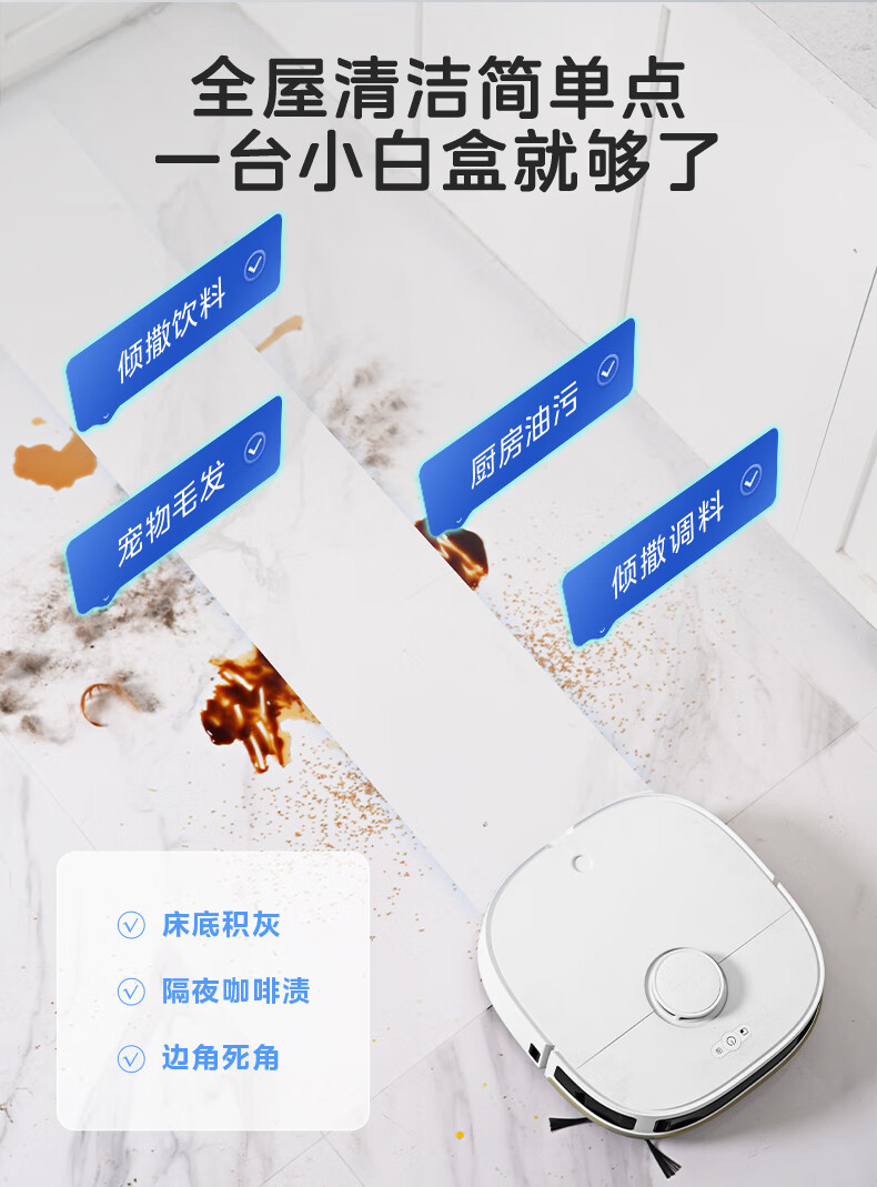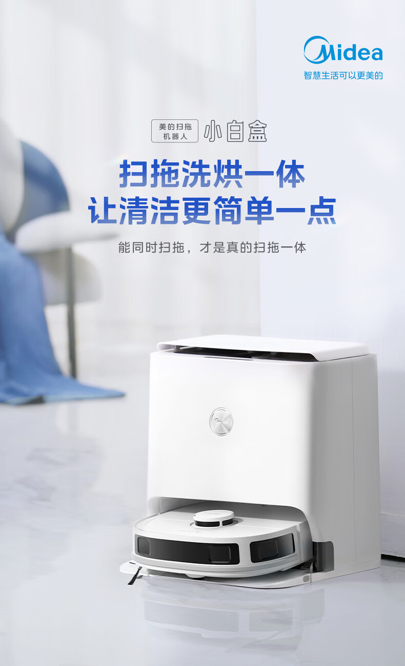 美的(Midea)扫地机器人扫拖一体小白盒 自动清洗抹布全自动吸尘扫地洗地机擦地机拖地机器人