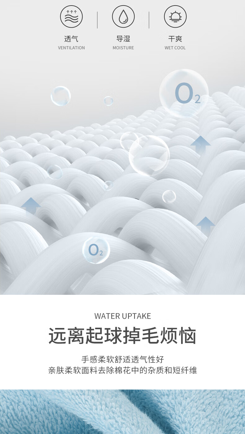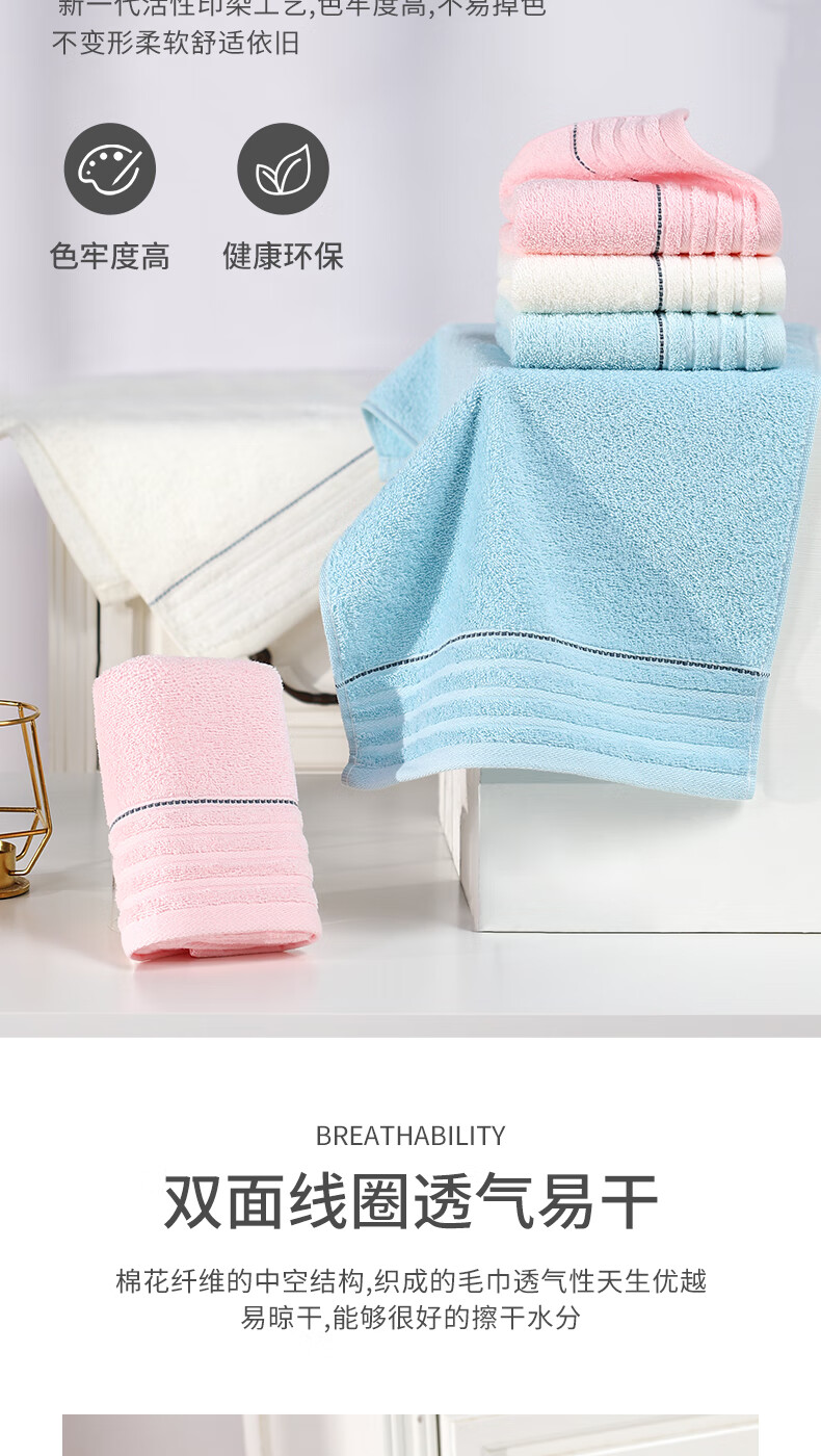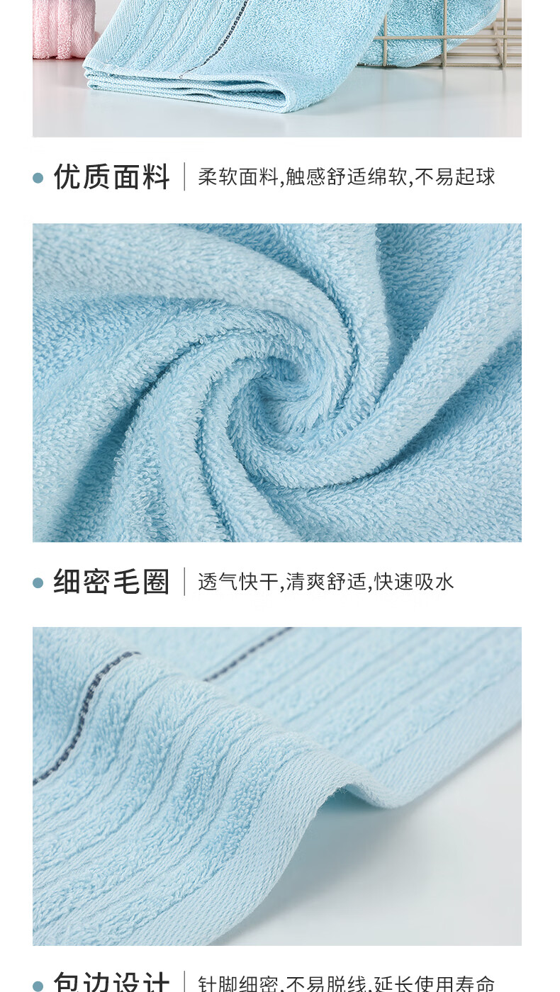 洁丽雅(Grace)A类纯棉毛巾 吸水洗脸洗澡素色柔软洁面巾擦脸巾 单条装 薄荷蓝
