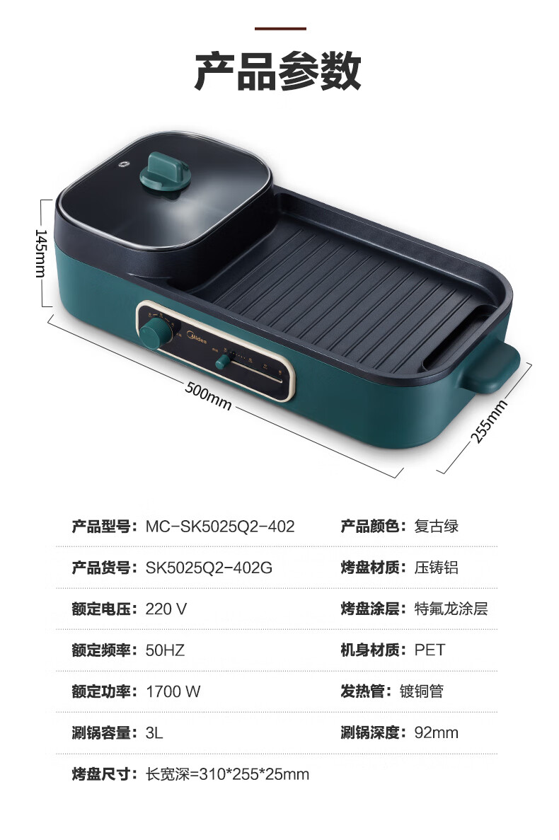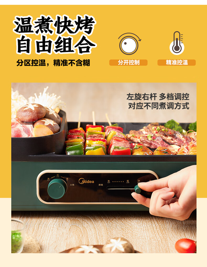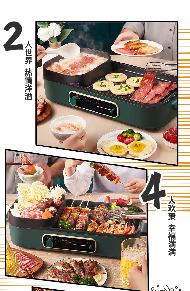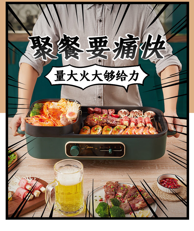 美的(Midea)电烤炉 烧烤机 多功能电火锅 家用无烟烤肉机烤涮一体锅SK5025Q2-402G