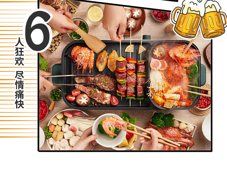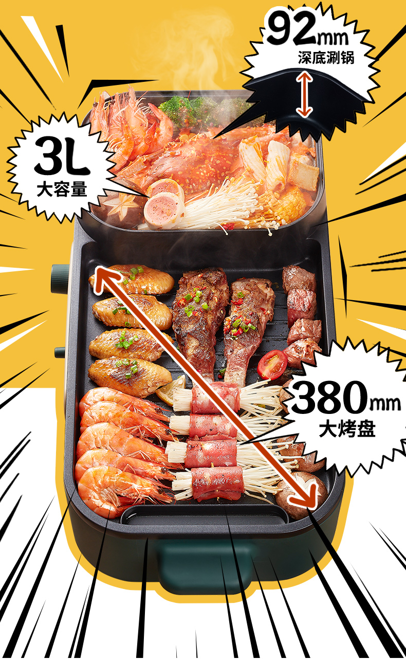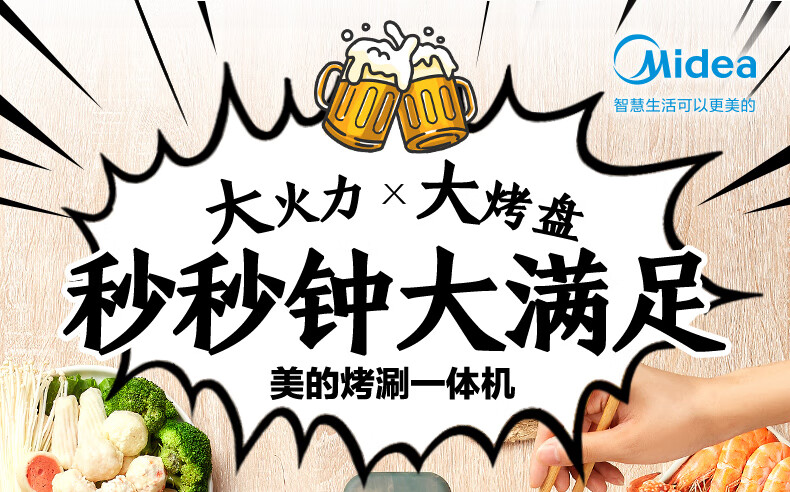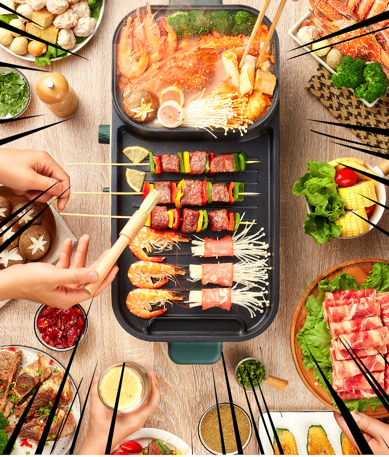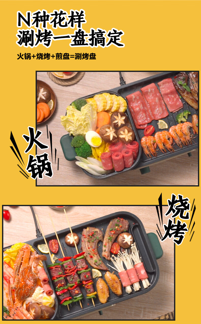 美的(Midea)电烤炉 烧烤机 多功能电火锅 家用无烟烤肉机烤涮一体锅SK5025Q2-402G