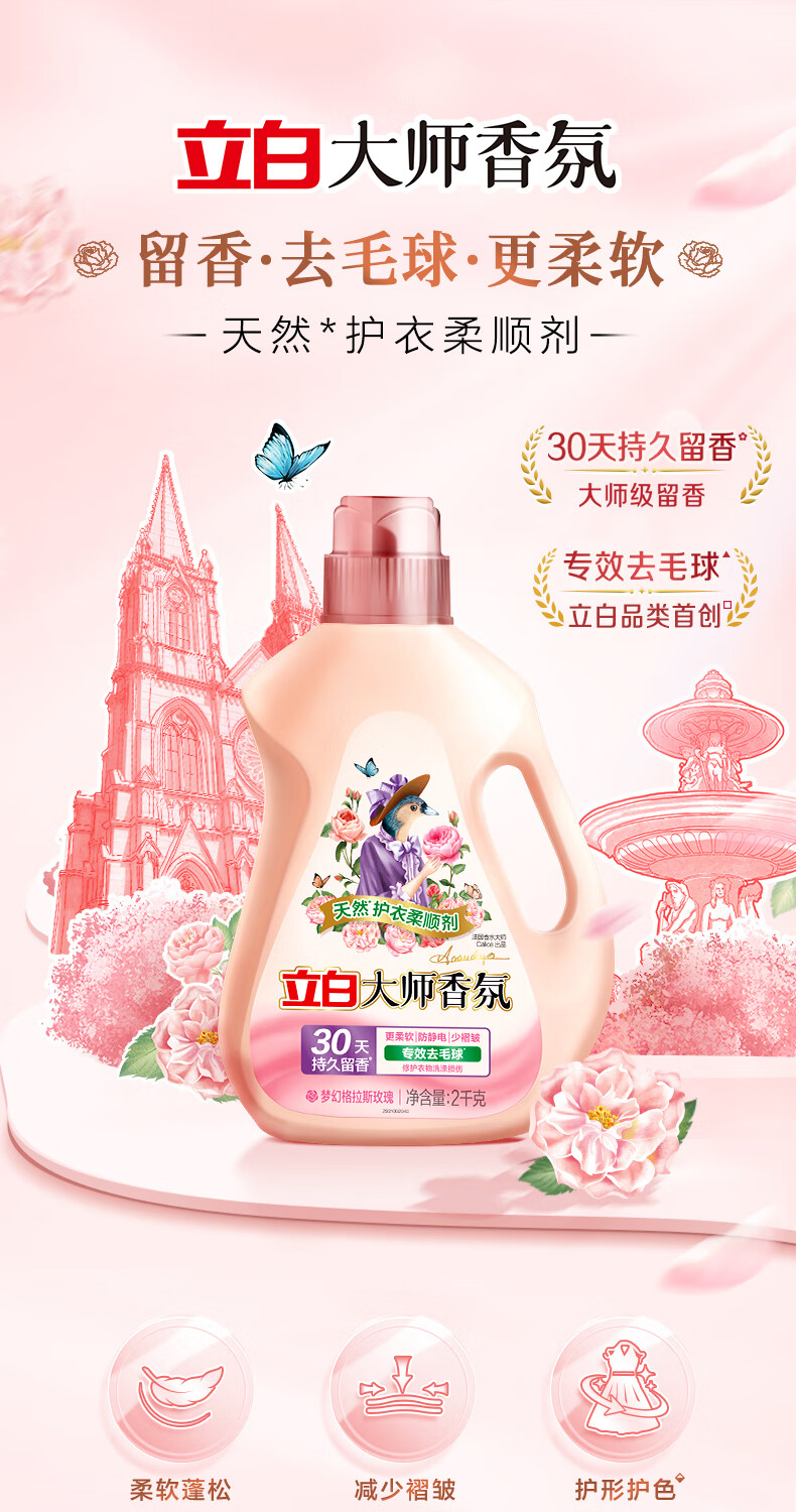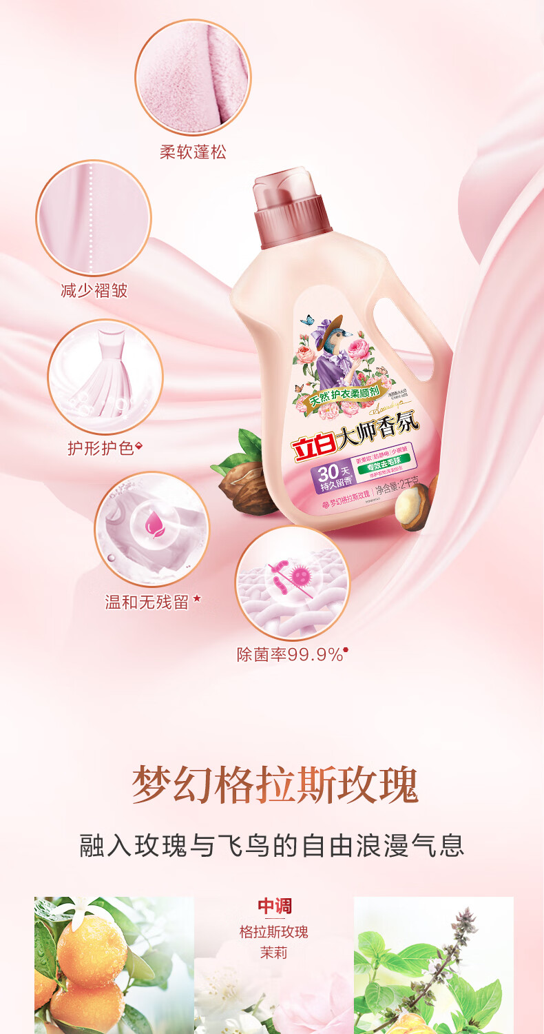 立白大师香氛柔顺剂 除菌护衣 持久留香 蓬松柔软 护色防静电 2kg