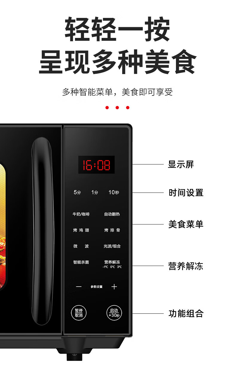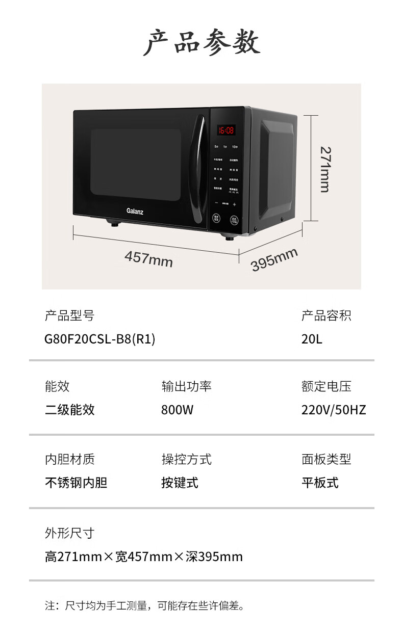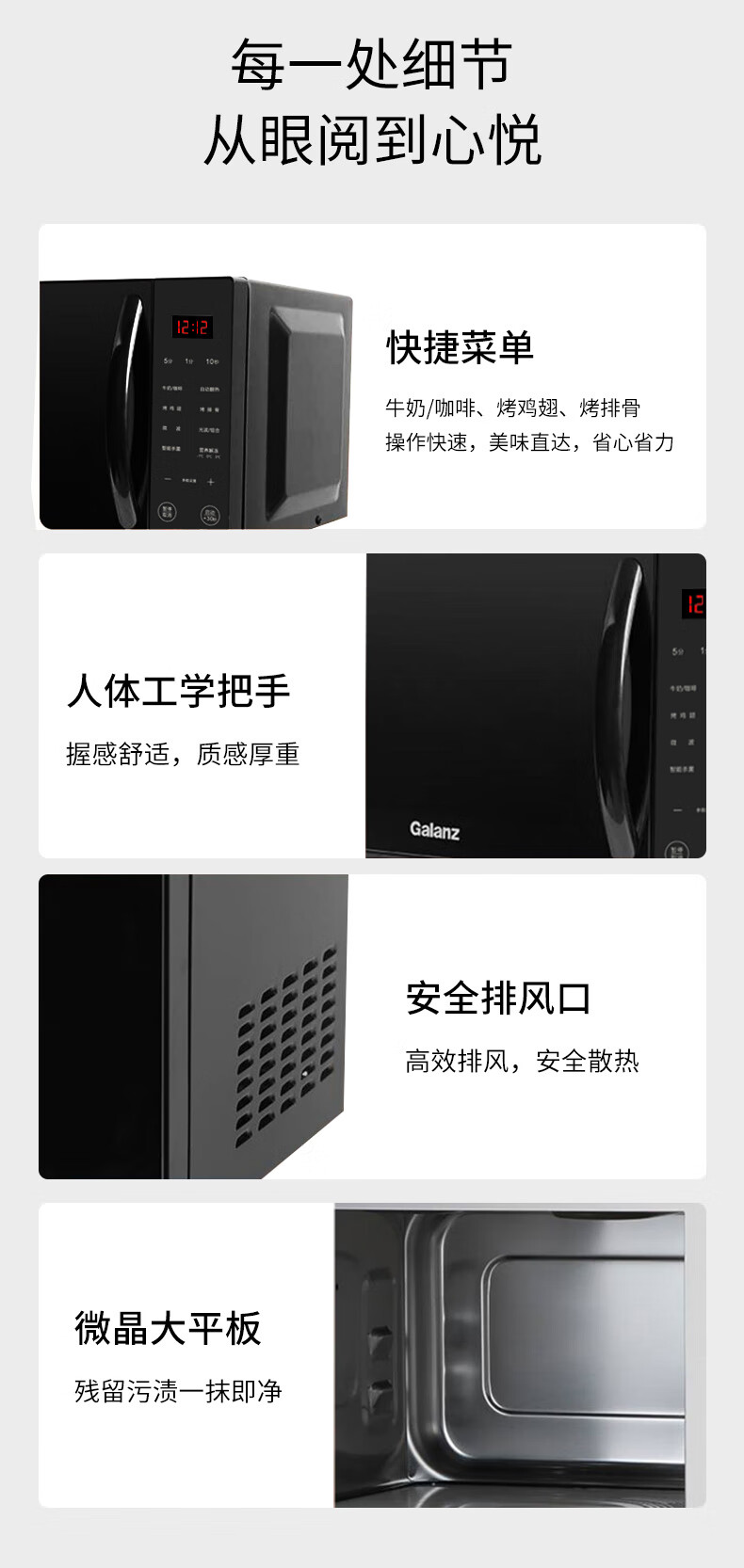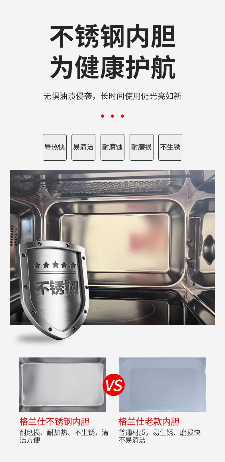 格兰仕微波炉家用不锈钢内胆 光波炉营养解冻 多功能菜单 G80F20CSL-B8R1 (线下同款)