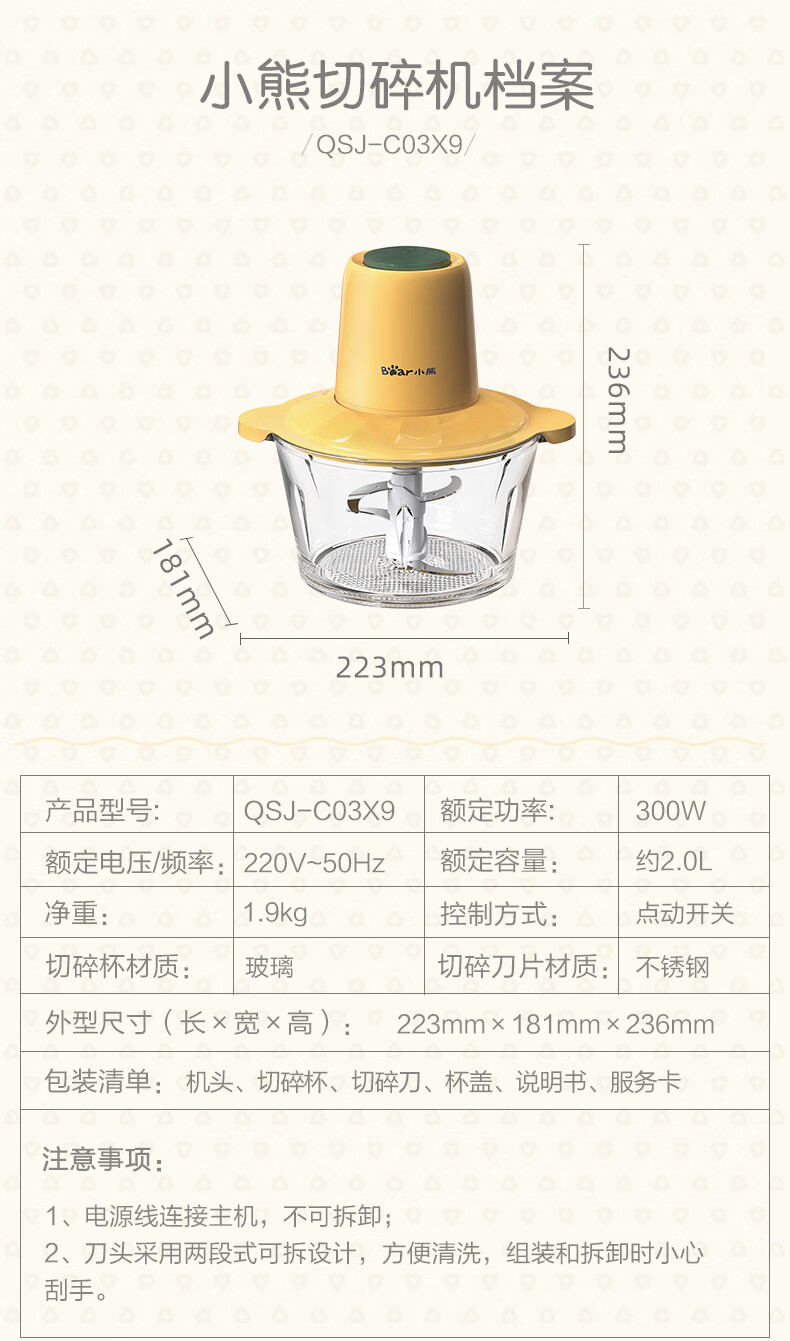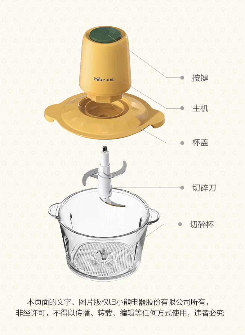 小熊 QSJ-C03X9 切碎绞肉机 黄色/台