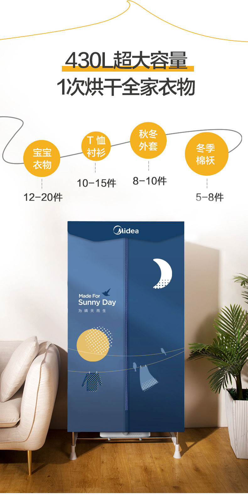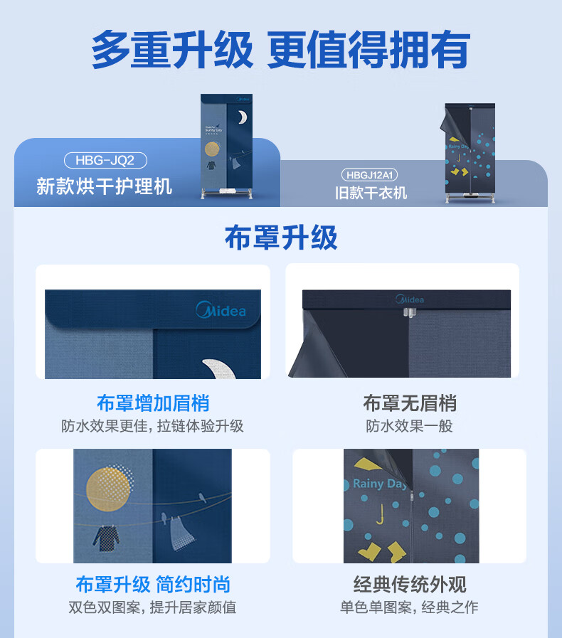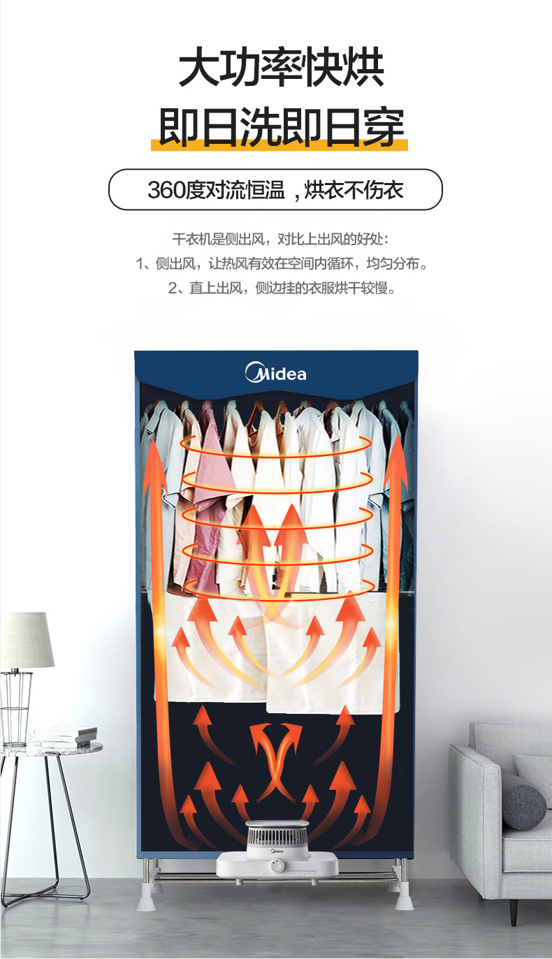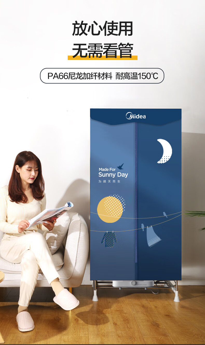 美的(Midea)干衣机烘干机家用布罩类 婴儿衣物内衣内裤定时恒温暖风机 32斤大称重大功率速烘烘衣机 HBG-JQ2-1