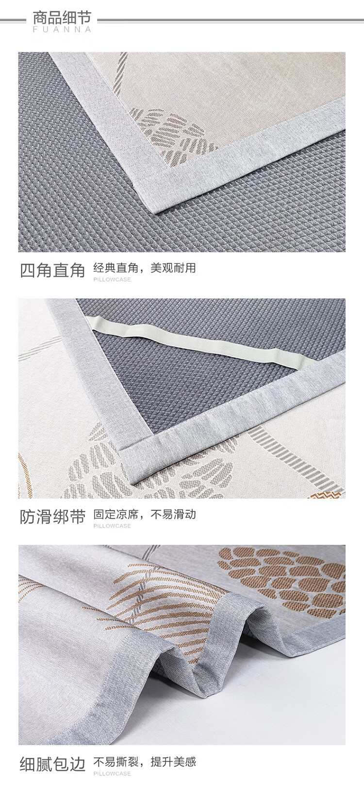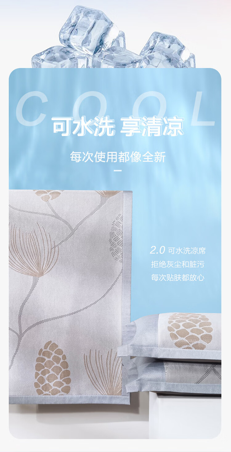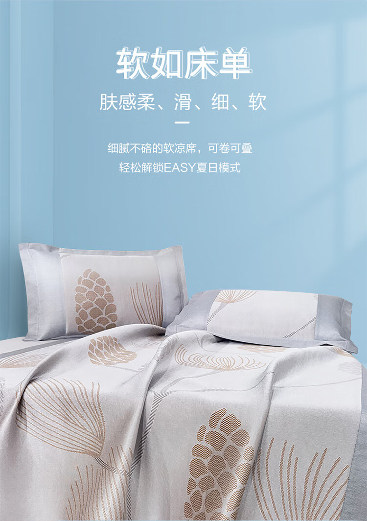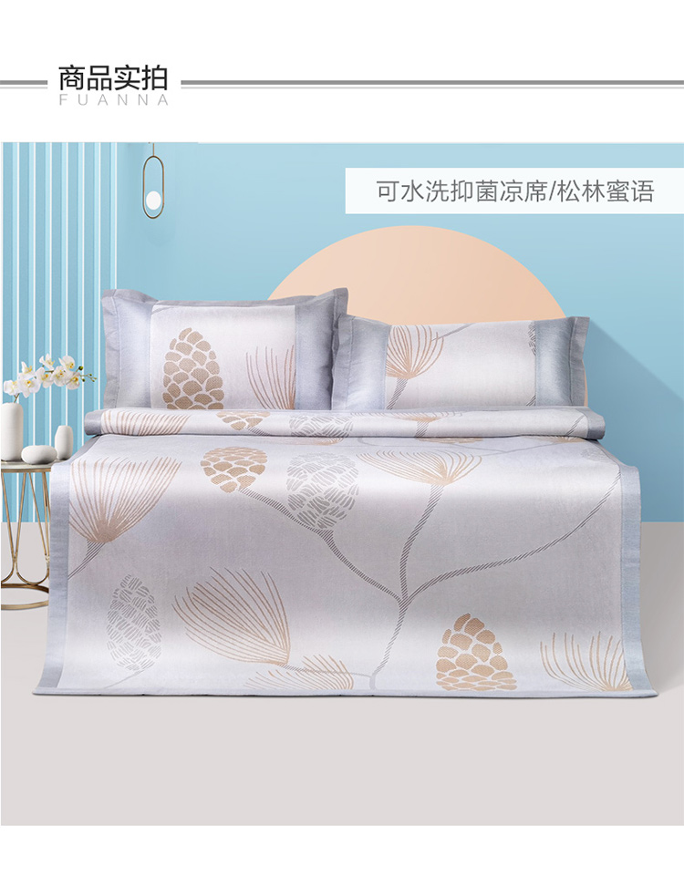 富安娜家纺 凉席可水洗抑菌空调席夏季凉感席子两件套 单人学生宿舍 松林蜜语 1.2米床